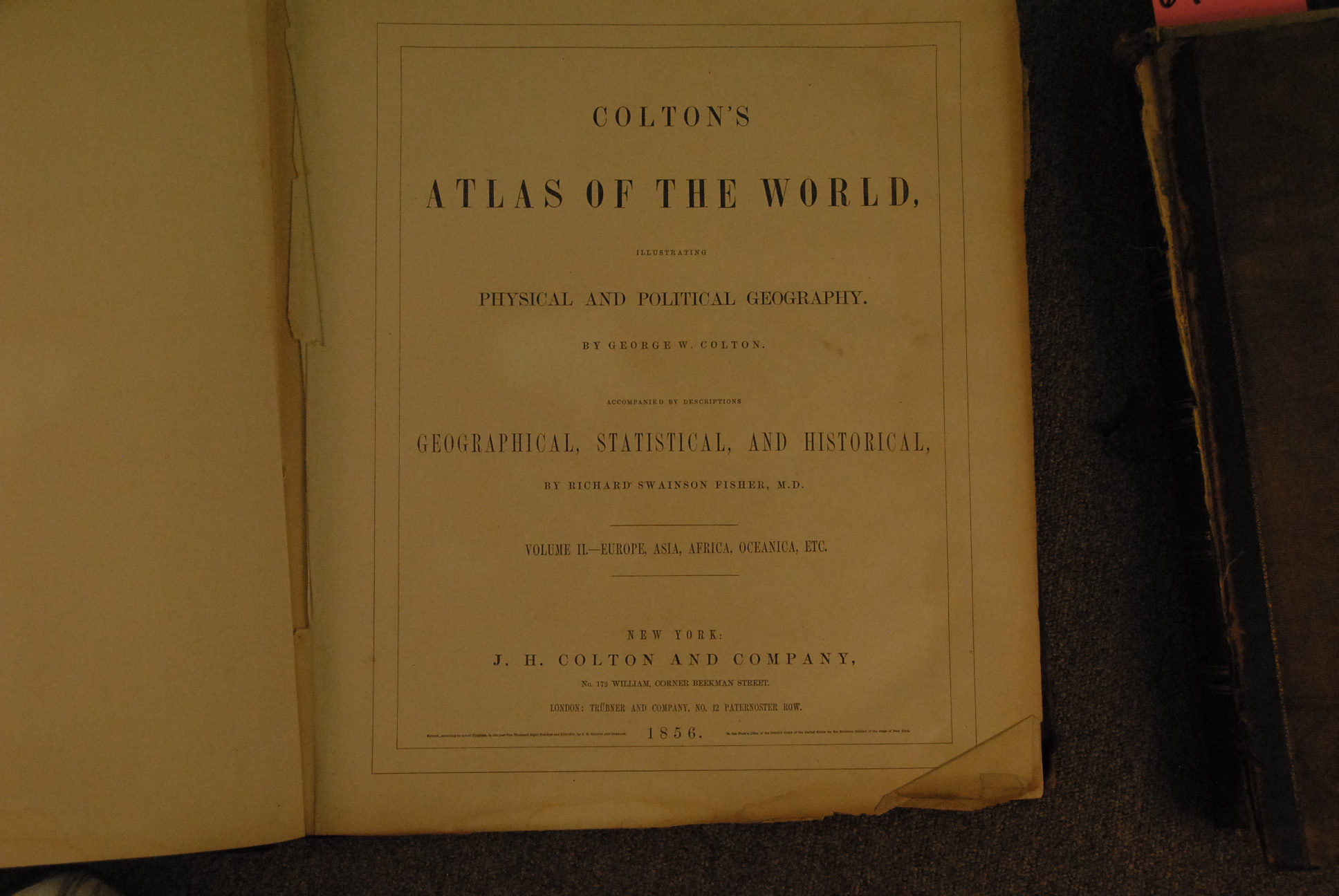 Two Colton’s Atlases General Atlas with description and Atlas of the World Volume two.