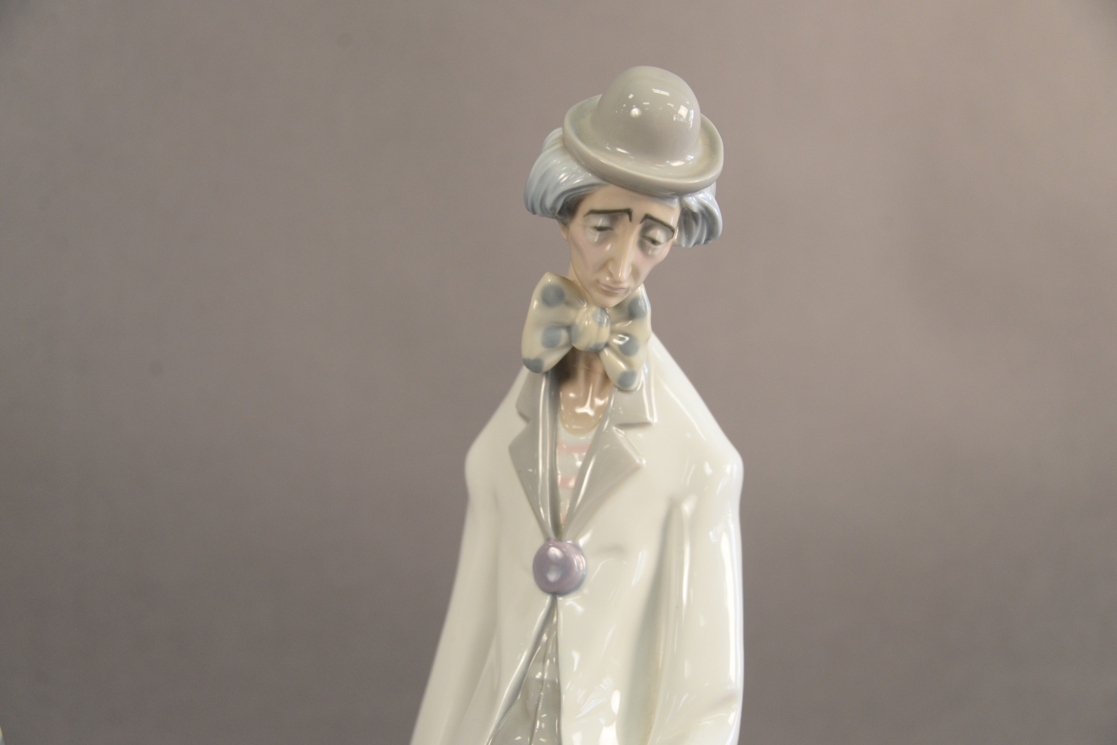 Lot 64: Two Large Lladro Figures, to include a clown with an accordion sitting with a ballerina, along with a clown having an accordian, number 1057, retired in 1989, tallest height 18 inches. Provenance: Estate of James Wadhams.