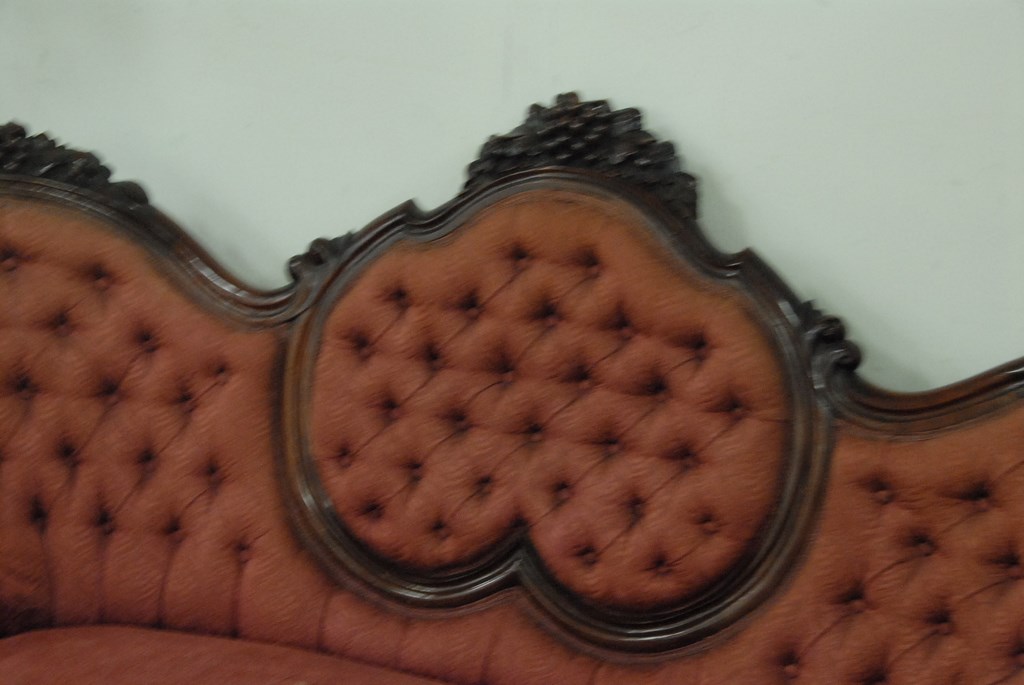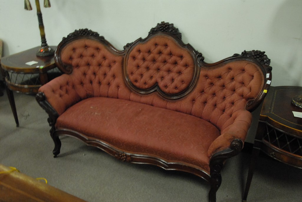 Lot 64: Victorian walnut loveseat with grape carved cameo back, lg. 65 in.