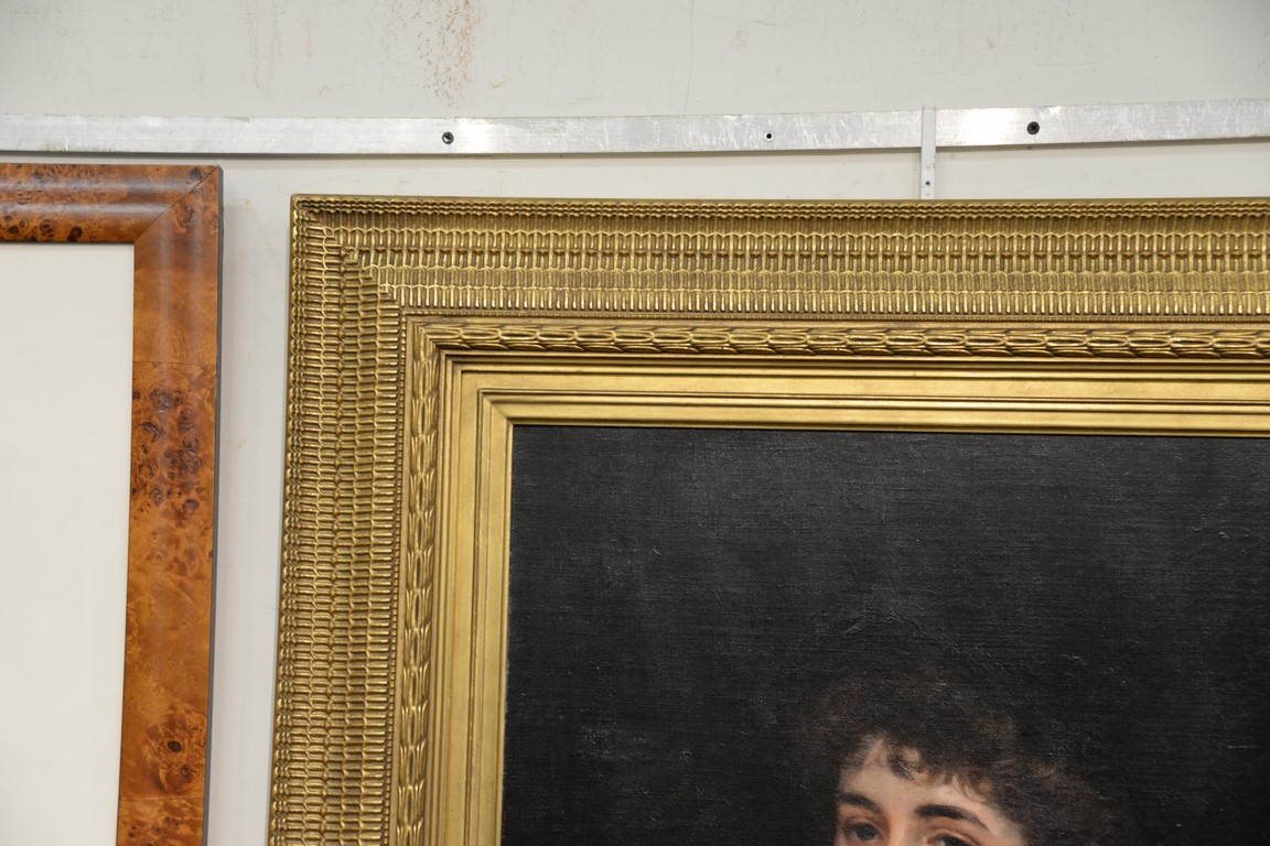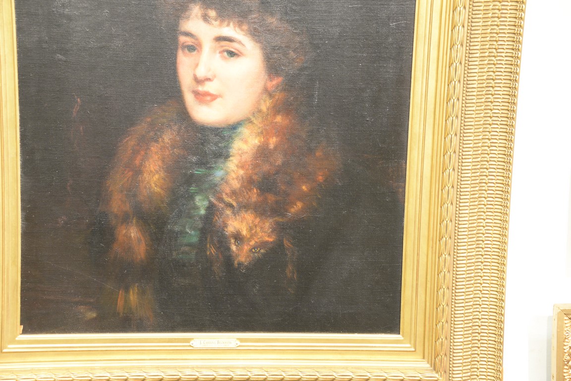 Lot 640: James Carroll Beckwith 1852-1917 oil on canvas Portrait of a Woman in a Fur Stole signed on reverse: Carroll Beckwith 28 x 23