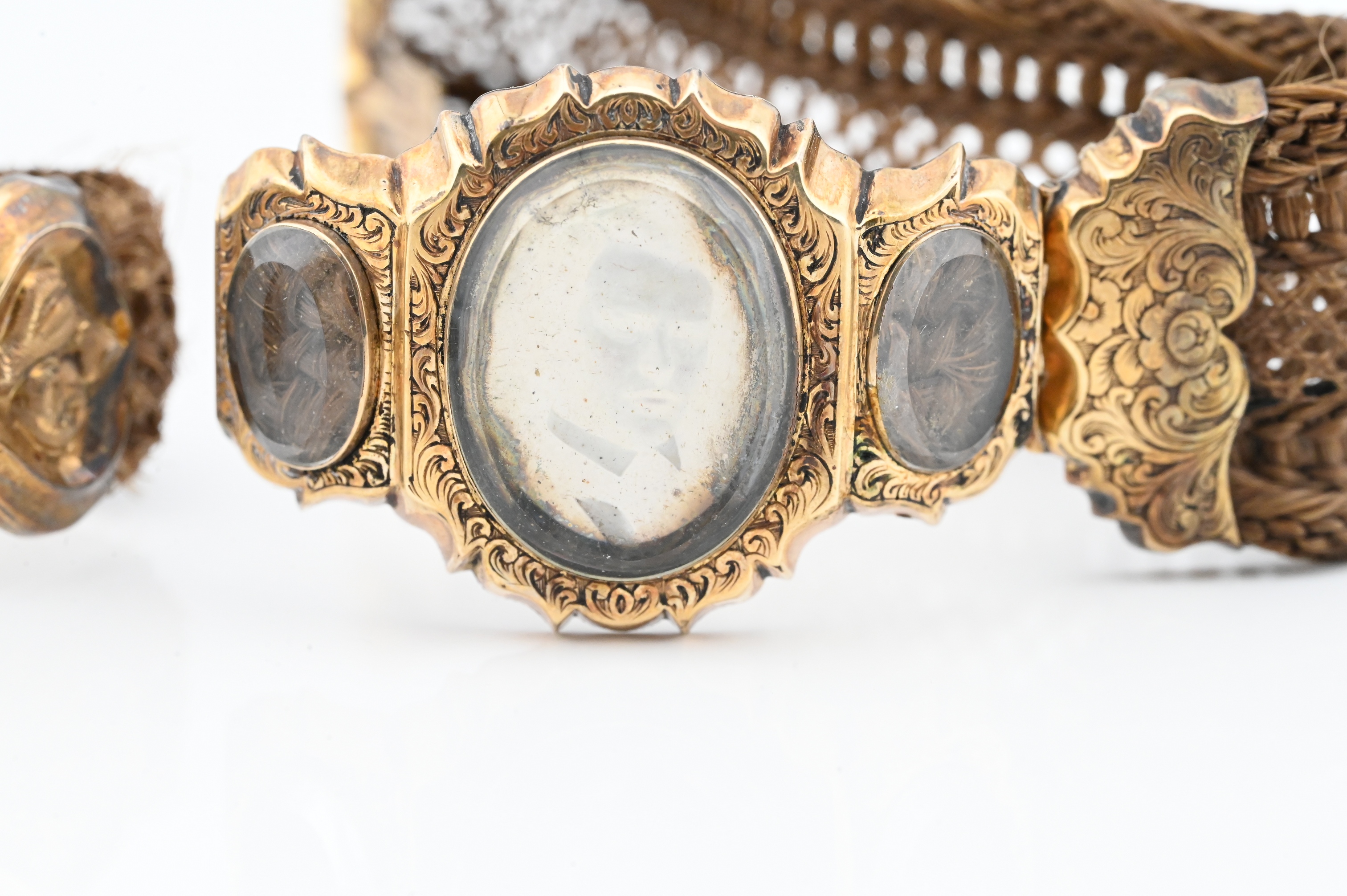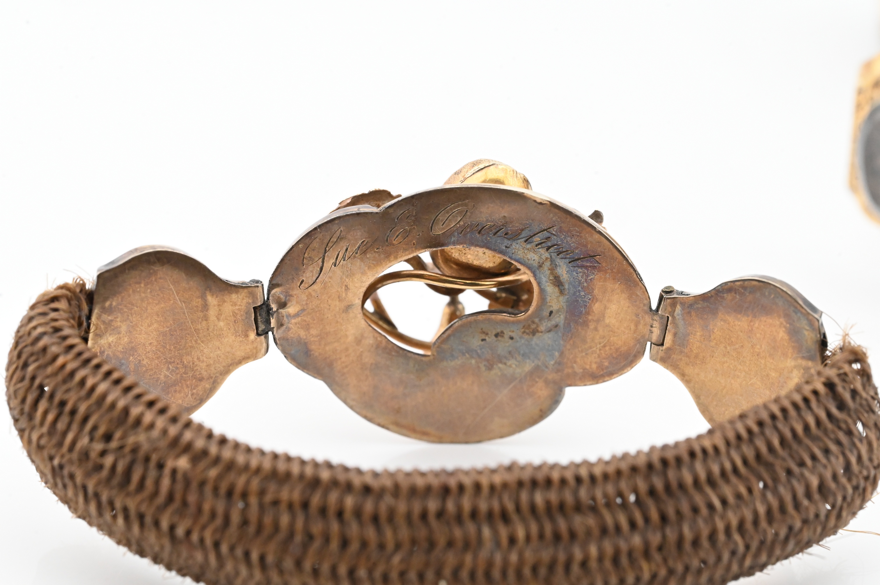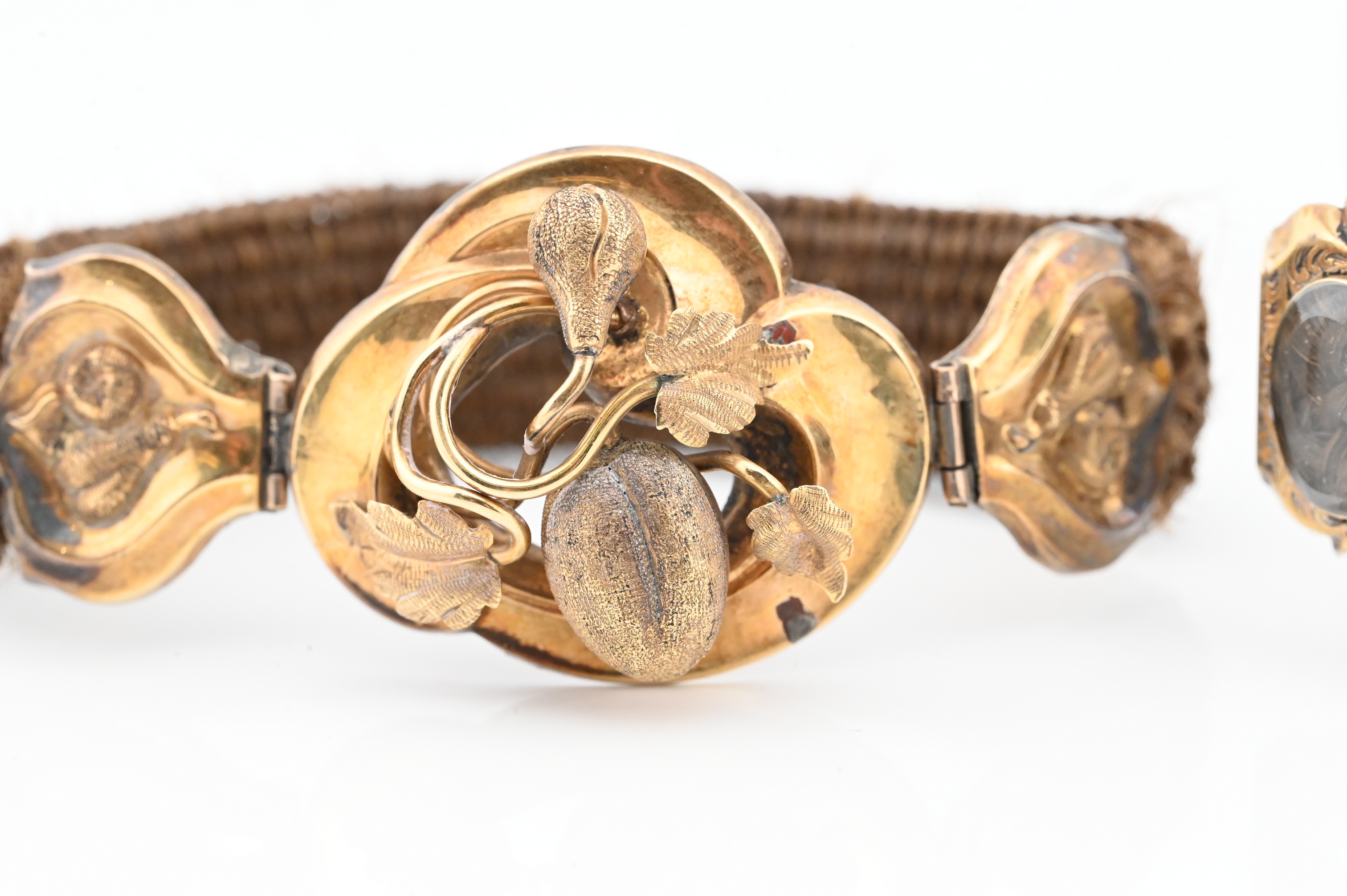 Lot 640: Two Piece 14K Gold Victorian Mourning Hair Bracelets