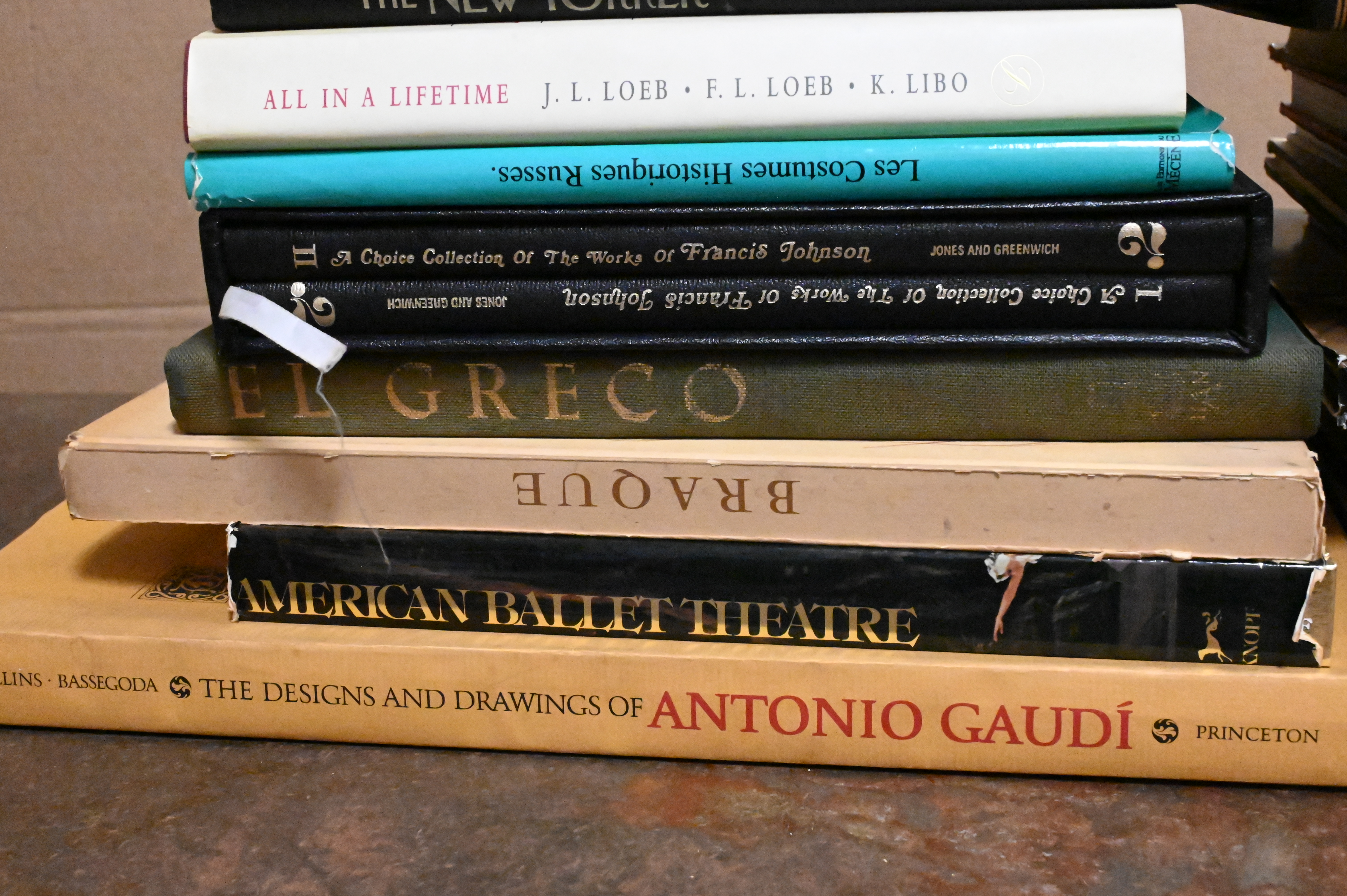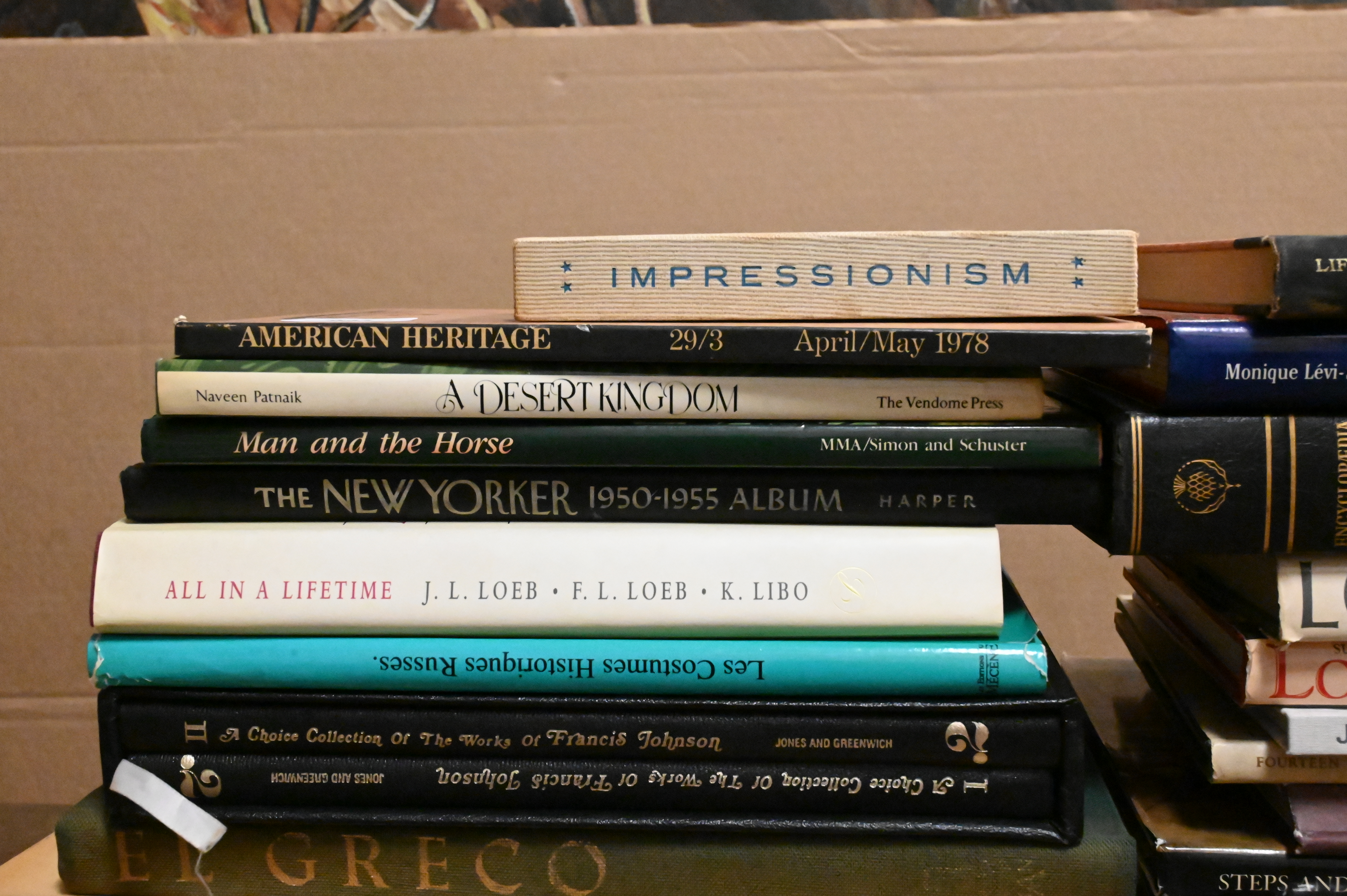 Including Impressionism; American Heritage (April/May 1978); Naveen Patnaik, A Desert Kingdom; Man and the Horse; The New Yorker Album 1950–1955; J. L. Loeb et al., All in a Lifetime; Les Costumes Historiques Russes; A Choice Collection of the Works of Francis Johnson; El Greco; Braque; American Ballet Theatre; Bassegoda, The Designs and Drawings of Antonio Gaudí; Helen Reeder Cross, Life in Lincoln’s America; Monique Lévi-Strauss, The Cashmere Shawl; Encyclopaedia Britannica; Mary Lawrence, Lovers; Susanne Everett, London: The Glamour Years 1919–1939; Jacob El Hanani, Drawing on Canvas; Ariane Dandois; Jonathan Miller, Steps and Stairs; The Best of Beaton; Shapiro, Mondrian: Flowers; and Exhibition of Old Master Paintings (Hazlitt & Johns, London, 1991).