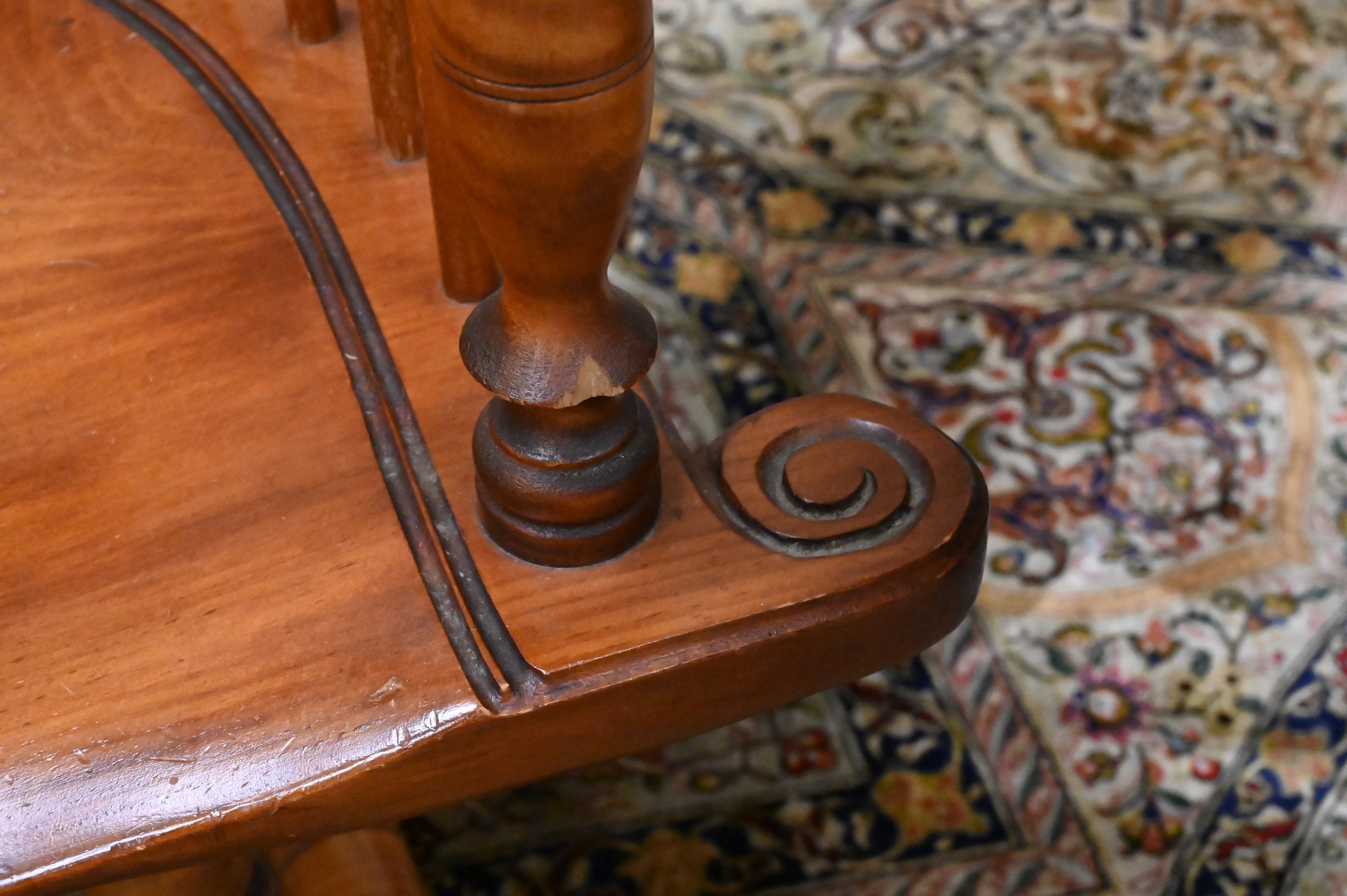 Condition: Presents well, wear to seat and legs, one chair with chipped return under arm