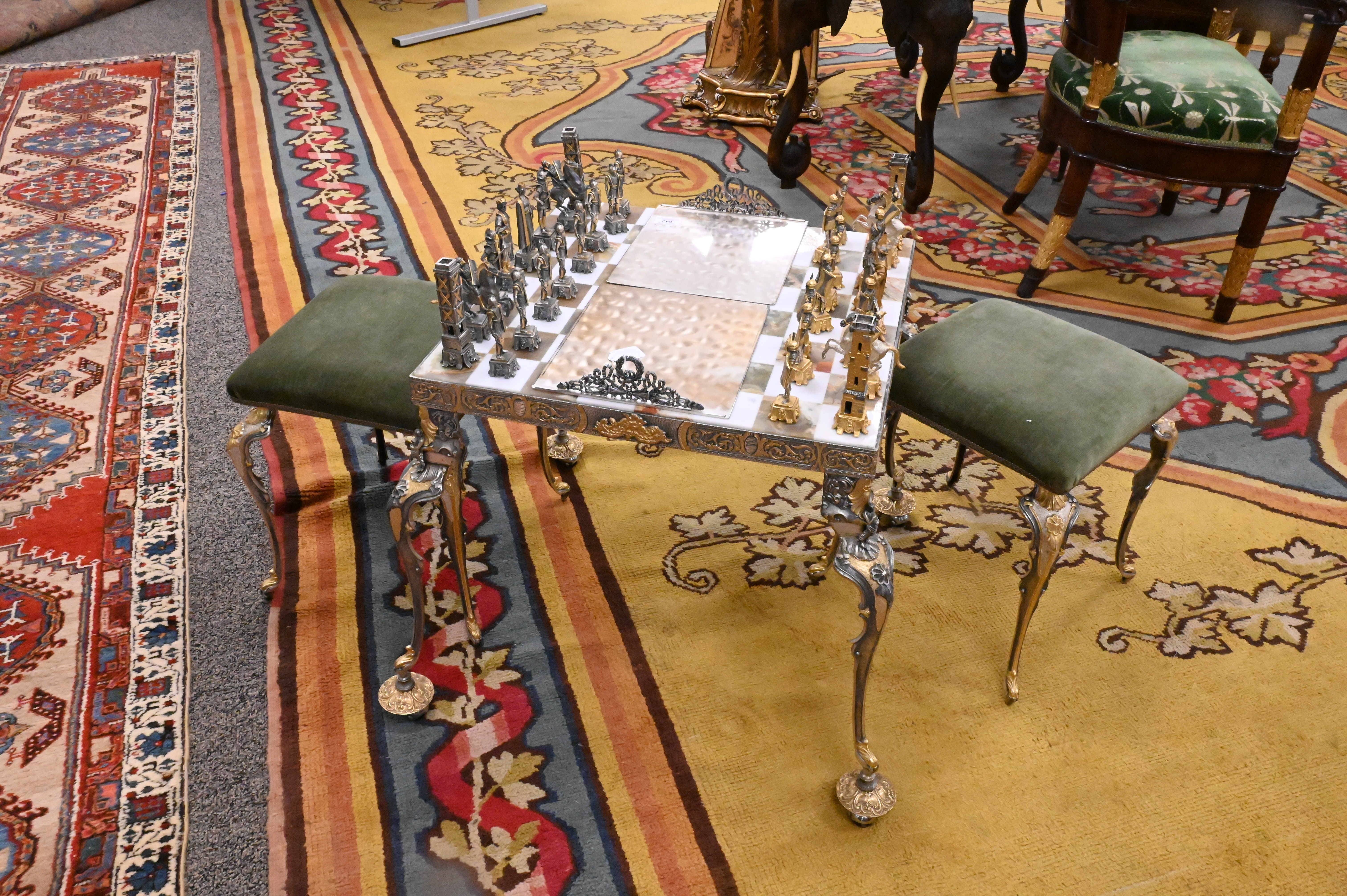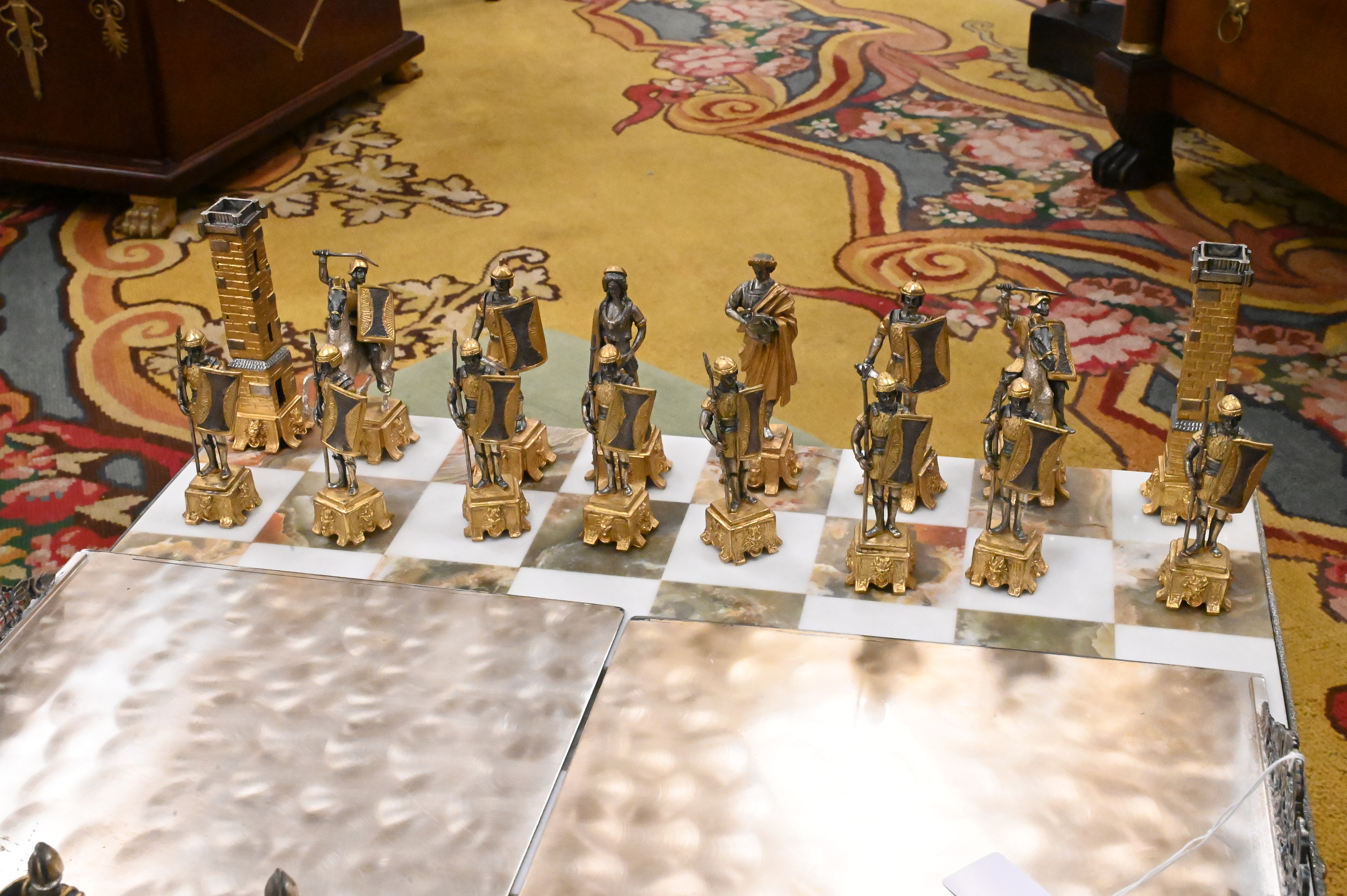 Lot 642: Giuseppe Vasari Gilt and Silvered Metal Chess Set