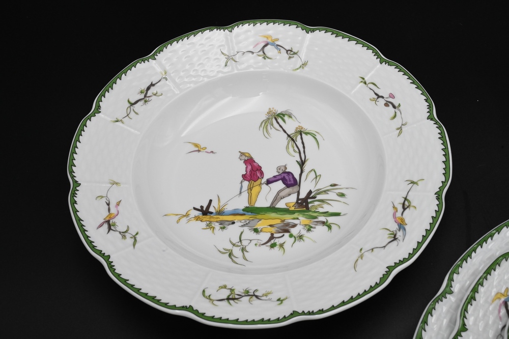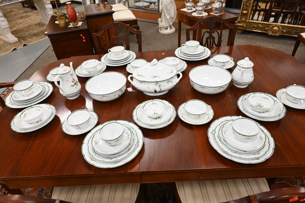 Lot 643: 211 Piece A. Raynaud Limoges Porcelain Dinnerware Set, Si Kiang pattern, to include 14 dinner plates, 28 luncheon plates, 24 dessert…