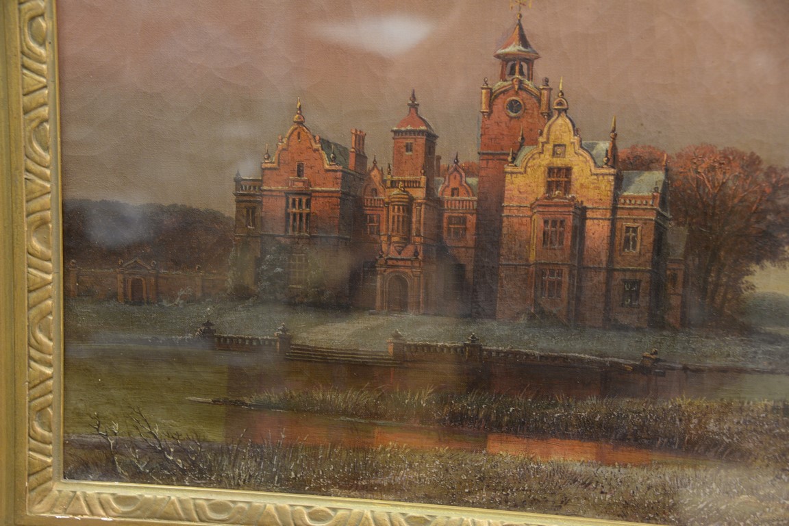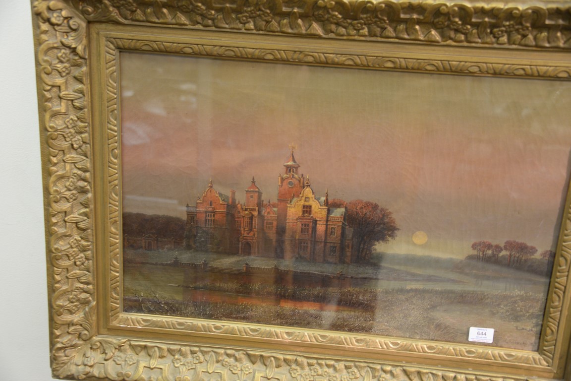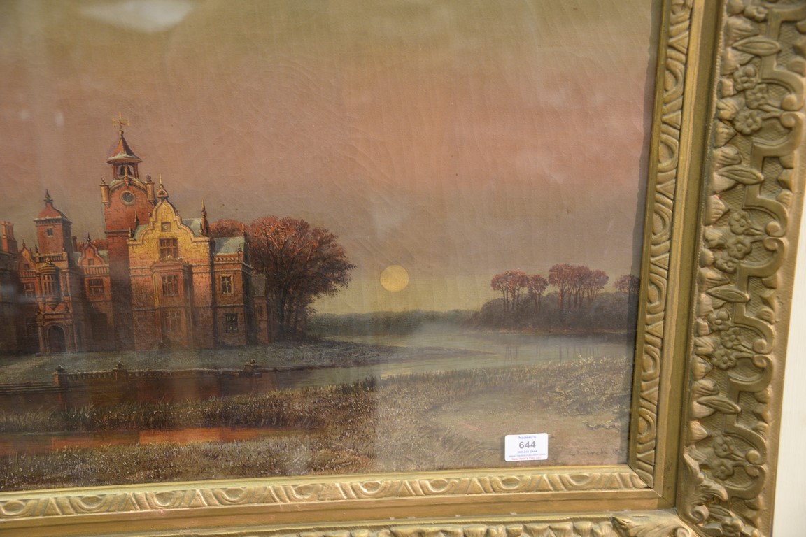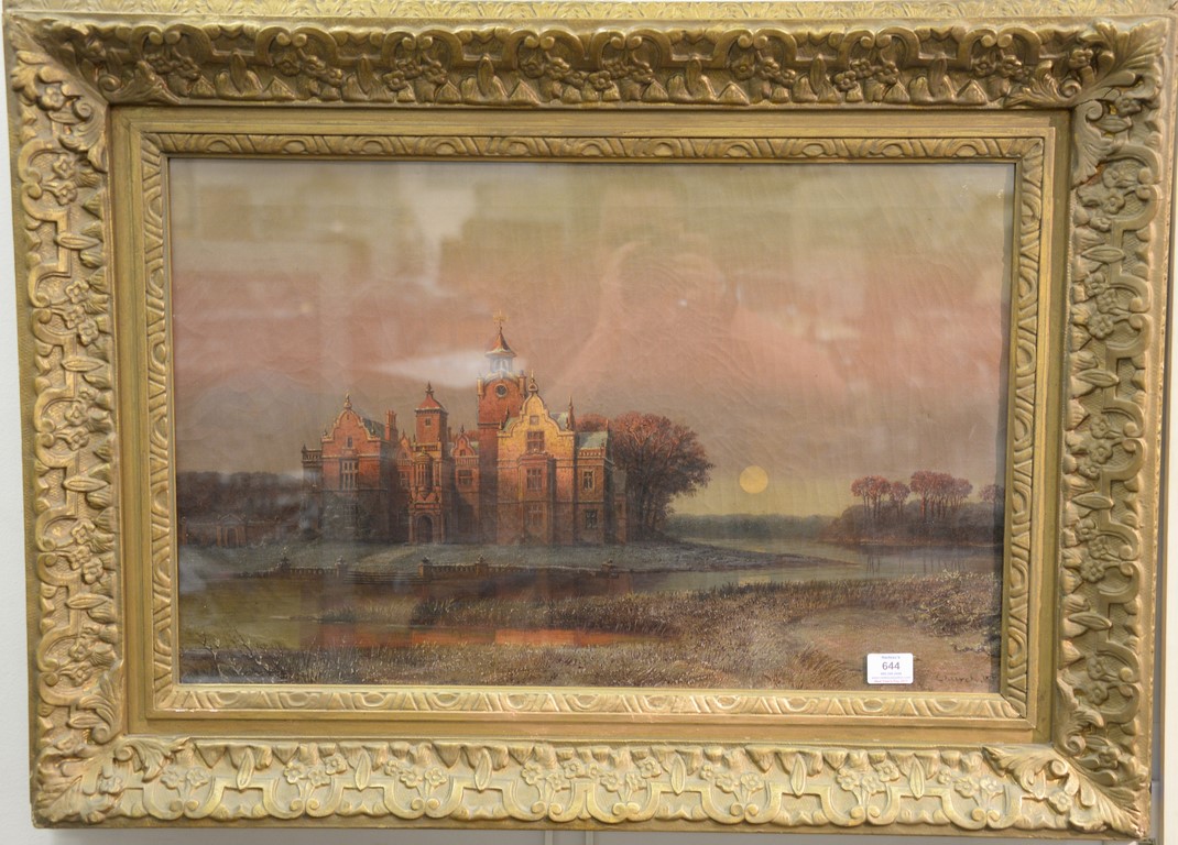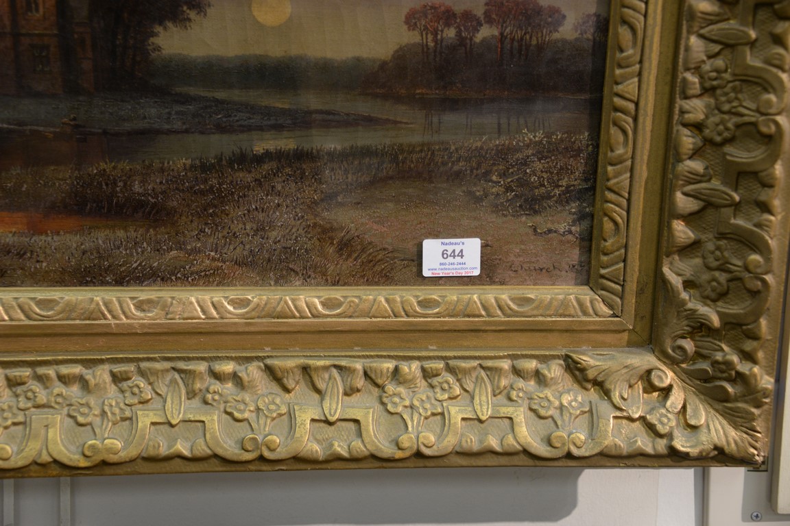 Lot 644: Church oil on canvas Moon Setting Castle Landscape signed lower right: Church 87 18 x 28 1/2
