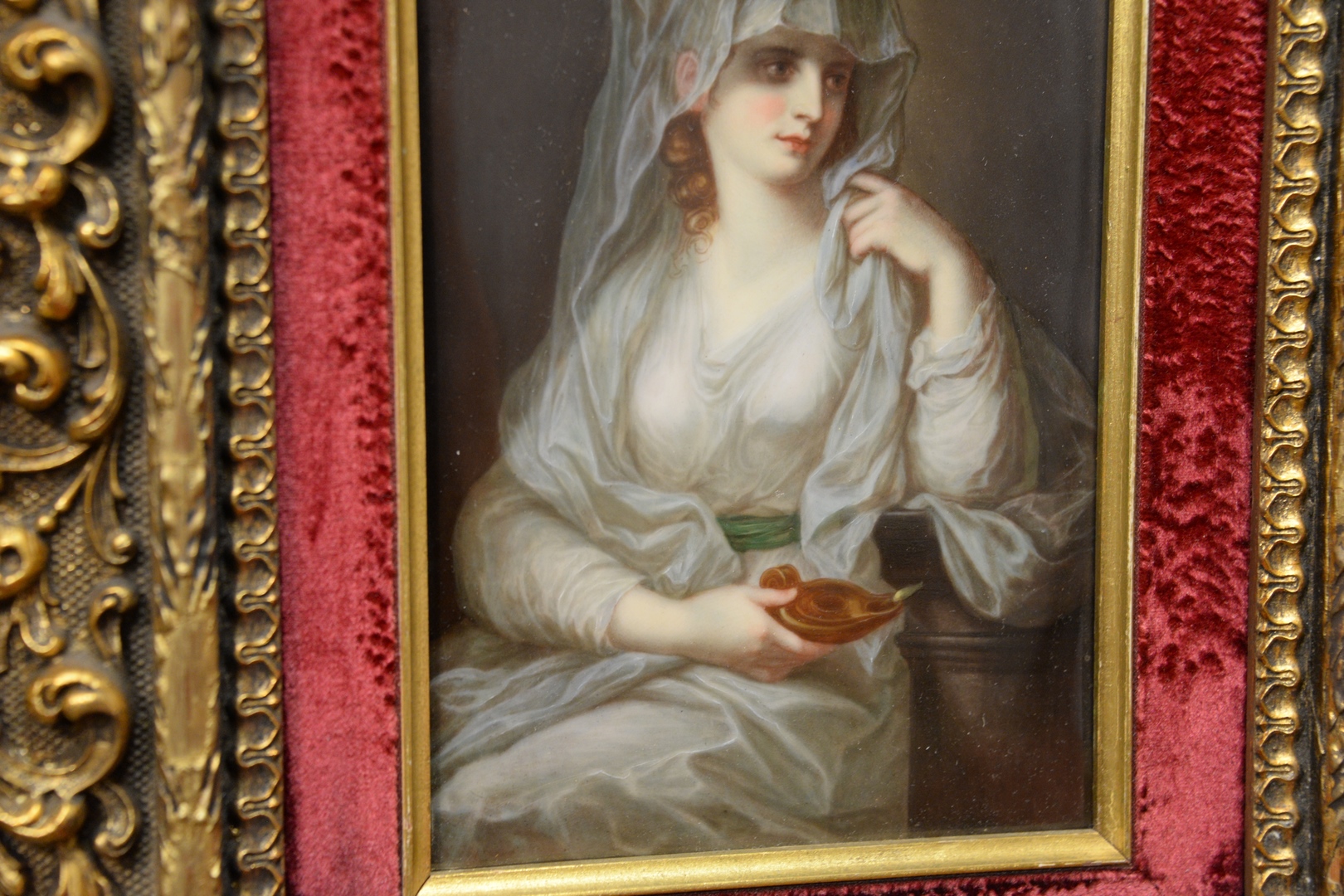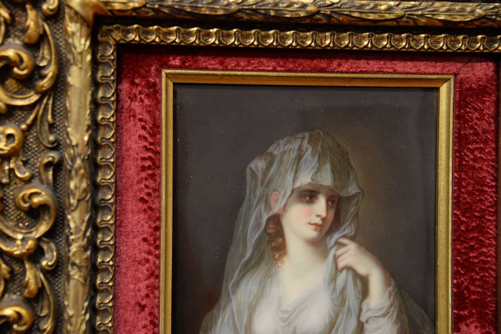 KPM Painted Porcelain Plaque A Veiled Maiden maked KPM F on the reverse 8 1/4 x 5 1/4