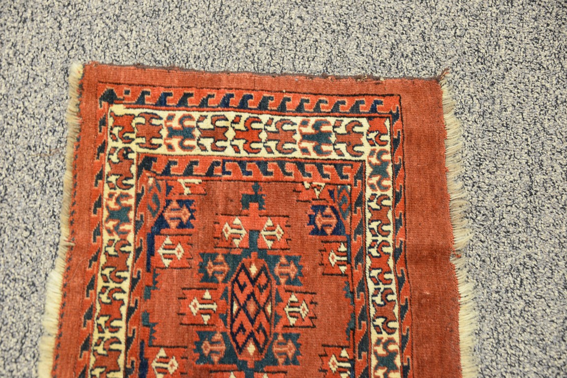 Lot 647: Bokhara Oriental bagface. 1’6 x 3′