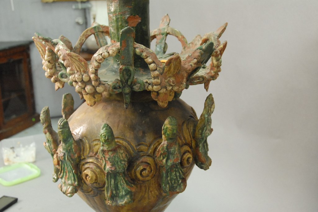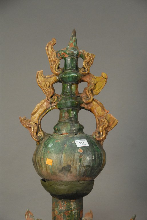 Large glazed tomb pillar, possibly Han Dynasty with Oxford Test Certificate.