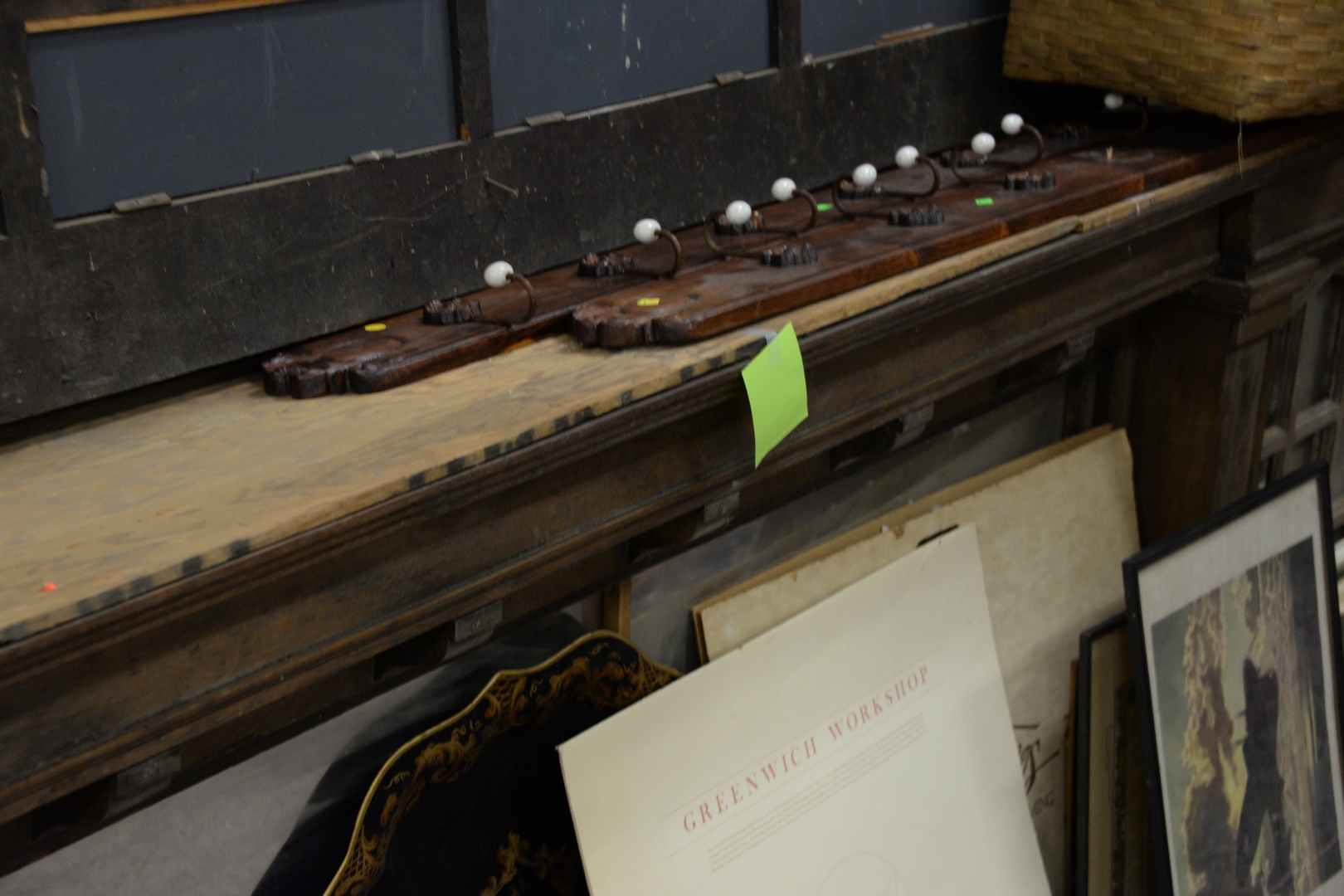 Victorian Bar Back with mirrored back along with two rosewood coat hangers Length: 147-1/2