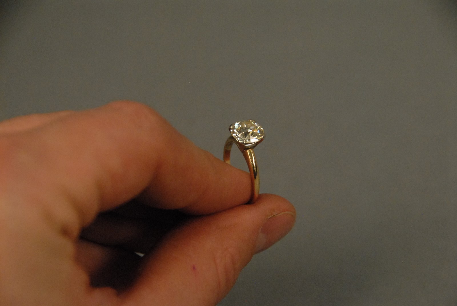 14K gold ring set with center diamond approximately 2.5cts.