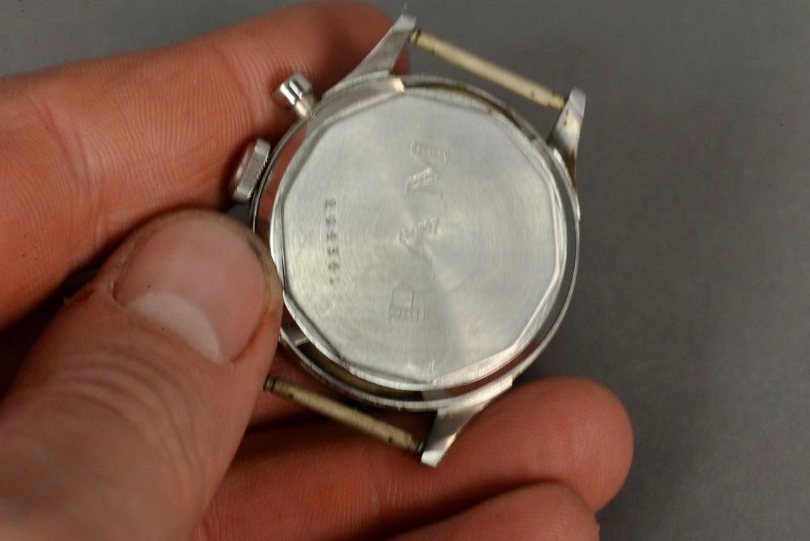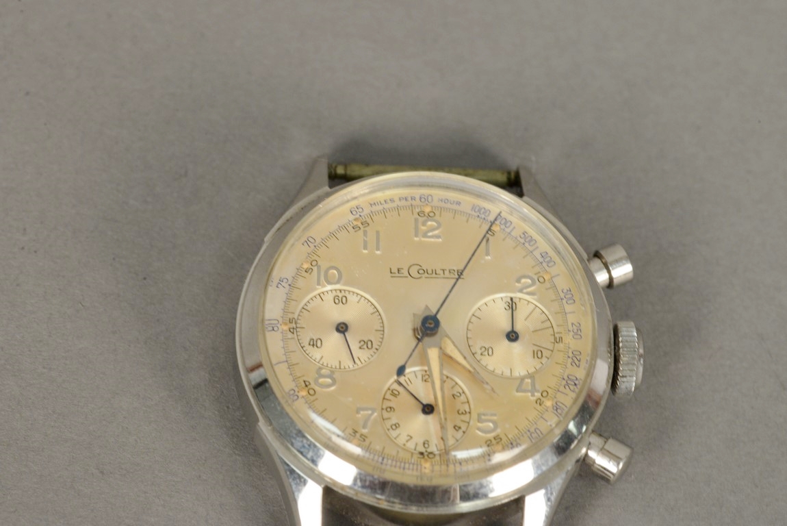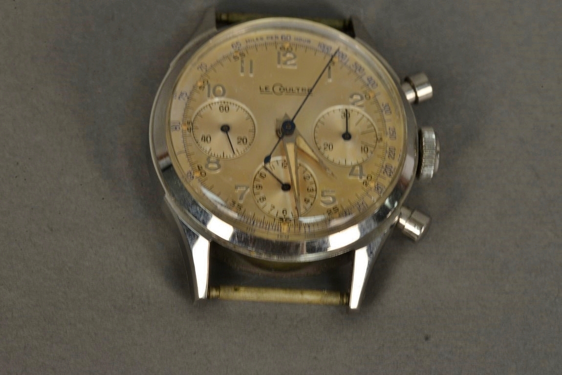 LeCoultre chronograph three register Swiss #204341, circa 1950.