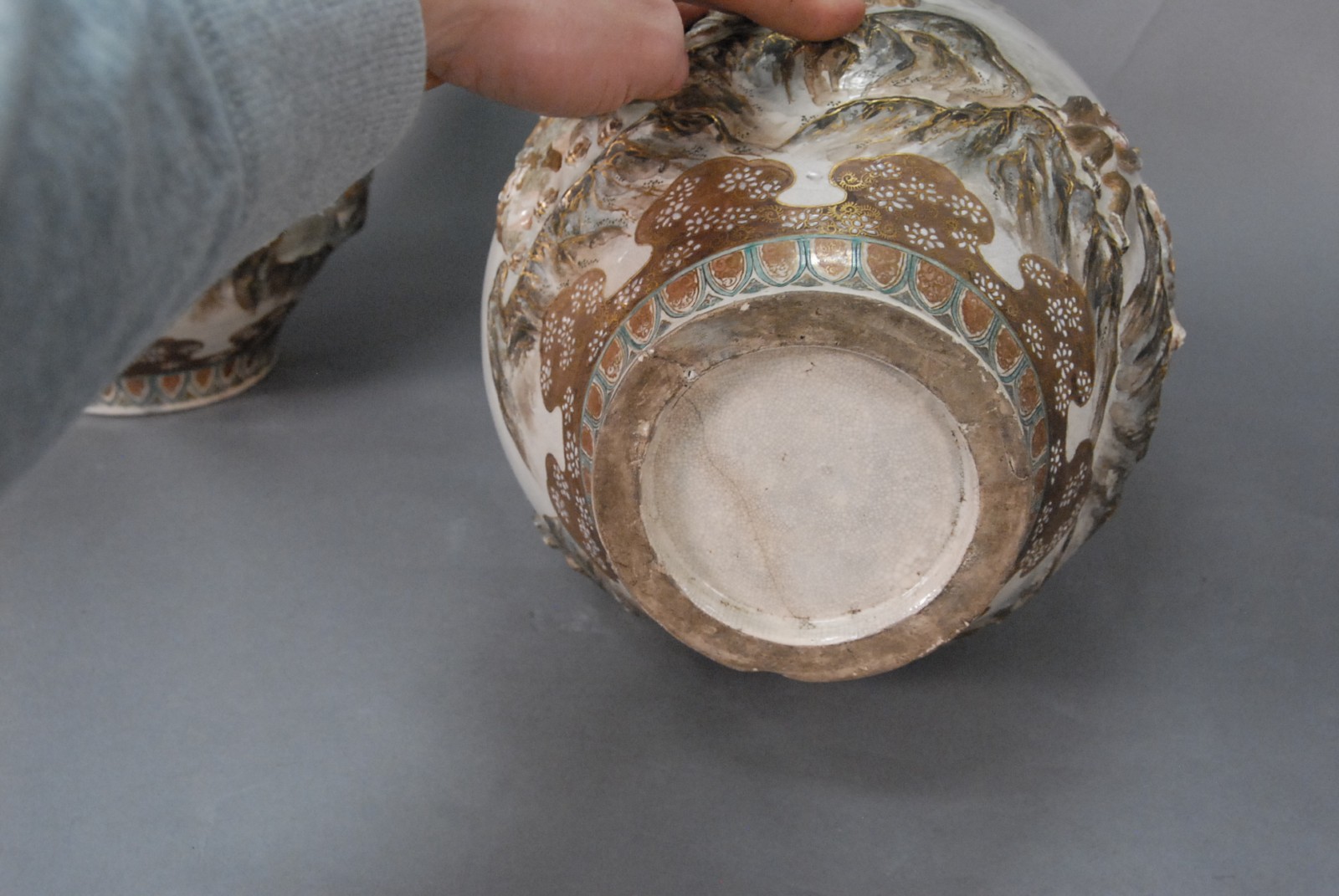 Lot 65: Pair of large Satsuma covered baluster jars in