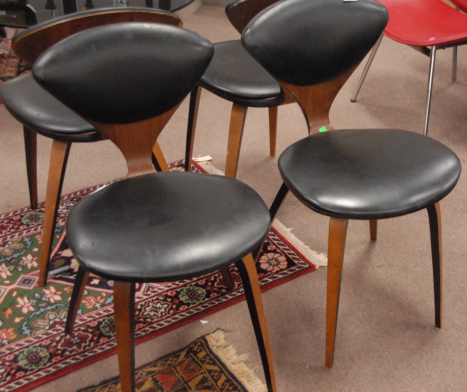 Set of four Norman Cherner side chairs by Plycraft, dated Sept. 16, 1964.