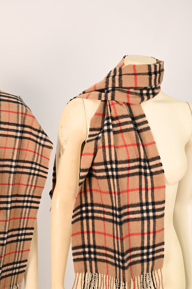 Lot 65: Three Classic Burberry Plaid Winter Scarves, to include three plaid cashmere scarves having labels, condition consistent with wear a…
