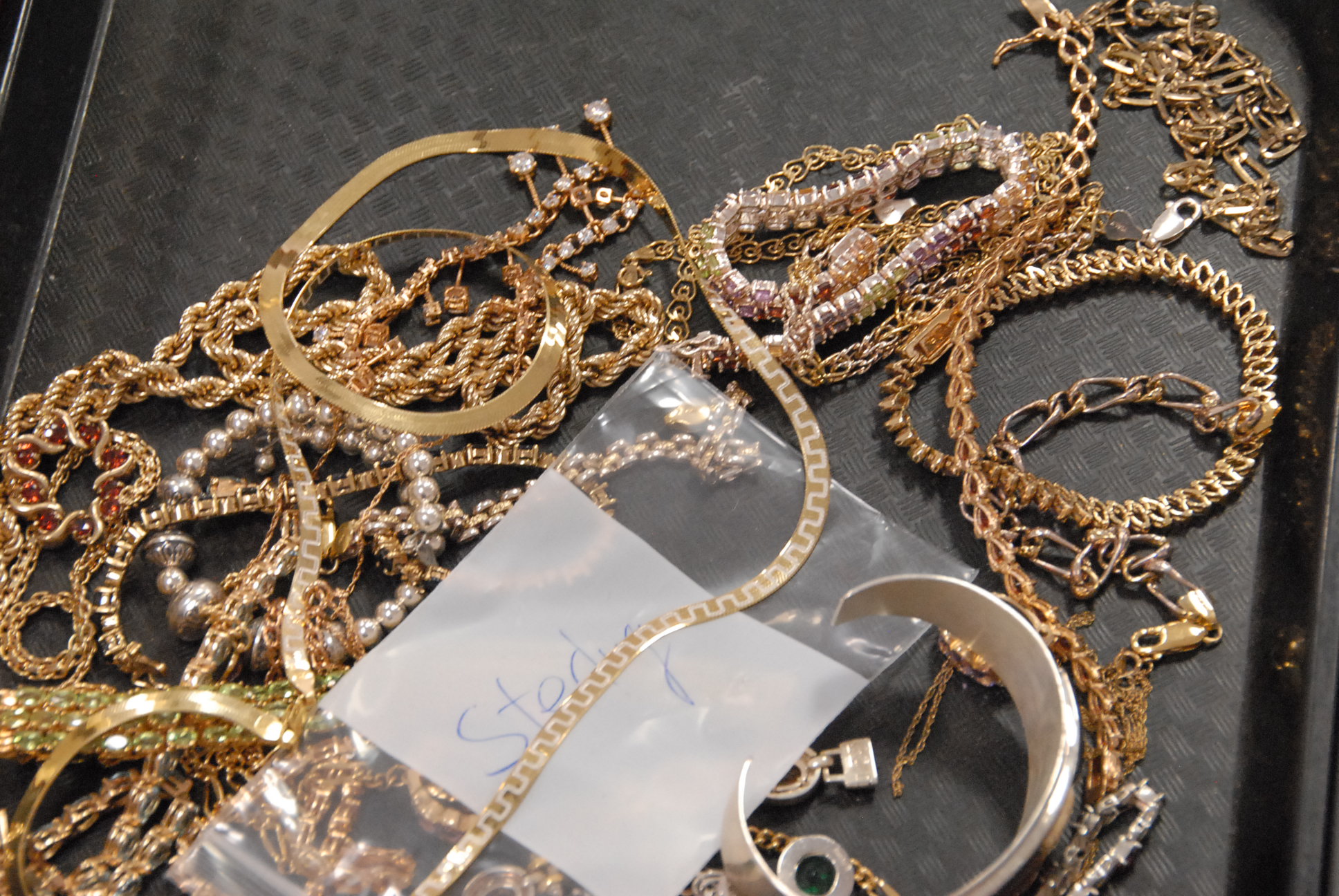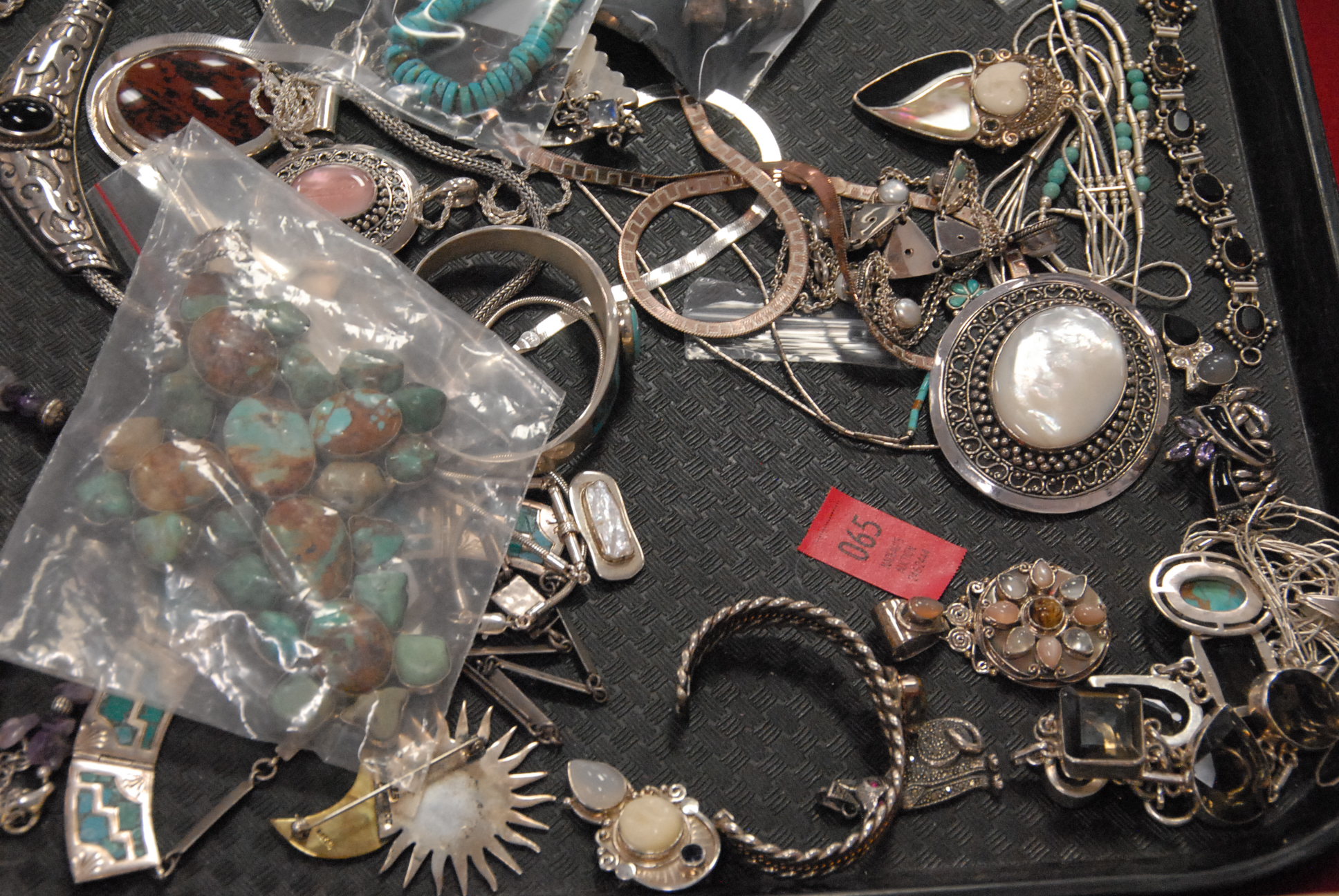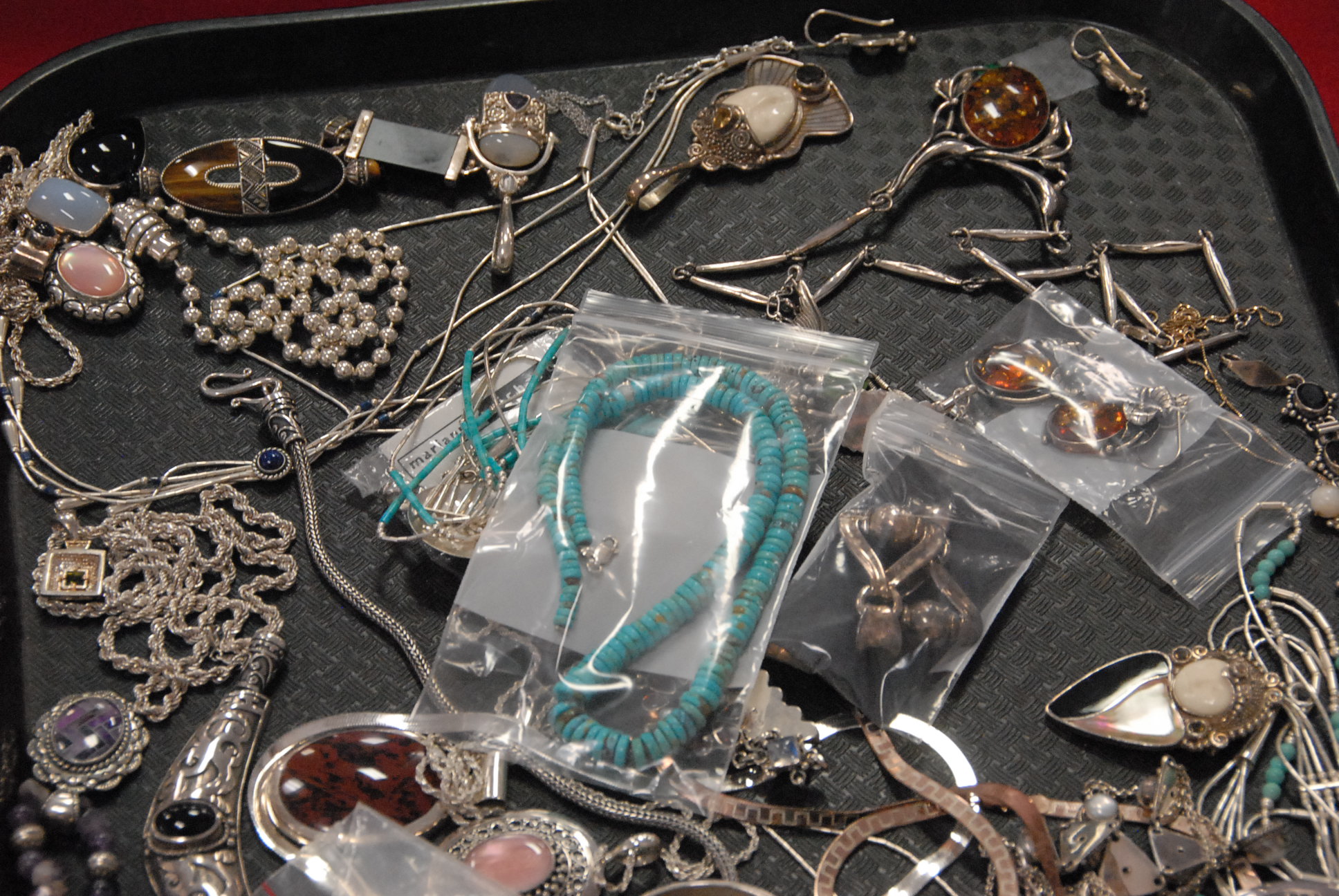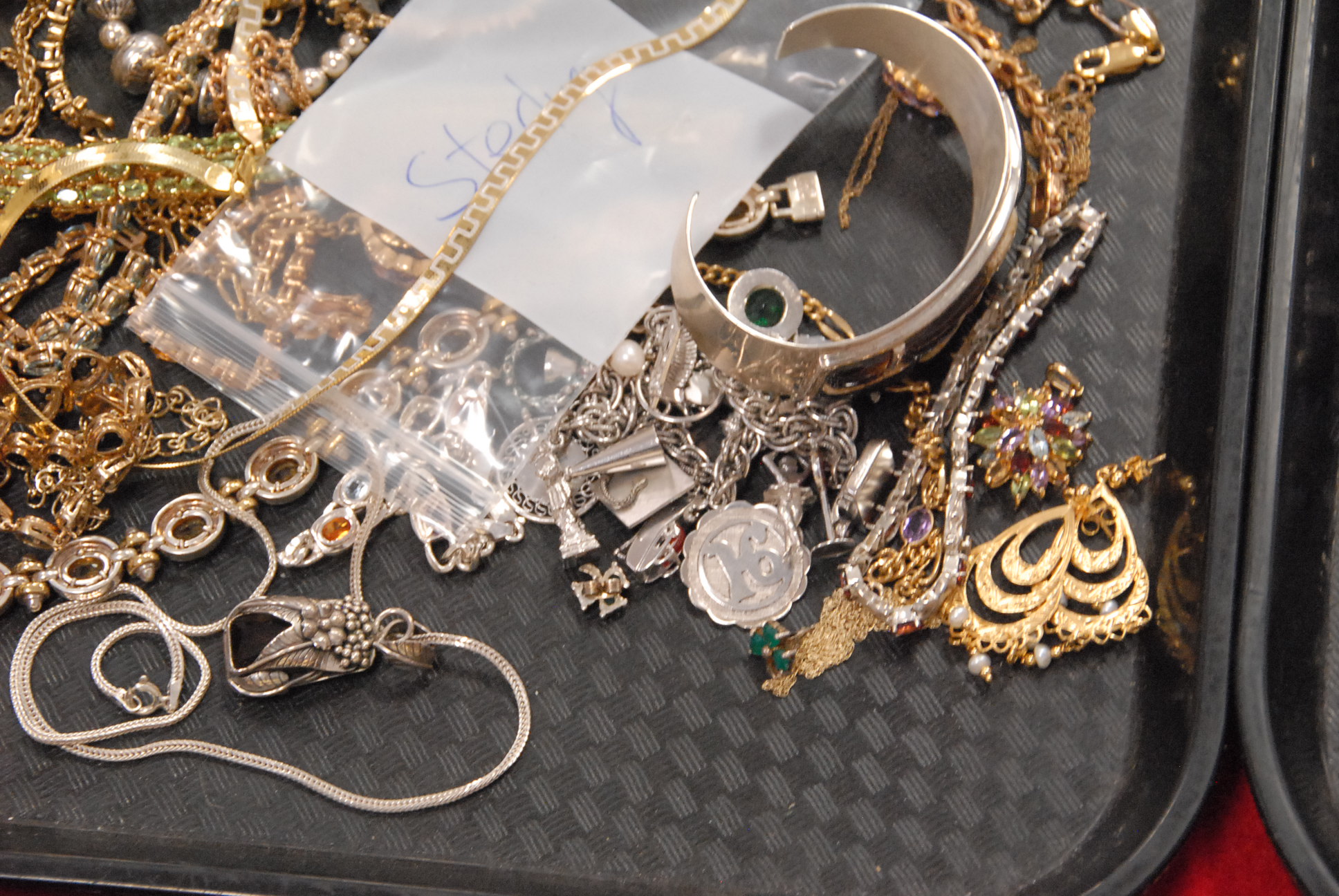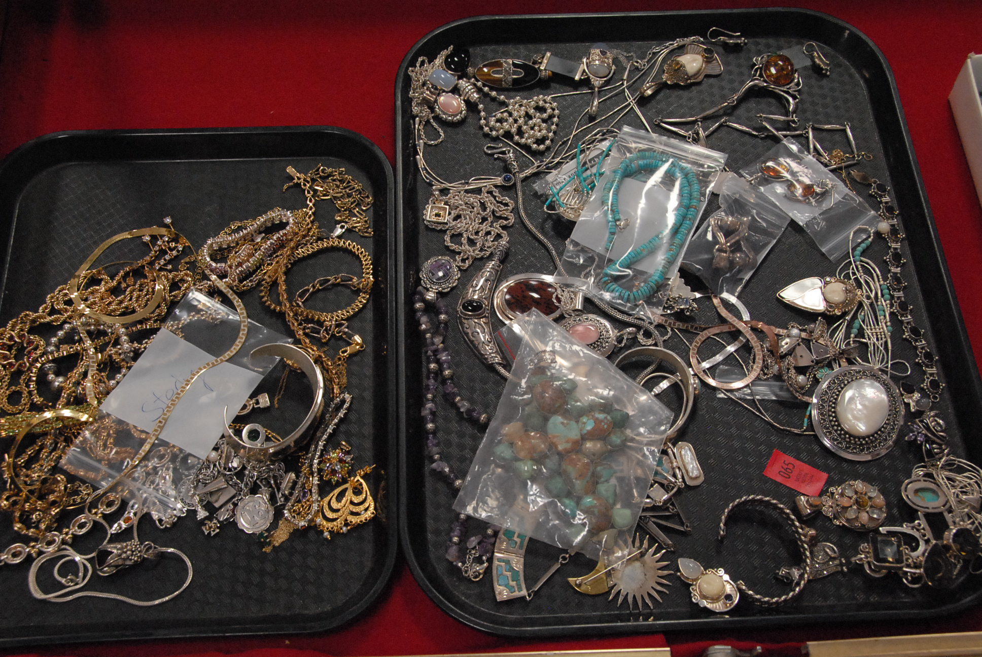 Two tray lots of sterling jewelry some mounted with stones, and some gold plated