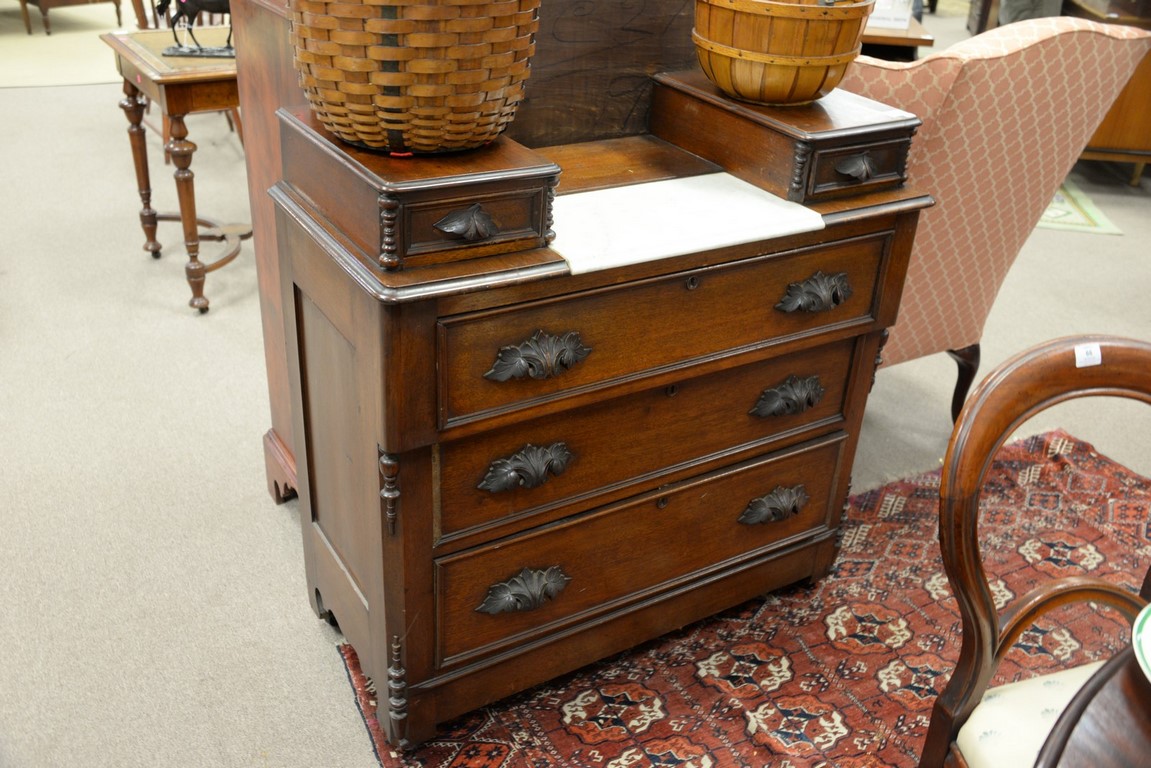 Victorian walnut chest with marble center. ht. 41 in. wd. 40 in.