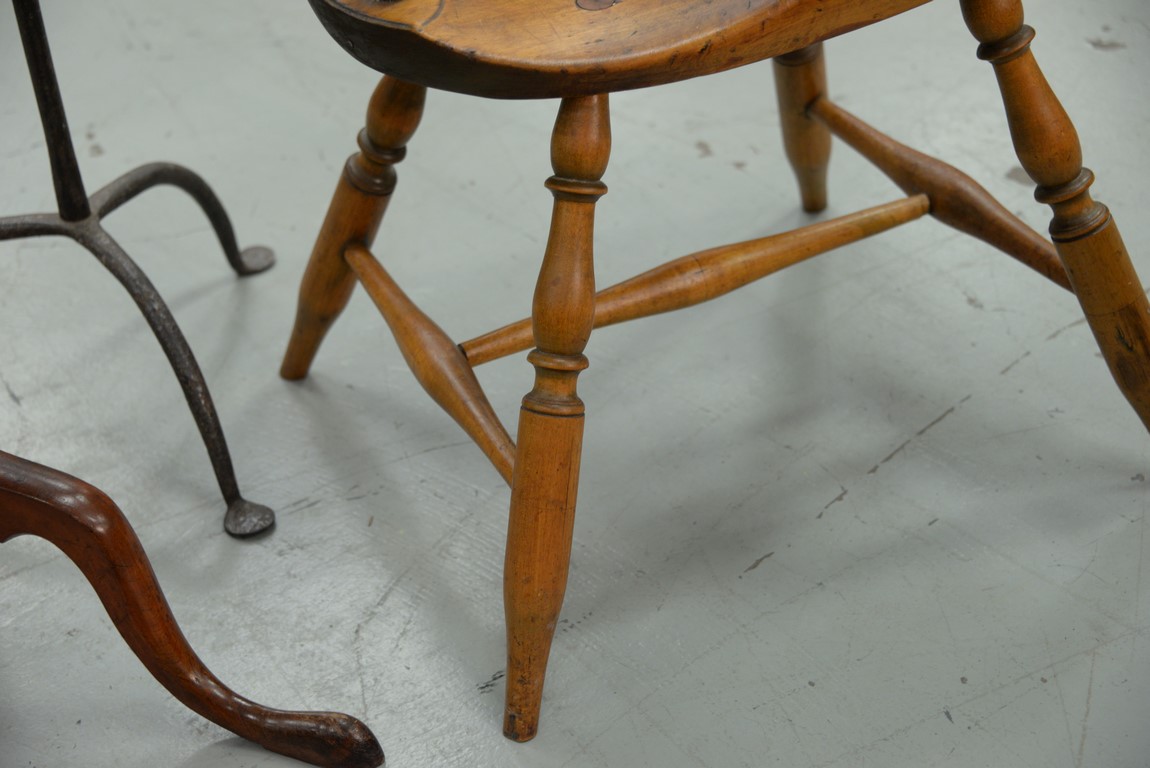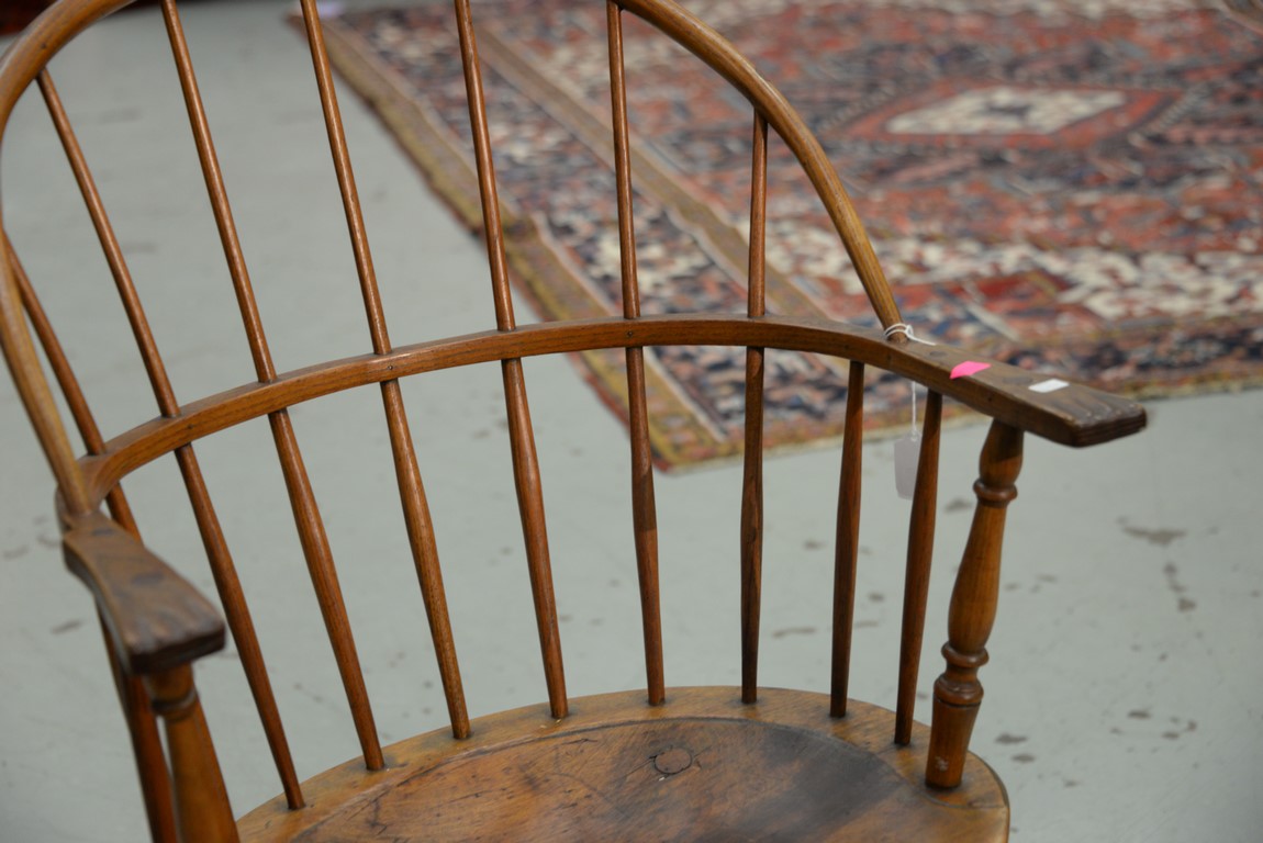 Lot 65: Windsor sackback armchair with knuckle arms. seat ht. 16 3/4 in. total ht. 36 in.