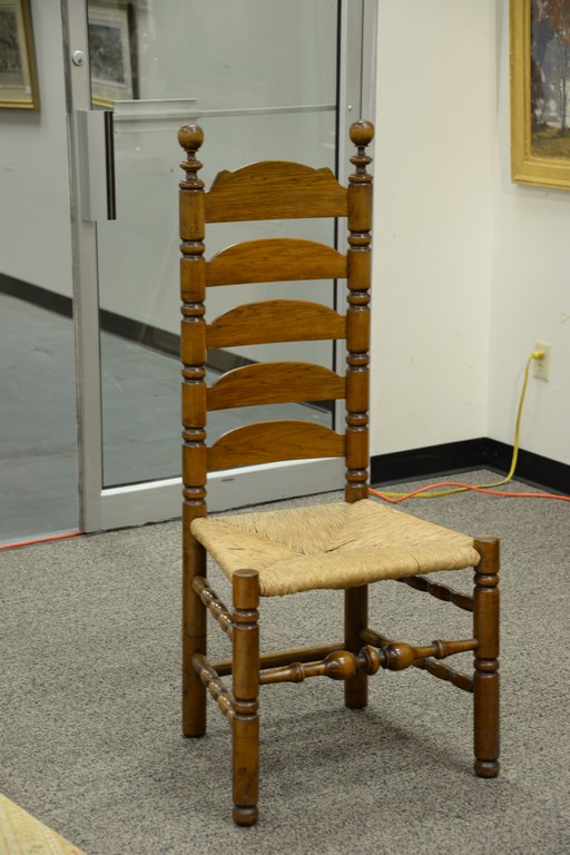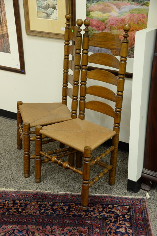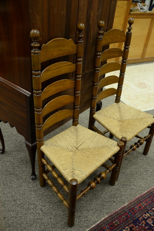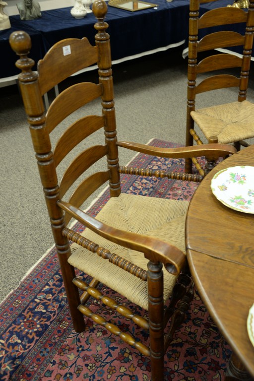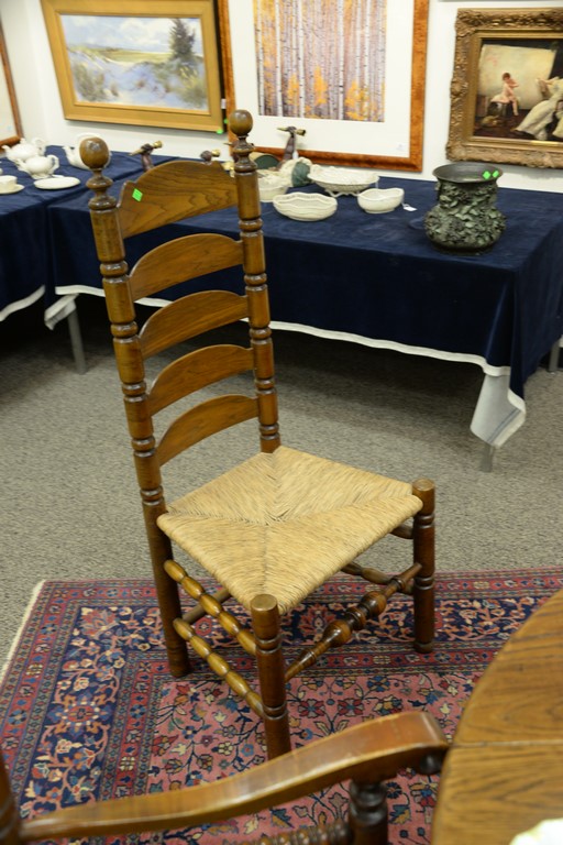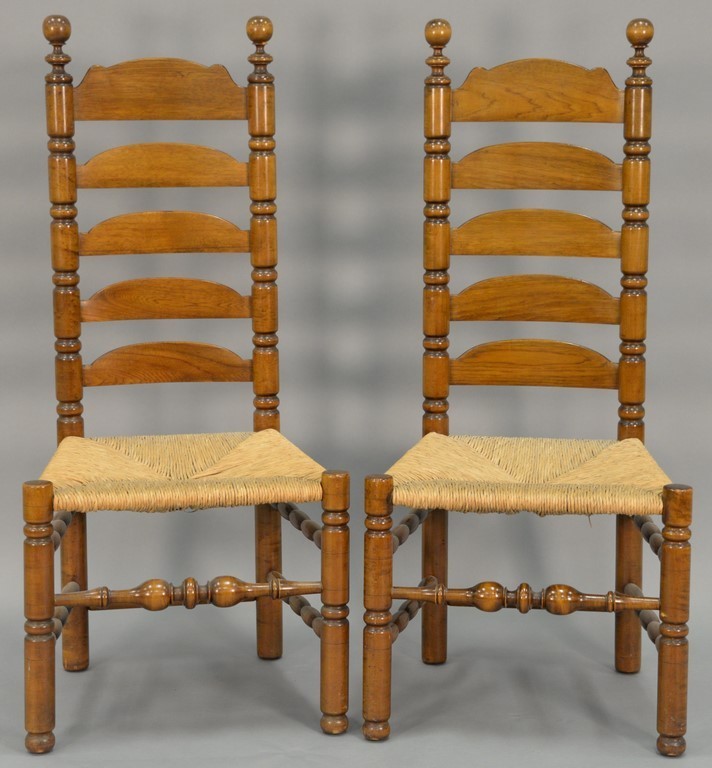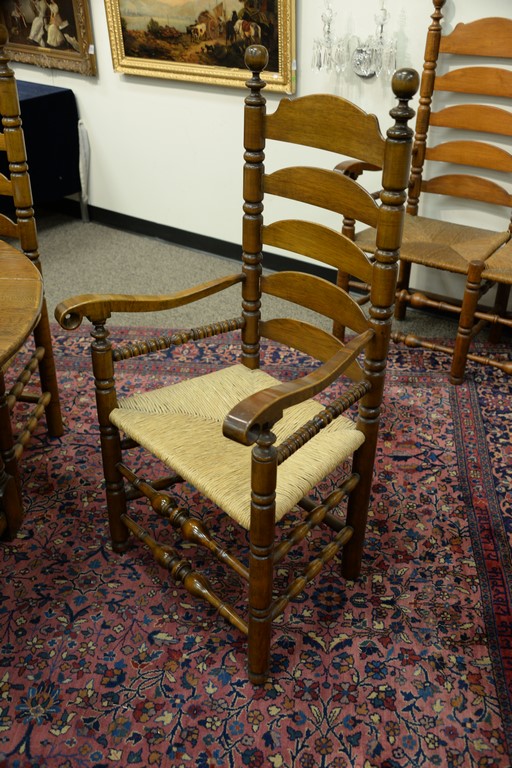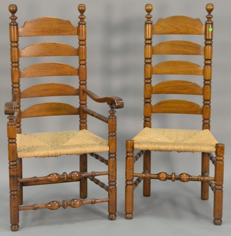 Lot 650: Wallace Nutting set of 10 ladder back chairs including two armchairs and eight side chairs, each with five slats in bold turnings, s…