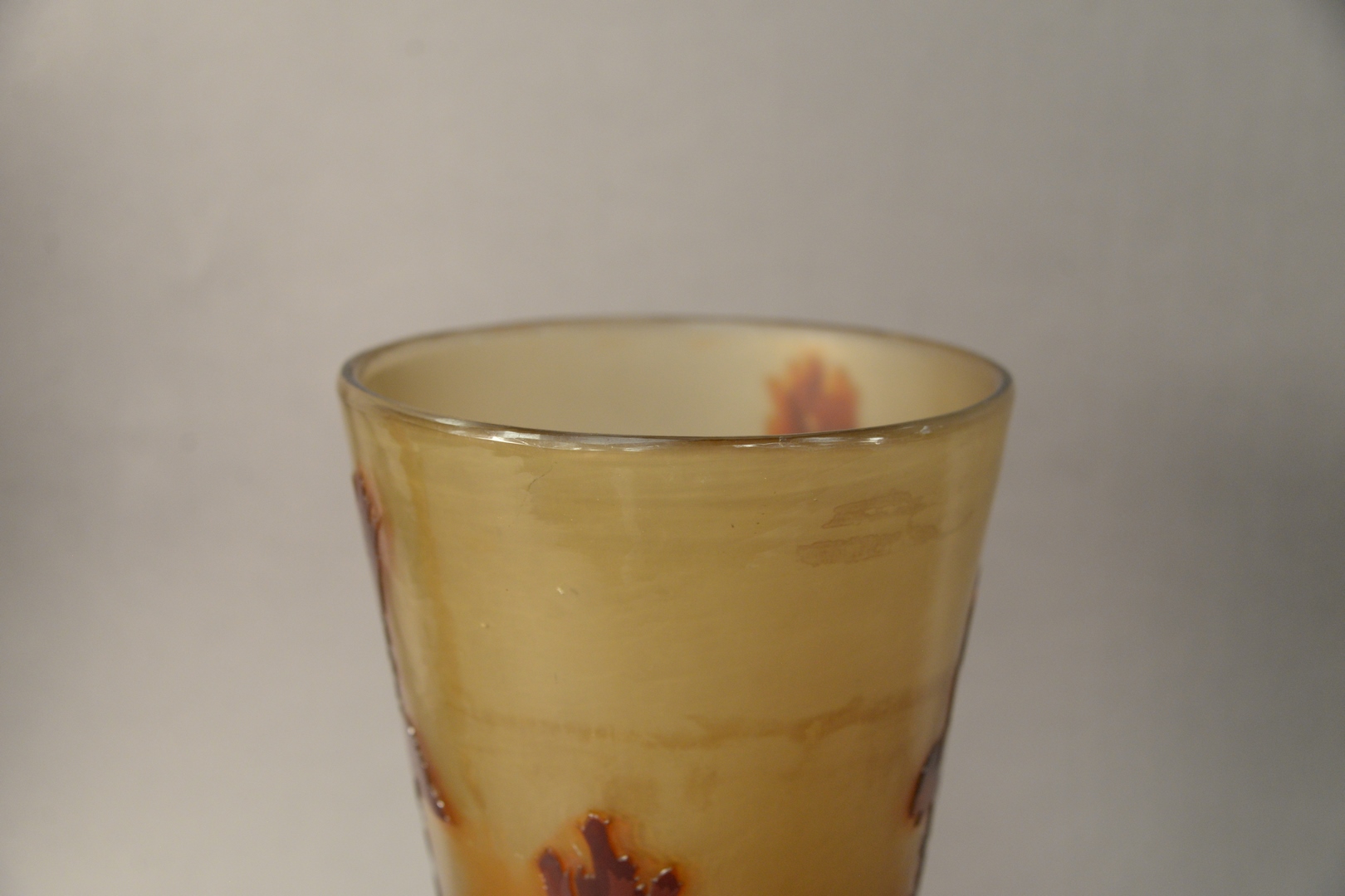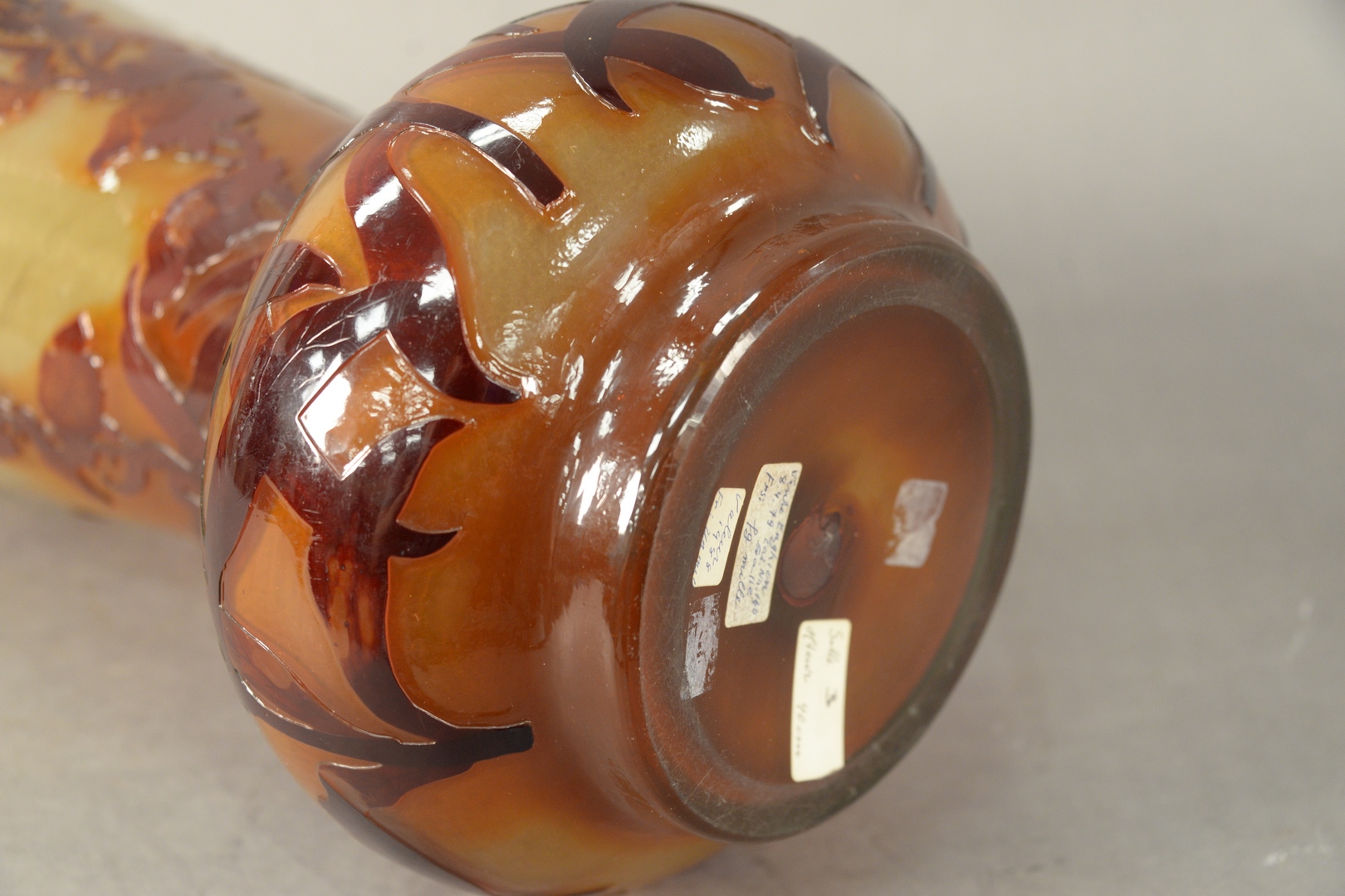 Lot 651: After Emile Galle Large Fire Polished Vase, having flared neck and red floral pattern, signed along the body Galle height 16 1/2 i…