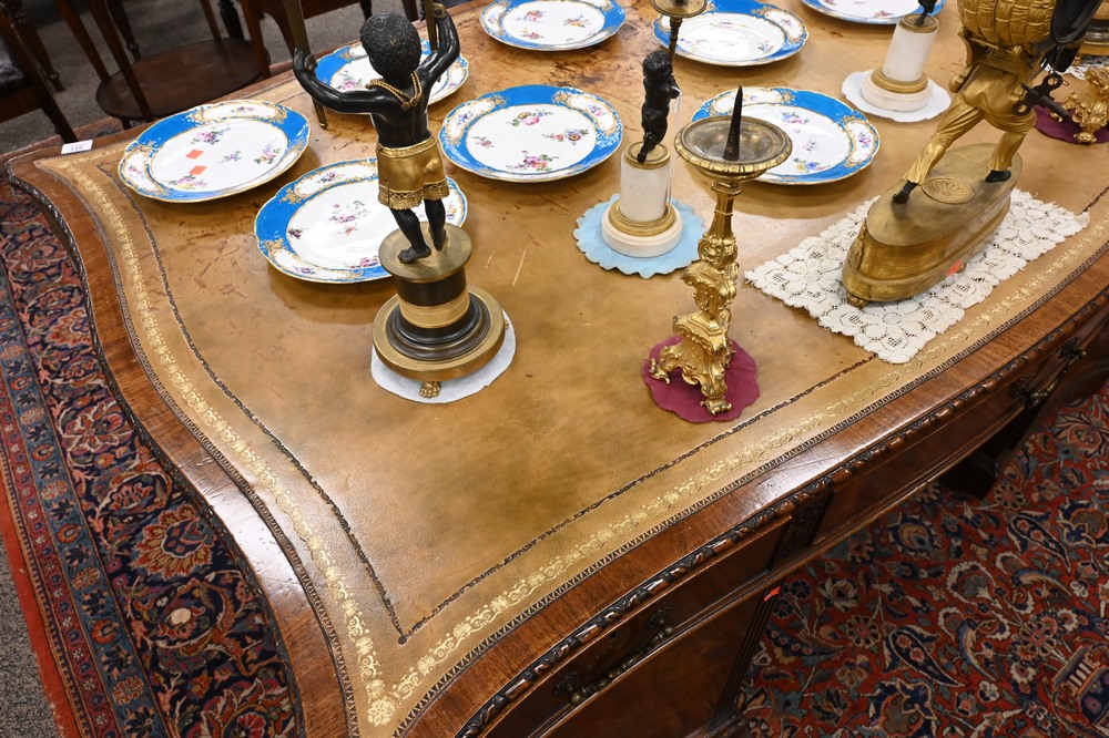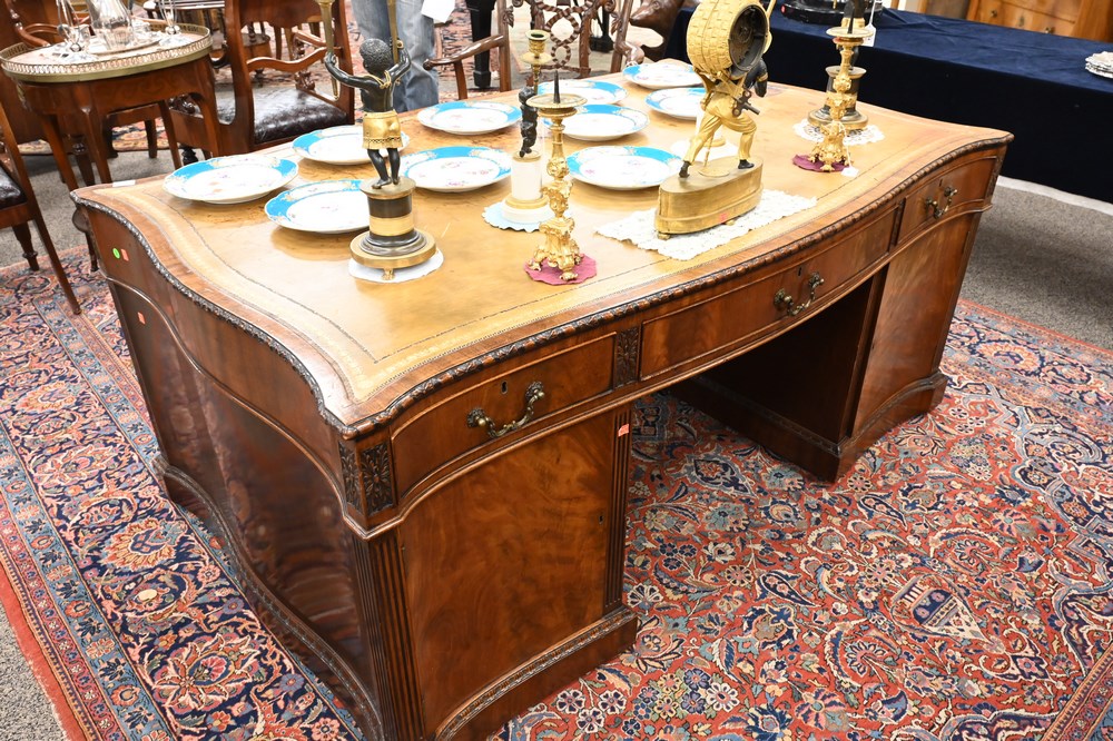 Lot 651: George IV Mahogany Pedestal Partners Desk, in the manner of Gillows Lancaster and London, having serpentine form inset leather writi…