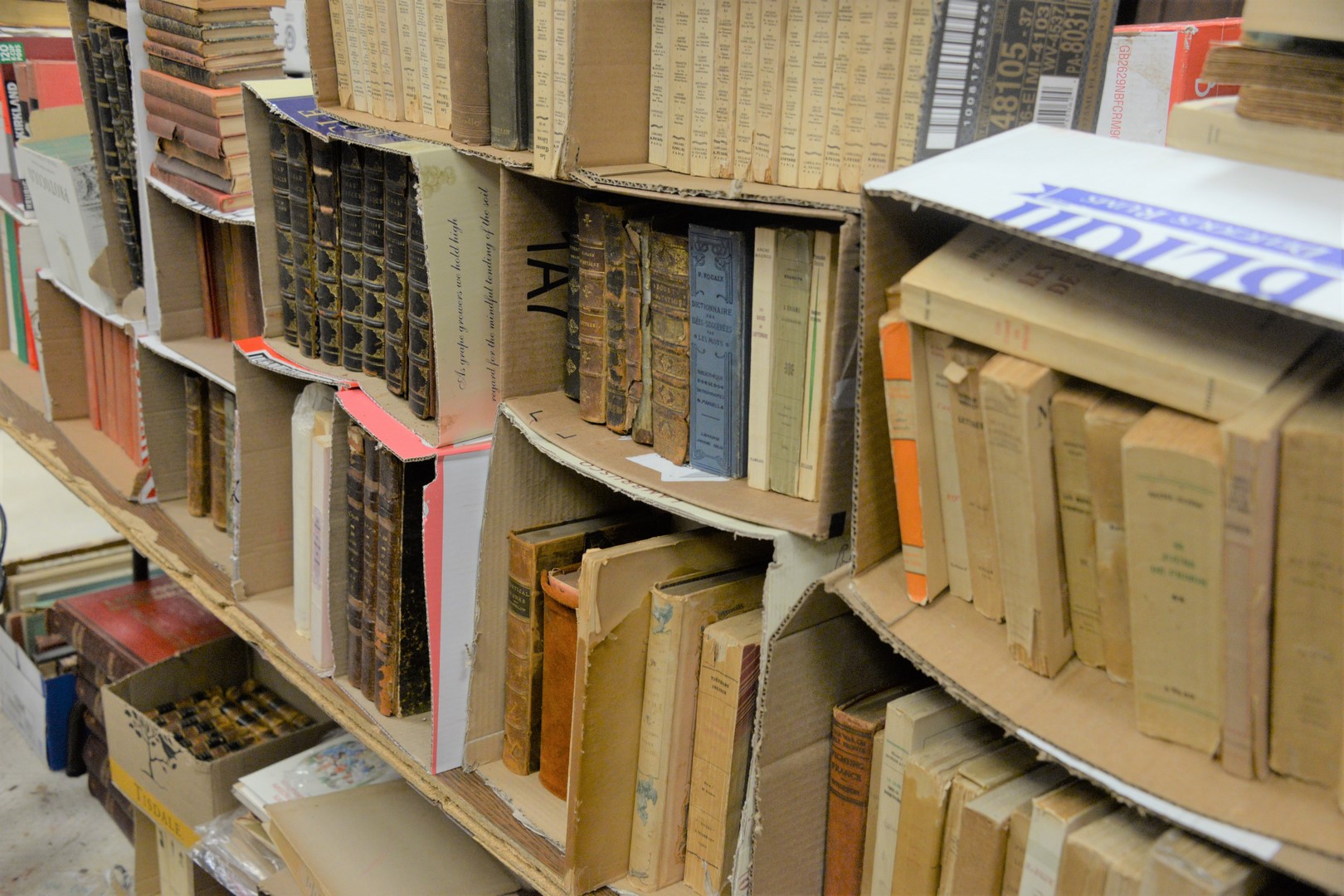 approximately fifty boxes of books to include several by Winston Churchill, Charles Dickens, and others
