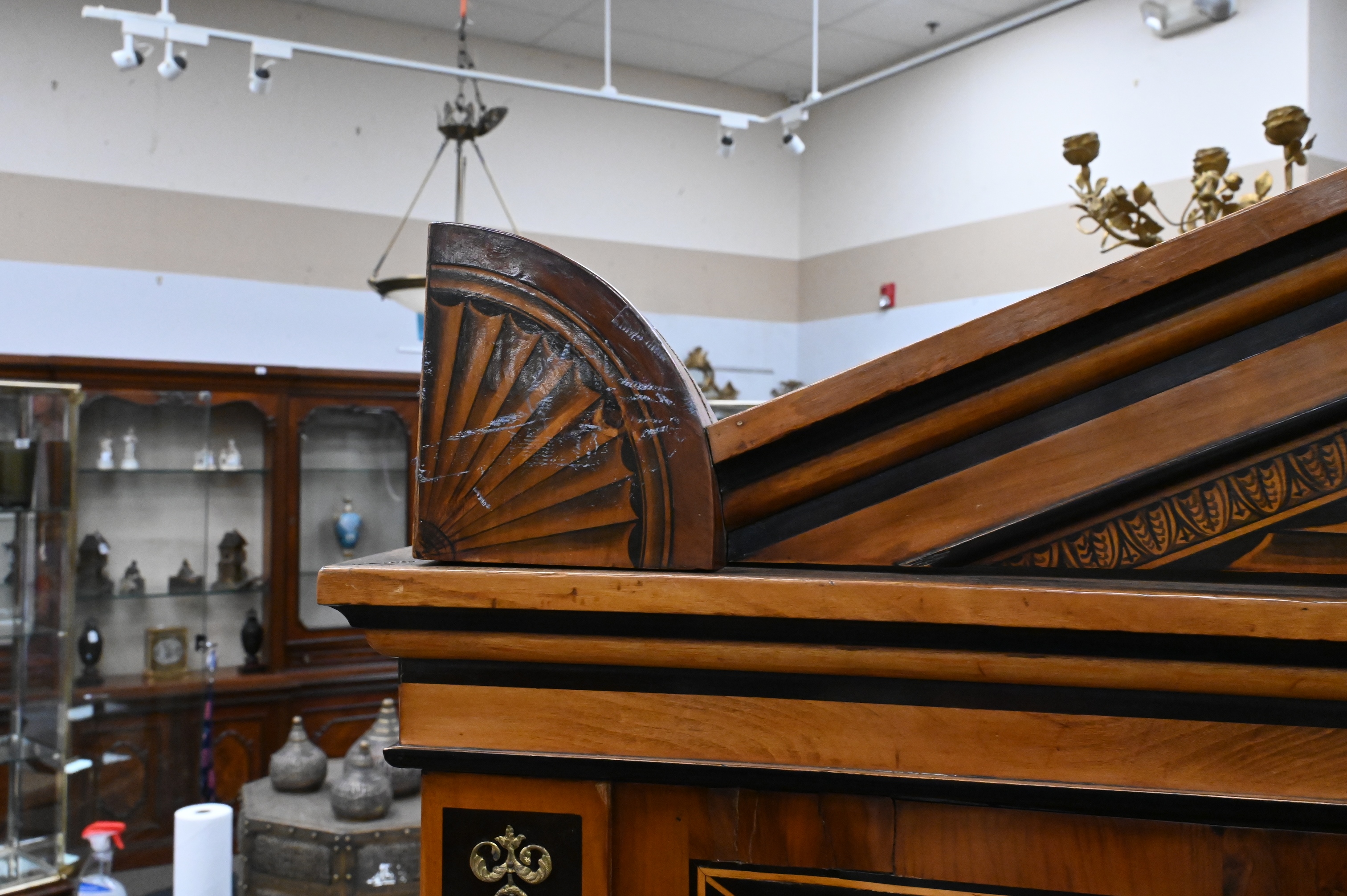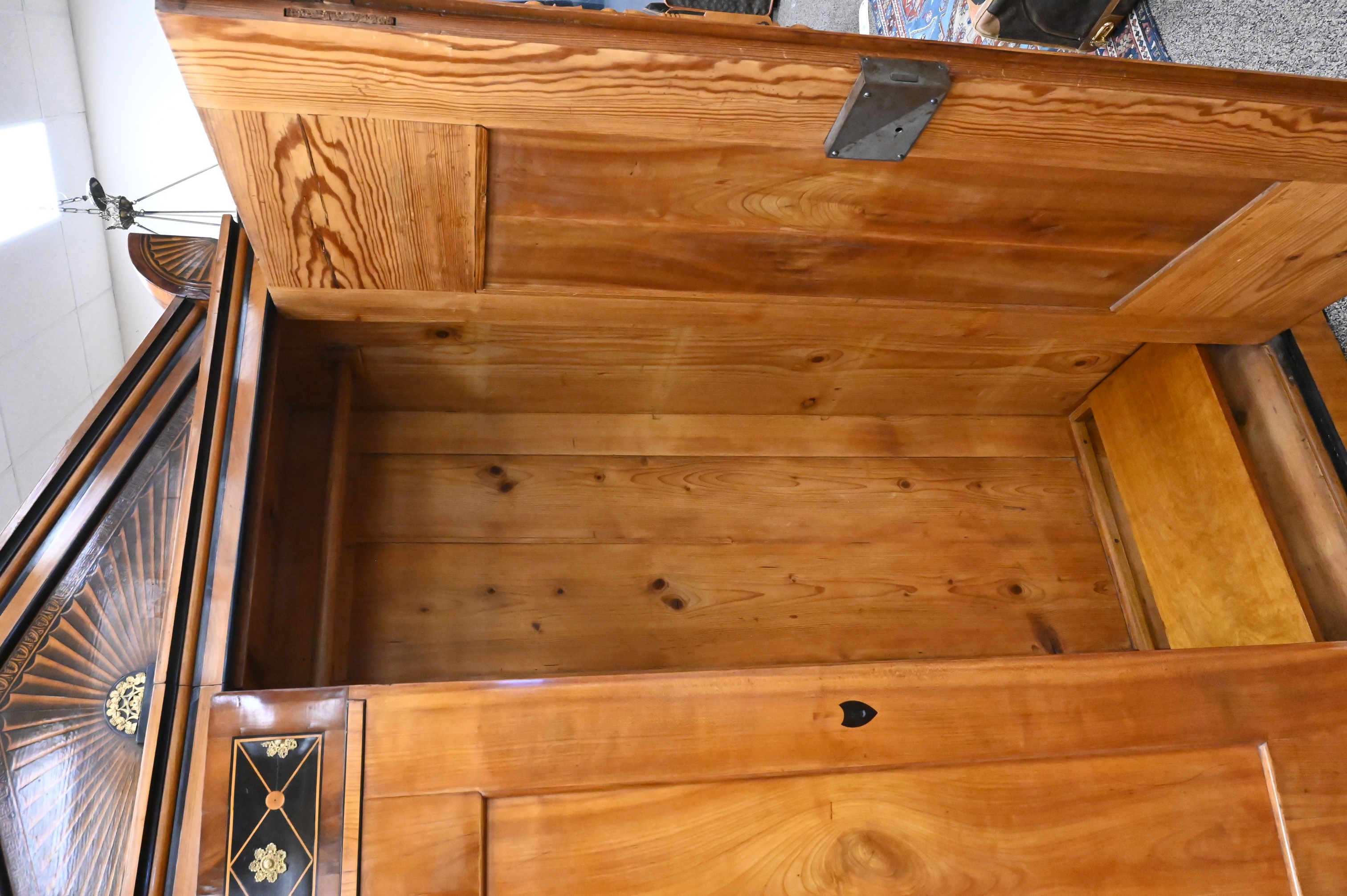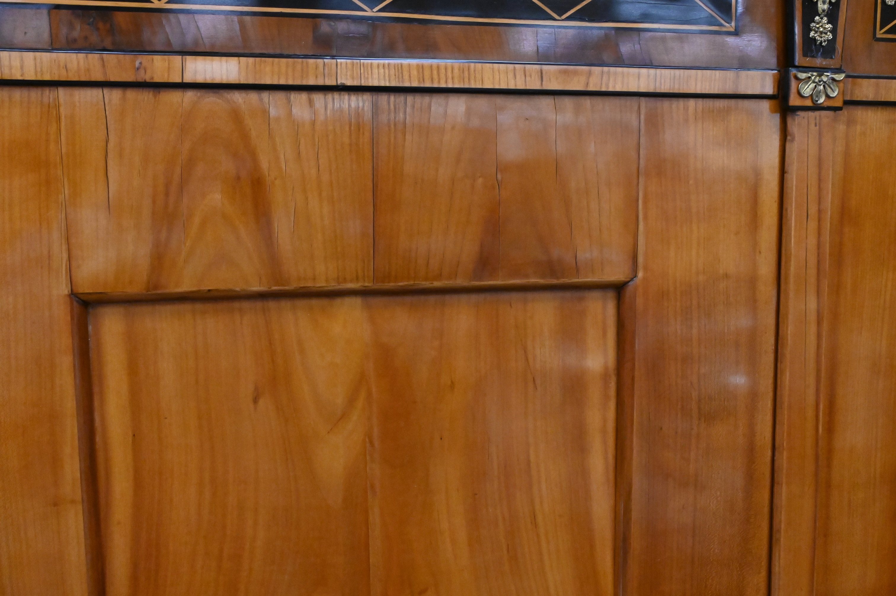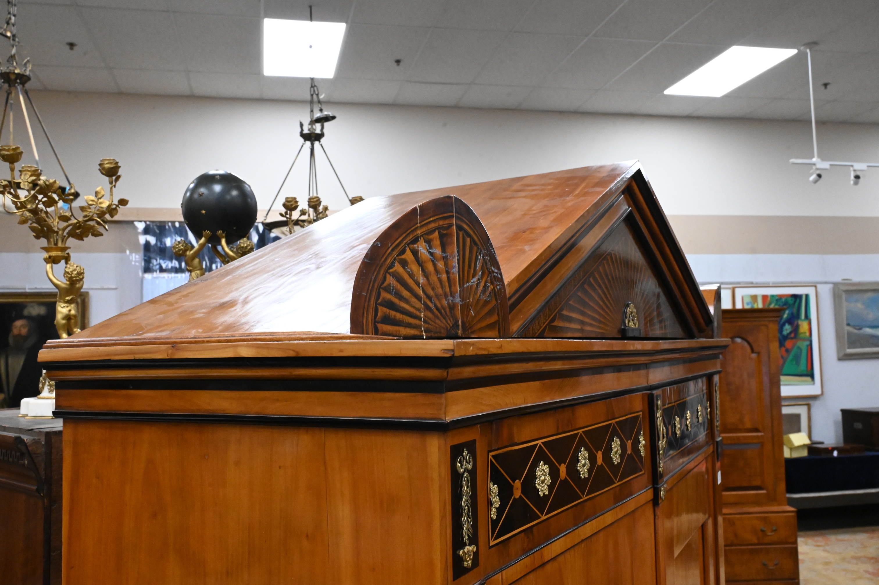 having inlaid pediment top with gilt bronze mount over two doors with inlaid panels and gilt bronze mounts, Vienna circa 1820