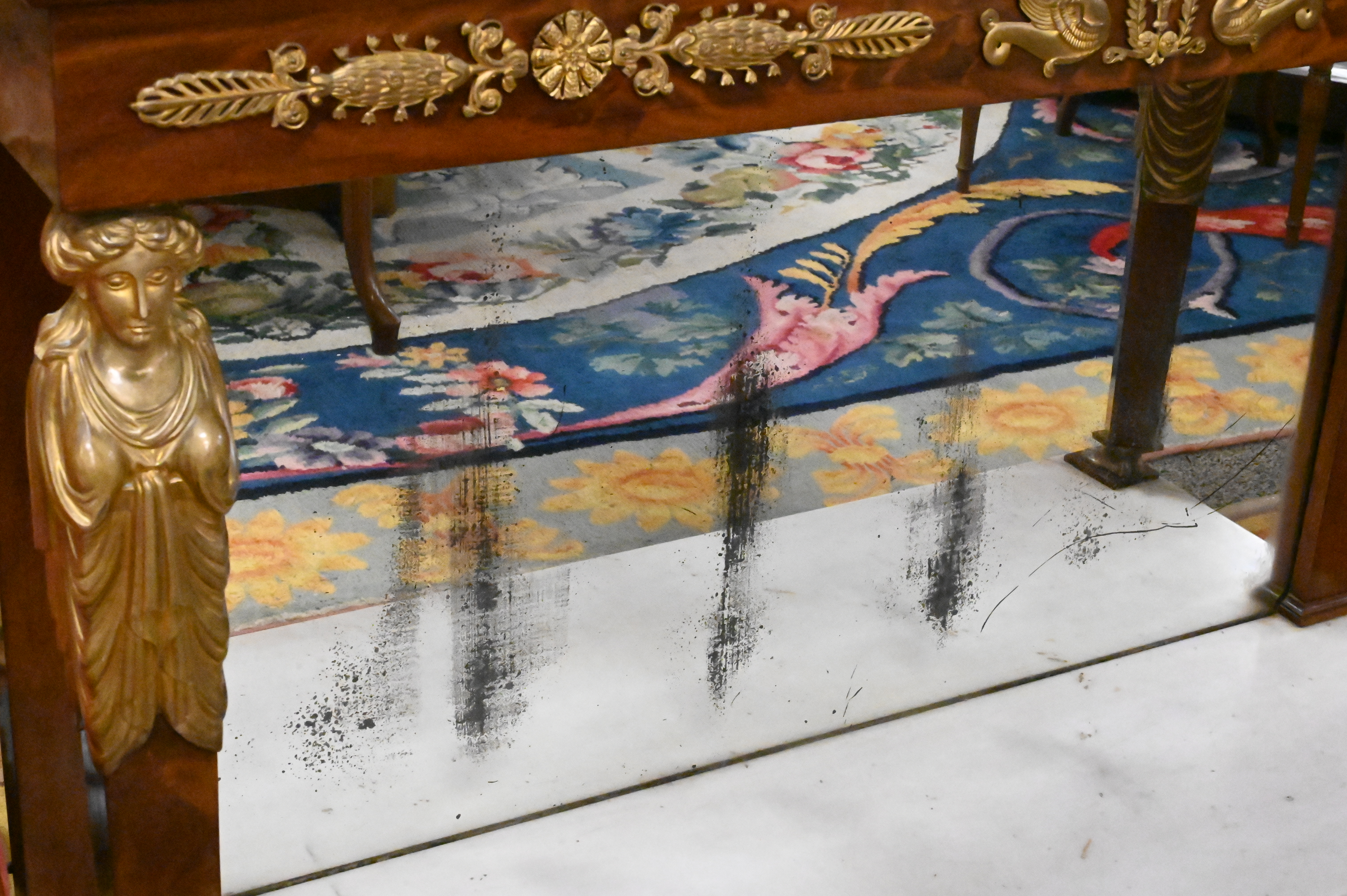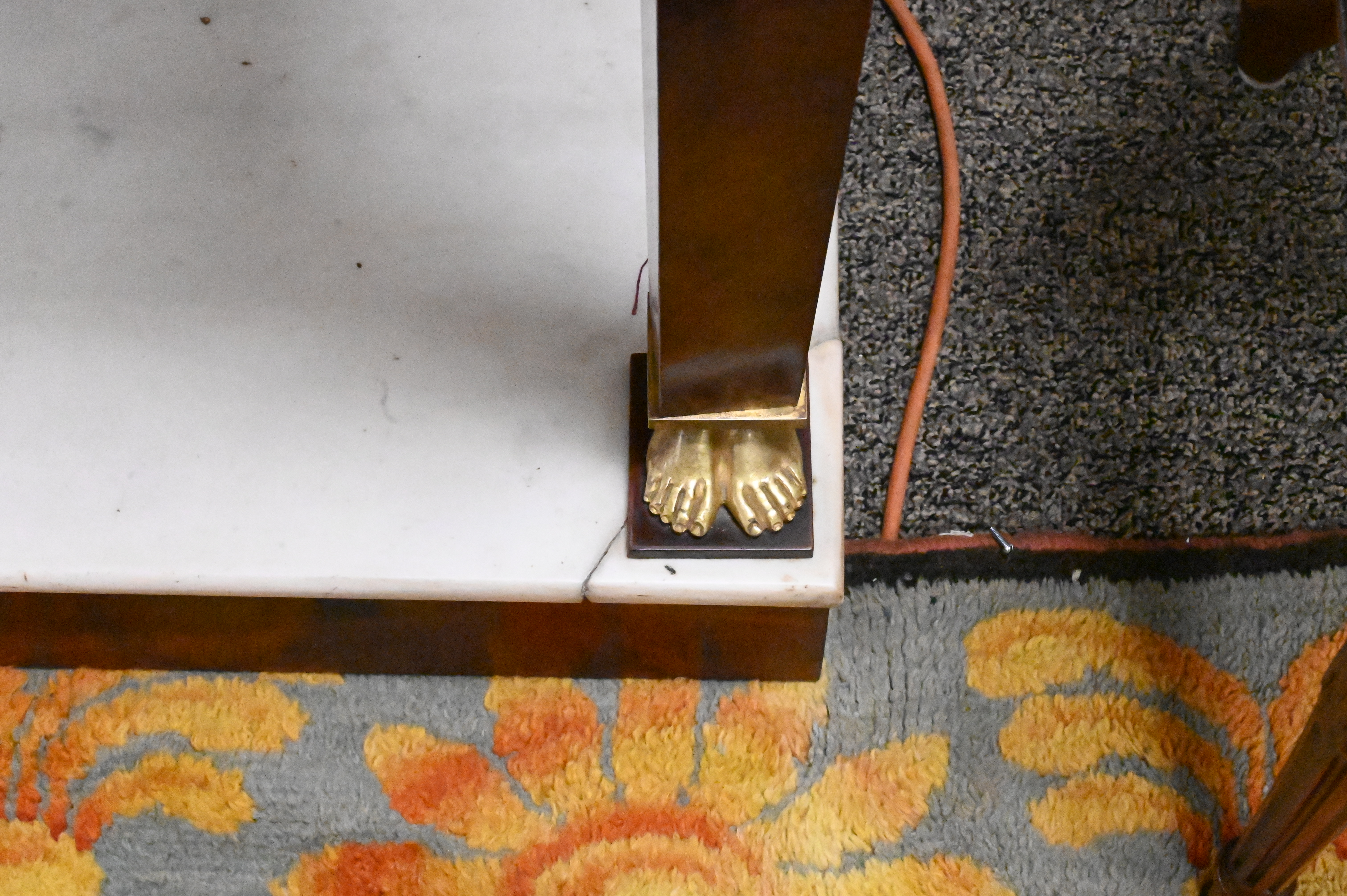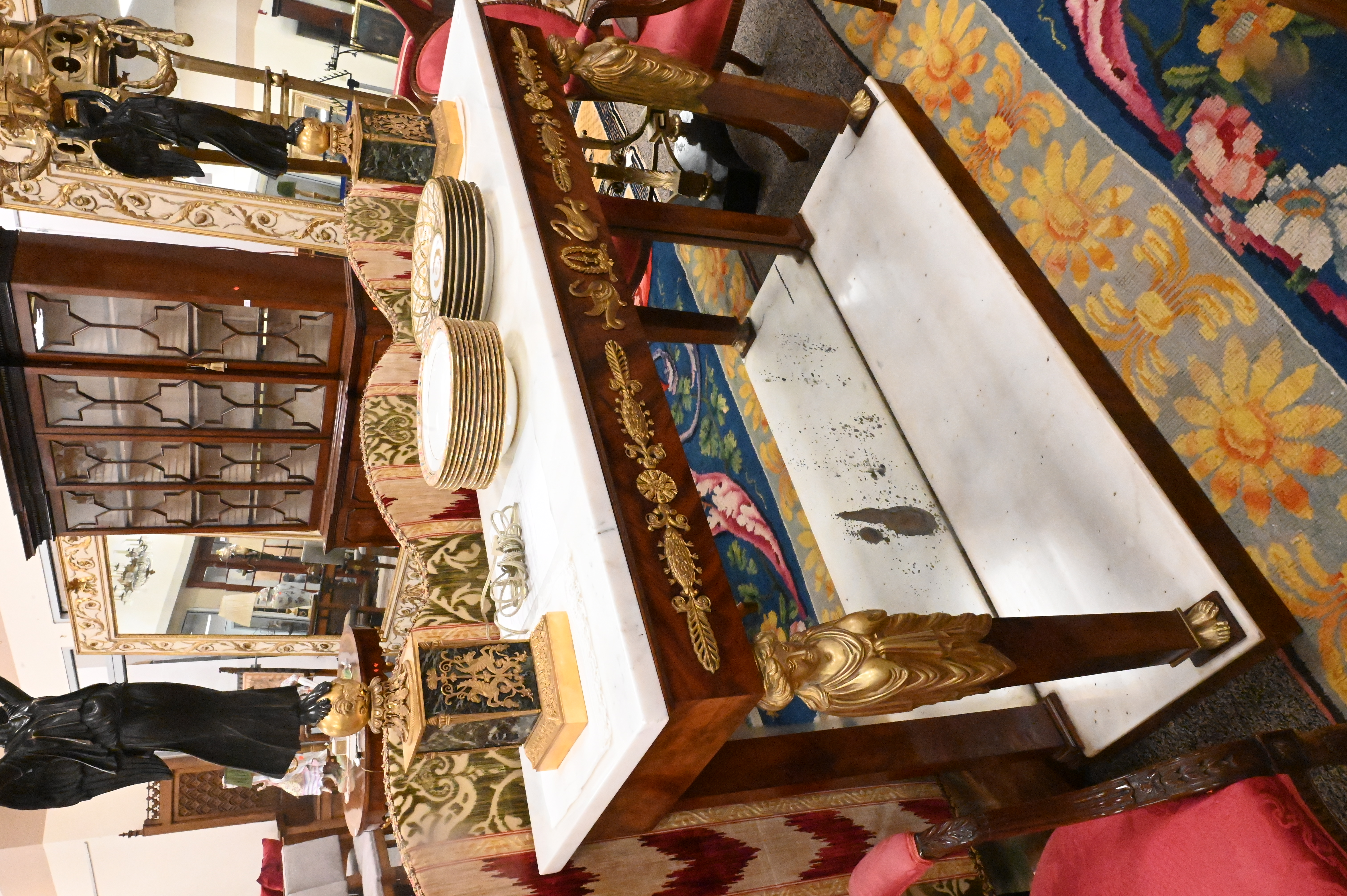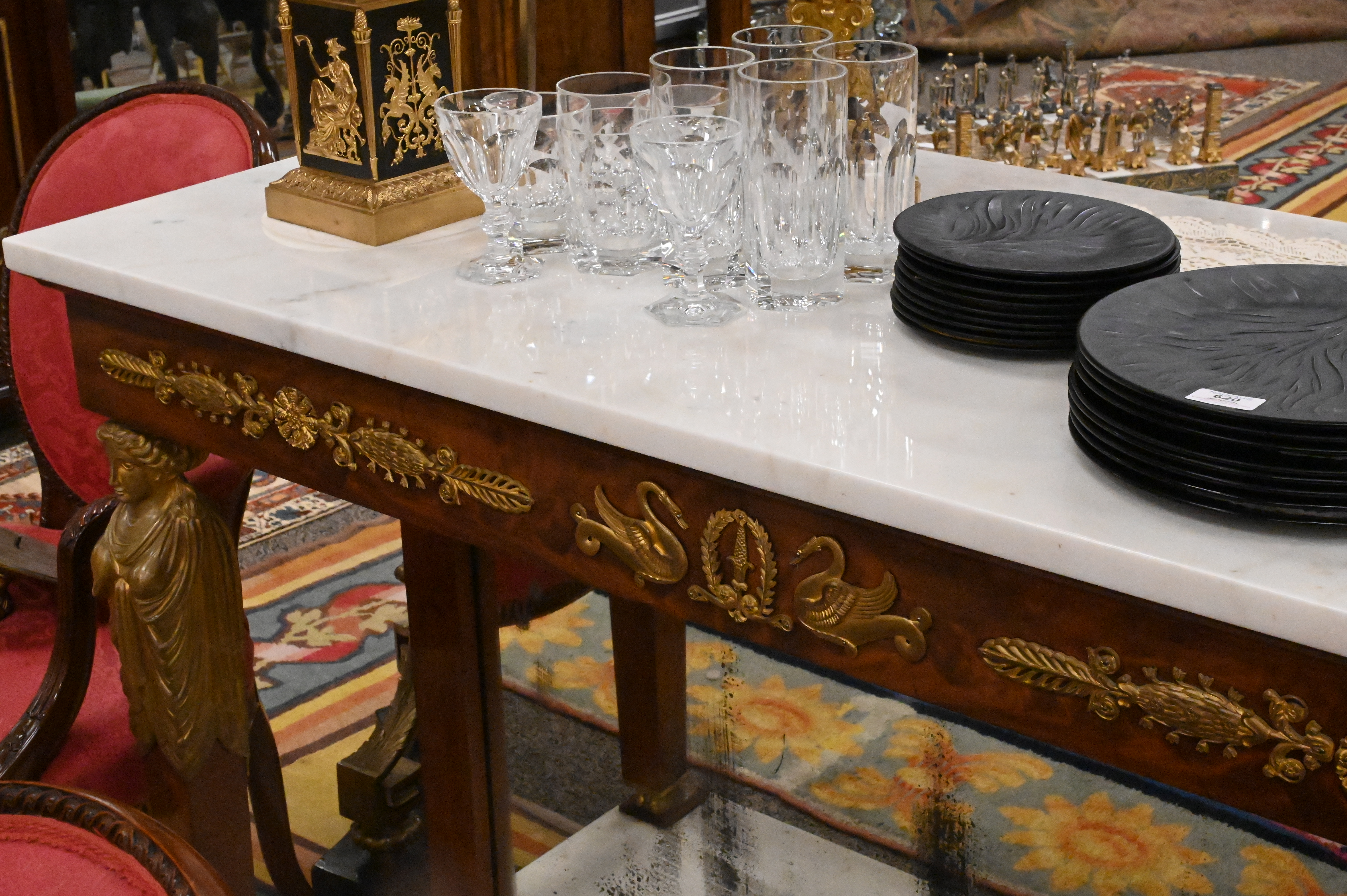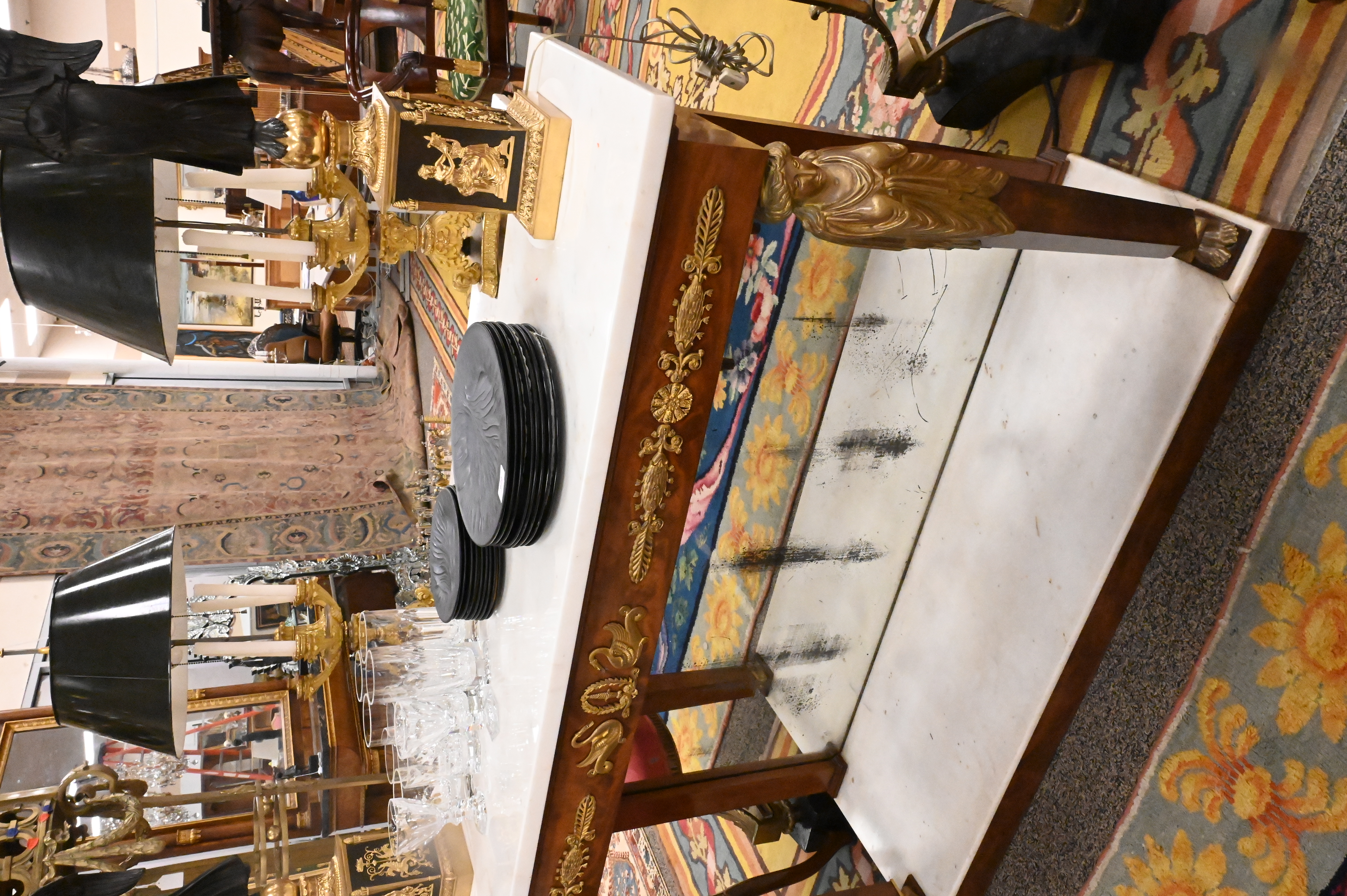 Lot 657: A Pair of Empire Style Ormolu Mounted Marble Top Console Des Dessertes