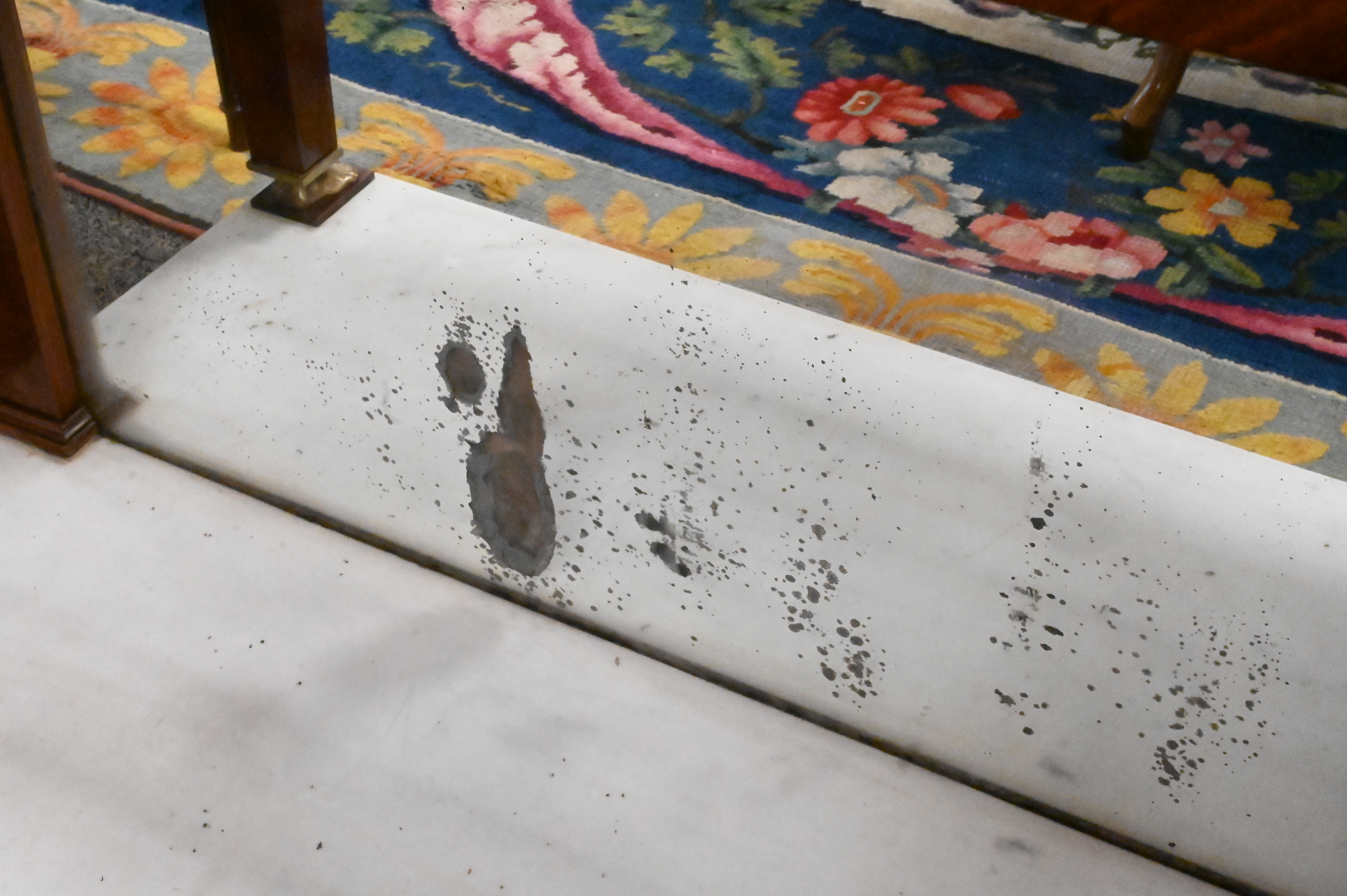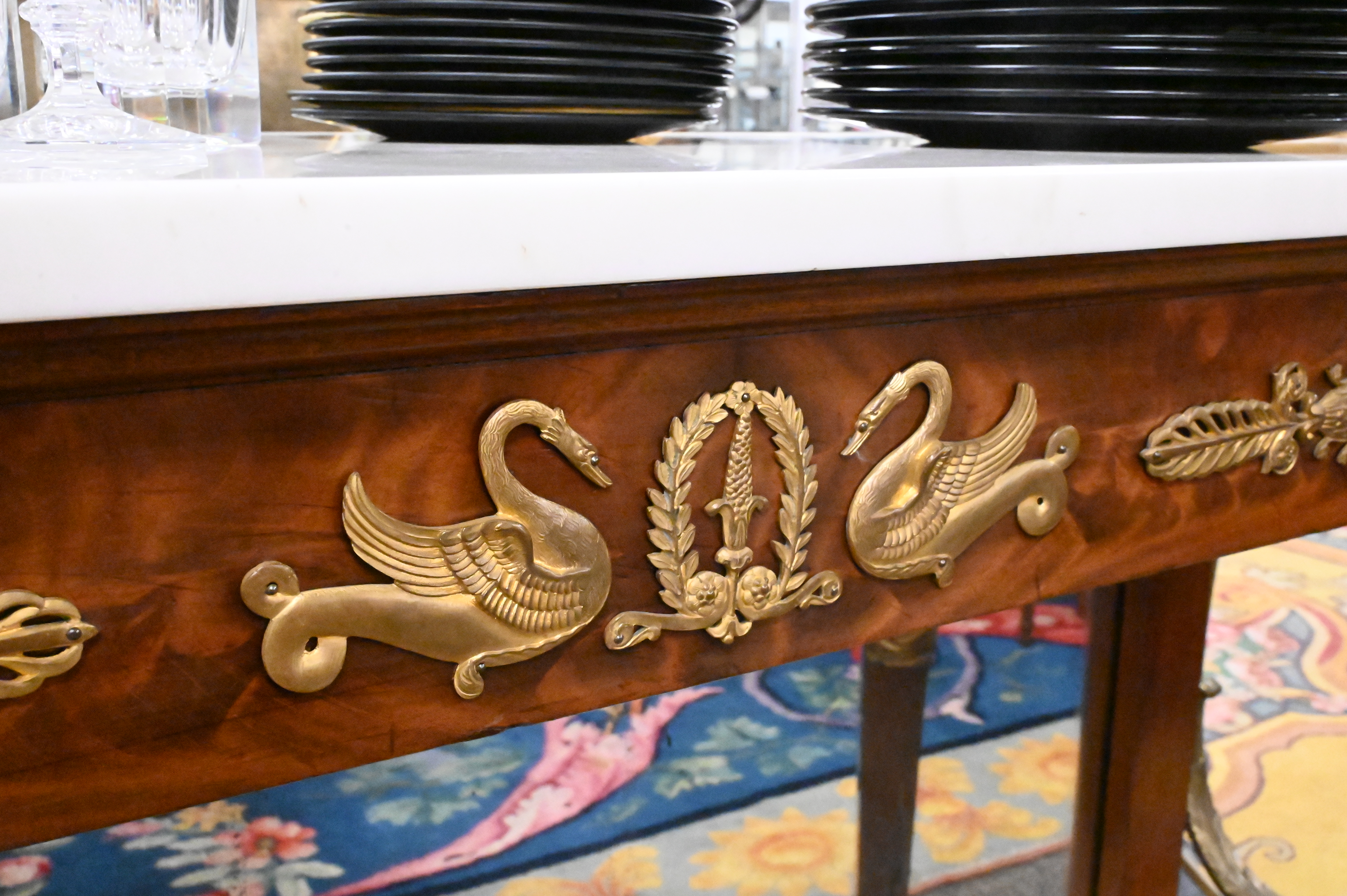 A Pair of Empire Style Ormolu Mounted Marble Top Console Des Dessertes
