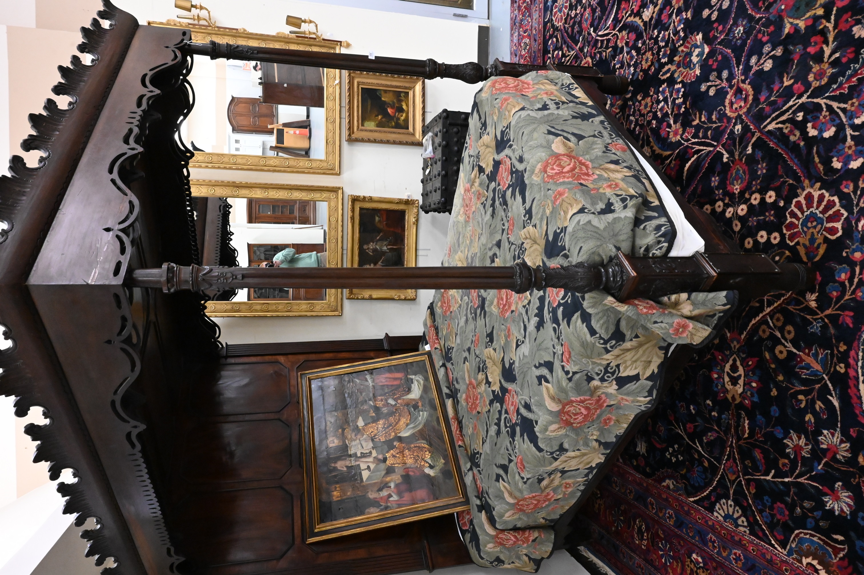 Lot 658: George III Mahogany Bed having Fully Paneled and Carved Canopy