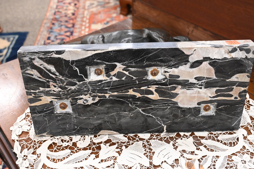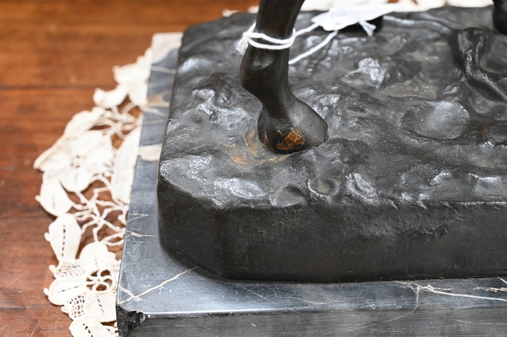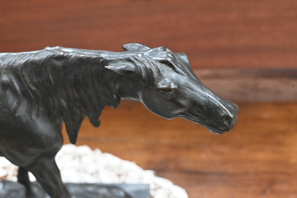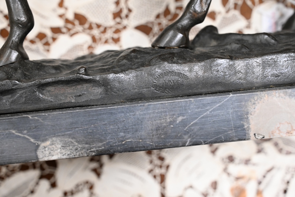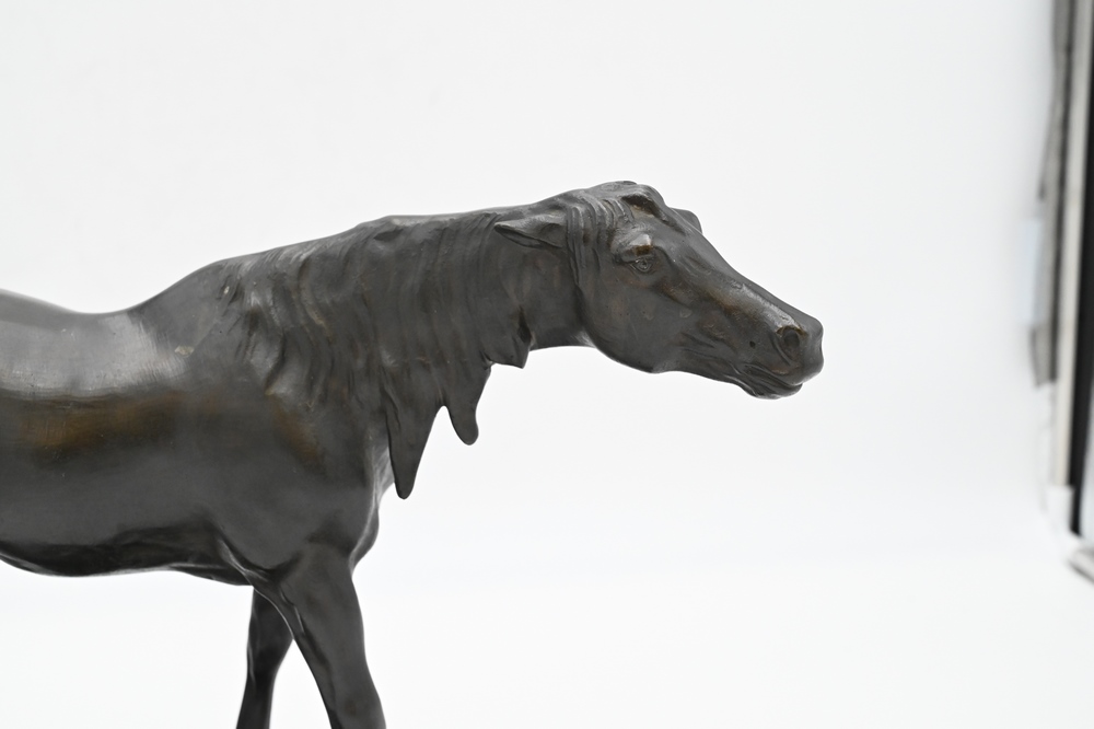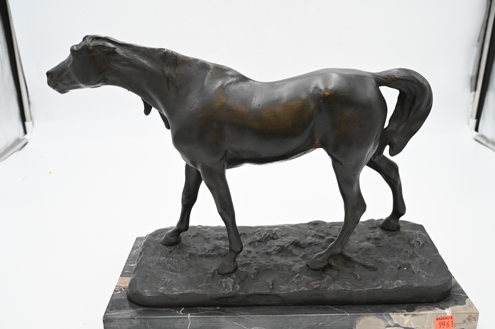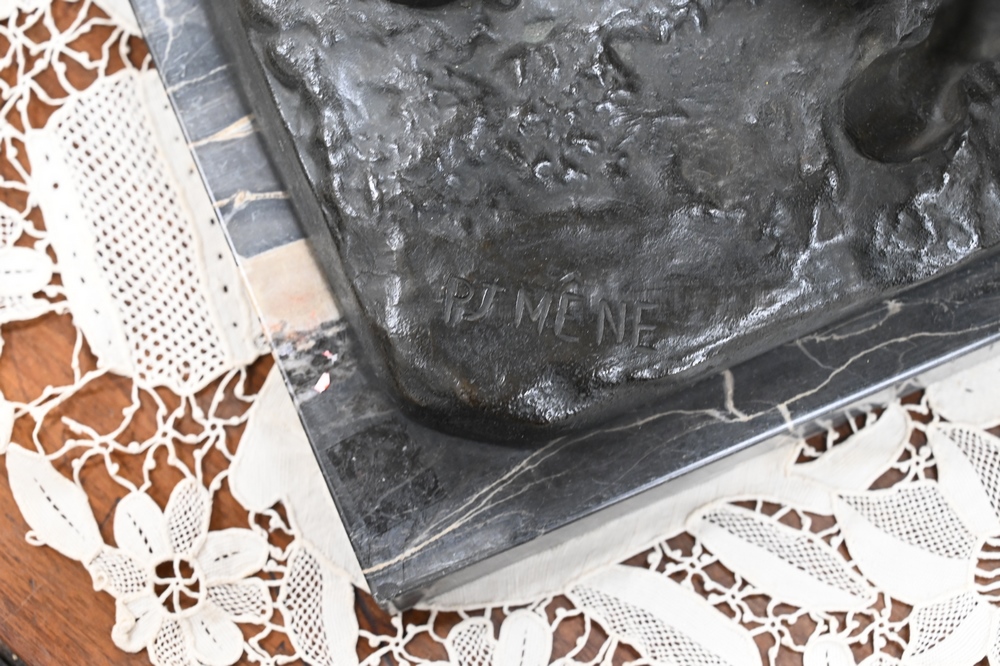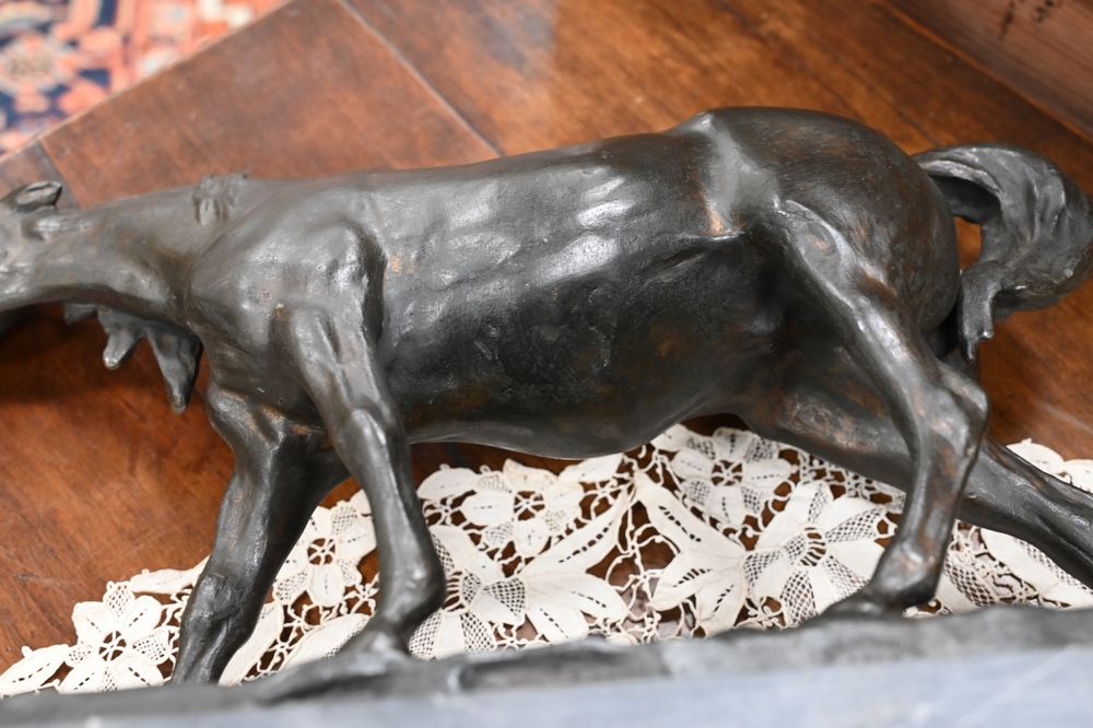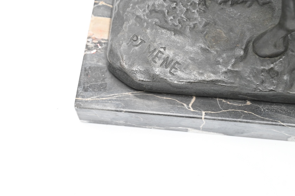 Lot 659: Pierre Jules PJ Mene (1810 – 1879), Arabian mare, bronze, left side signed PJ Mene, height 11 1/2 inches, length 18 1/2 inches.