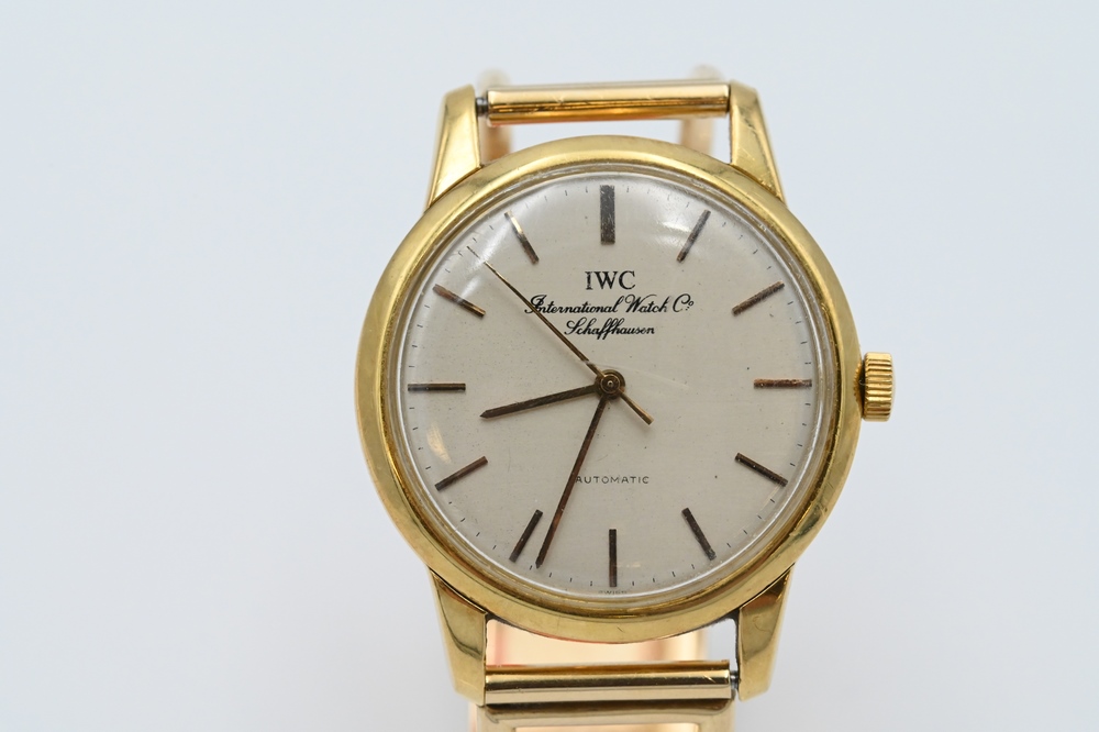 Lot 66: 14 Karat Gold International Men’s Wristwatch, having openwork, 14 karat gold band, dial marked International Schaffhausen, 36.4 mill…