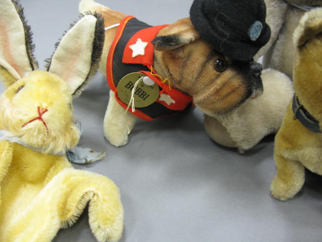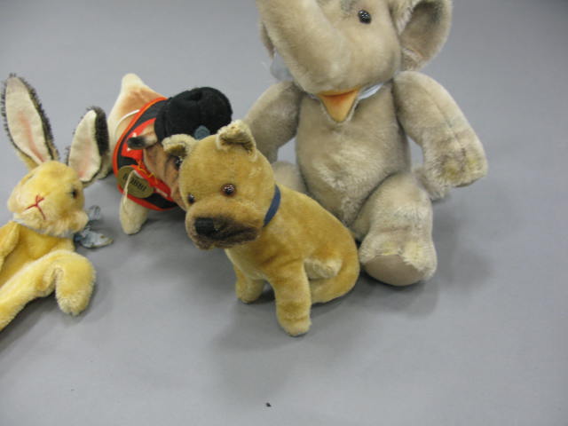 Four piece Steiff lot to include Bull dog, Boxer, Elephant and rabbit