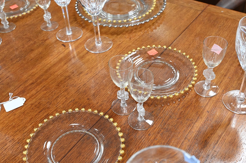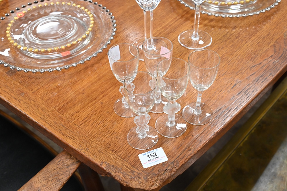 Lot 66: Group of Ten Lalique Cordials, with figural stems, height 4.5 inches.