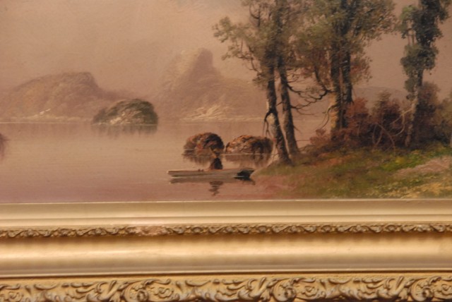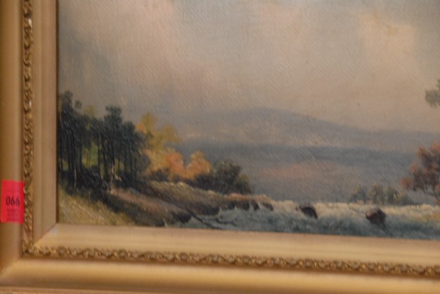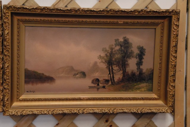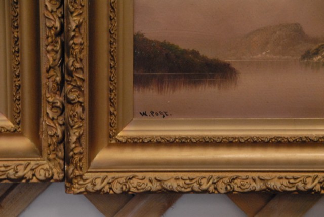Pair of W. Post, oil on board paintings, one landscape and one lake scene, signed W. Post.