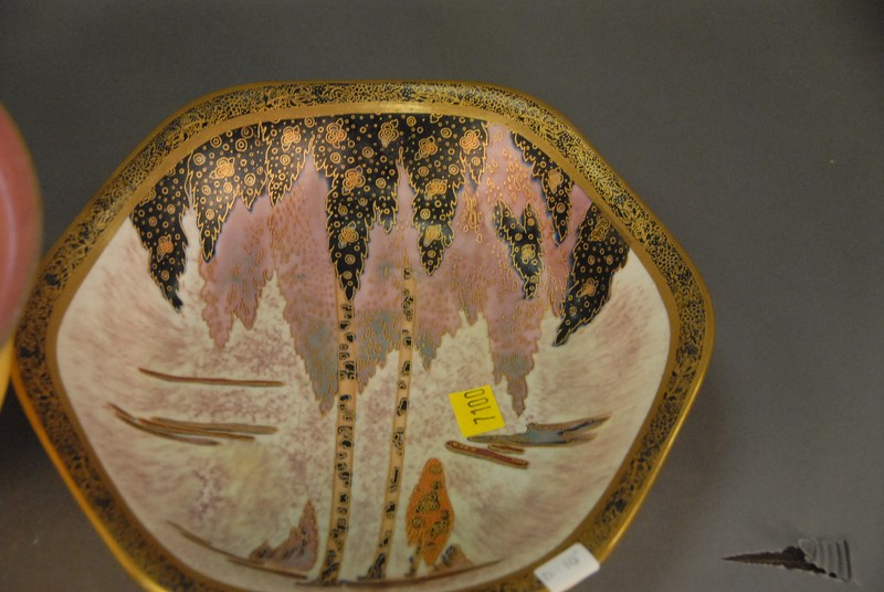 Lot 66: Two art deco Carltonware bowls, one is a painted willow tree ht. 2in. dia. 10in. and the other is pink luster ht. 5in. dia. 8 1/2in.