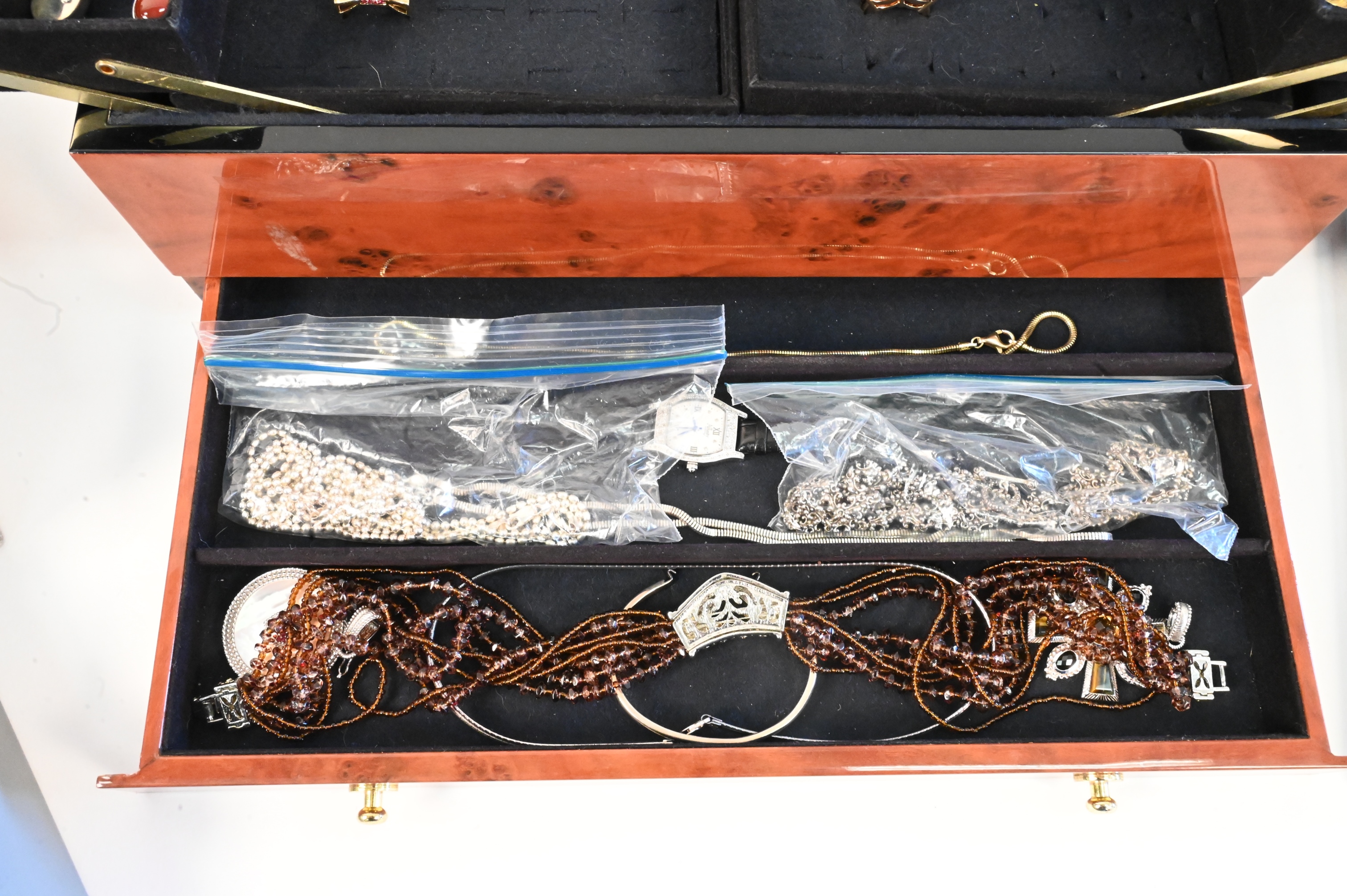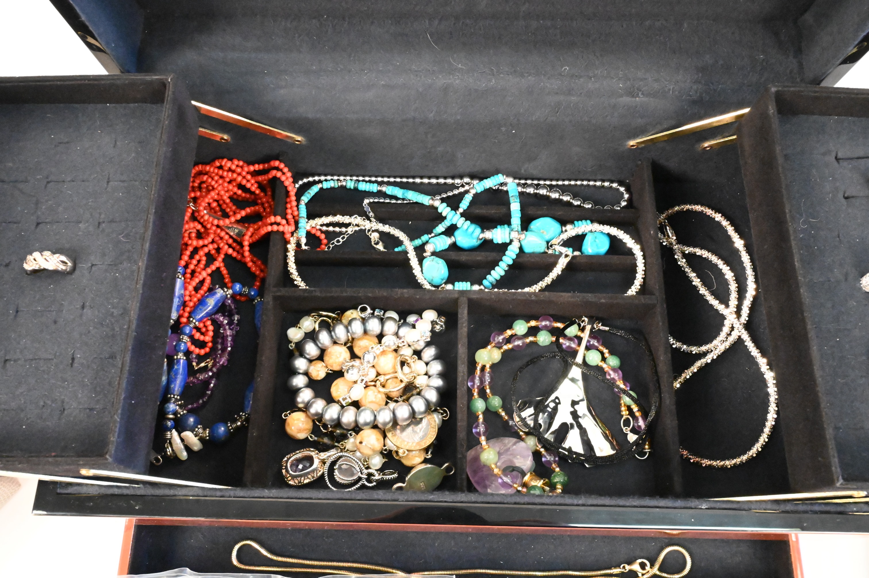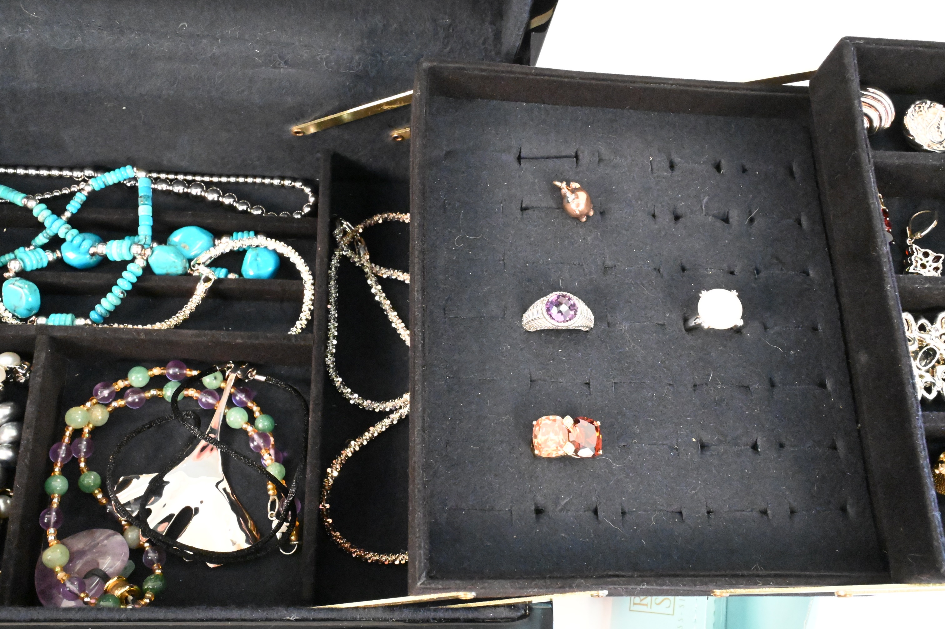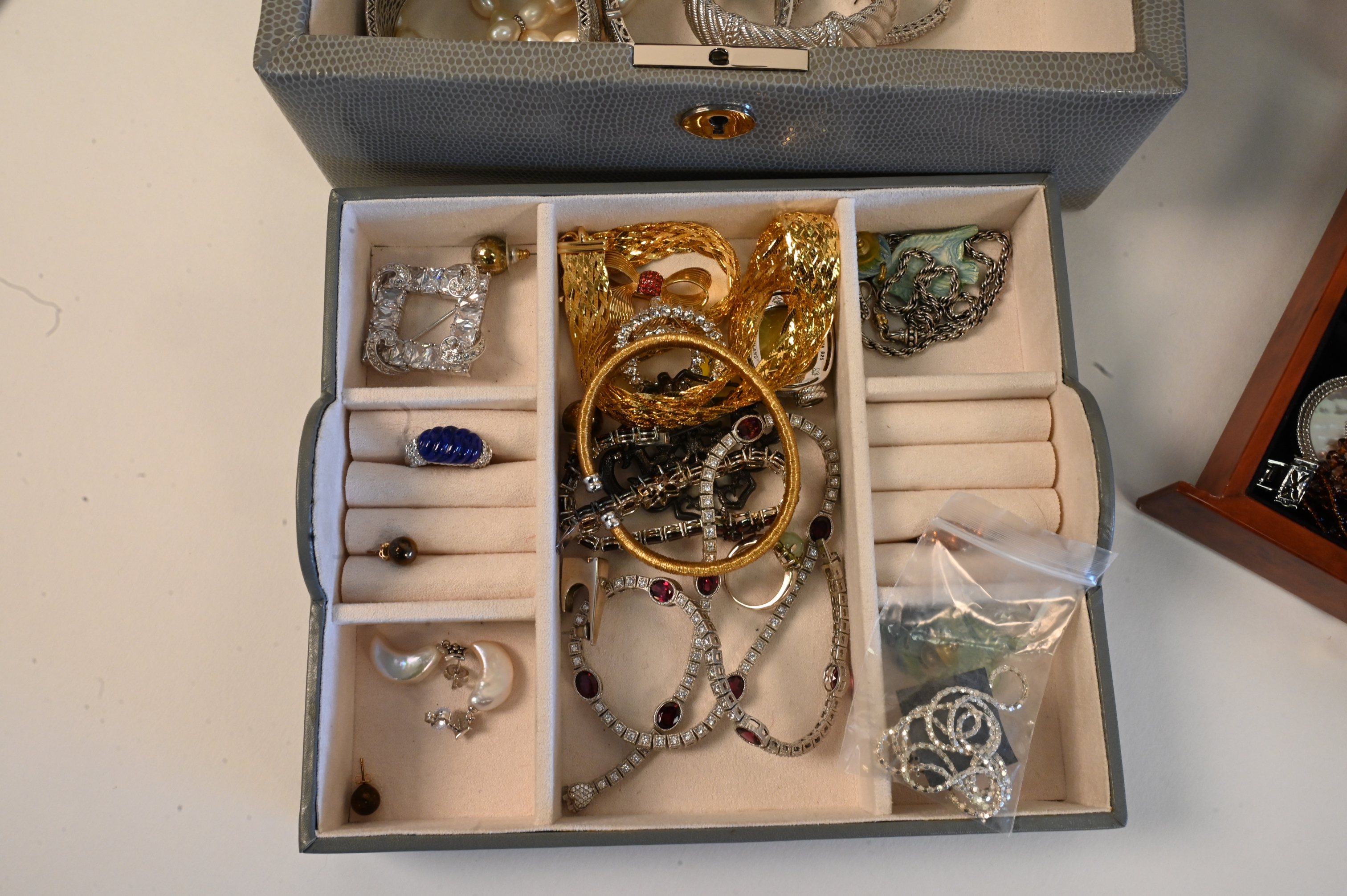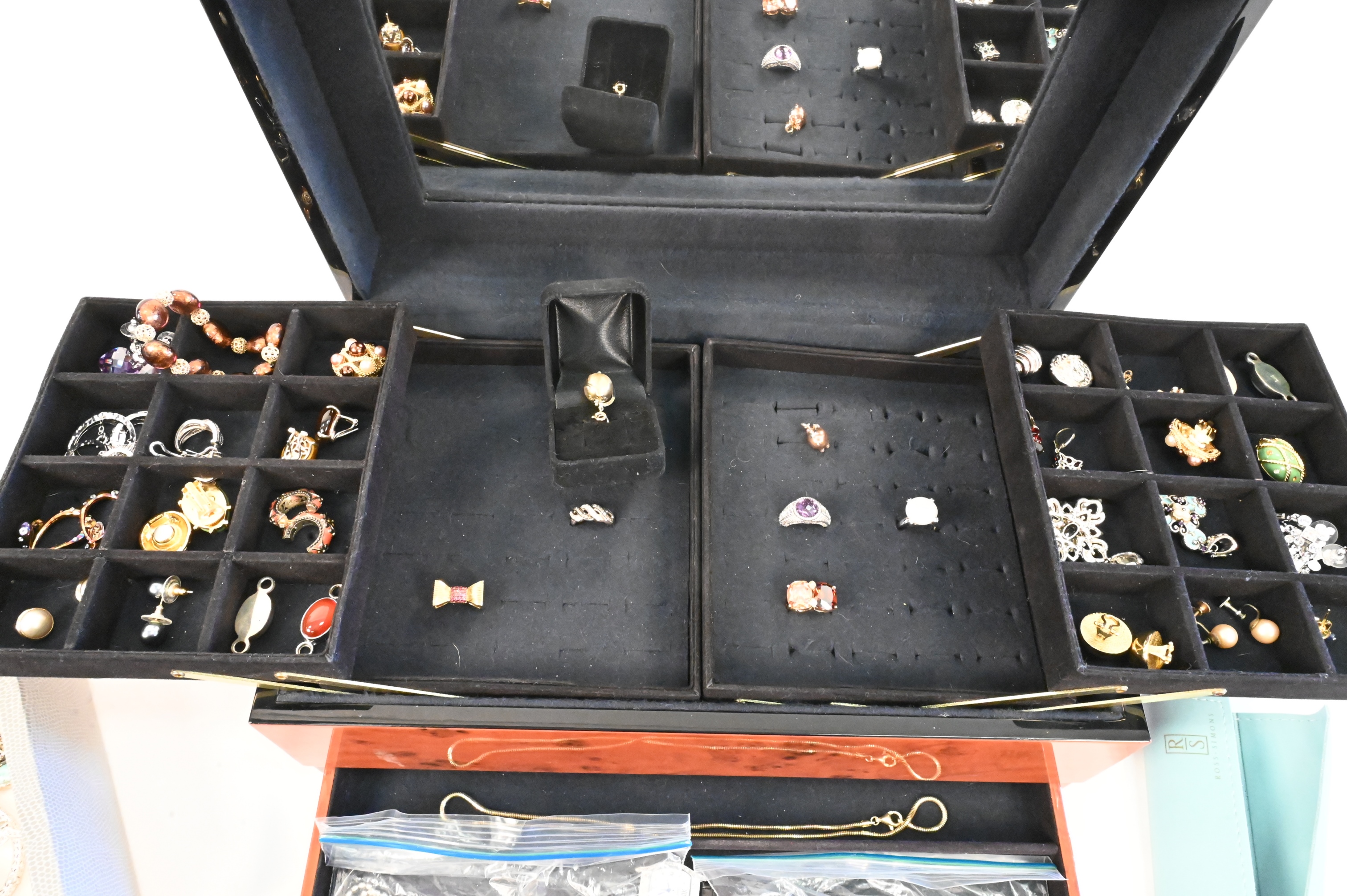 Two Jewelry Boxes of Mostly Silver Jewelry, to include earrings, bracelets, along brooches.