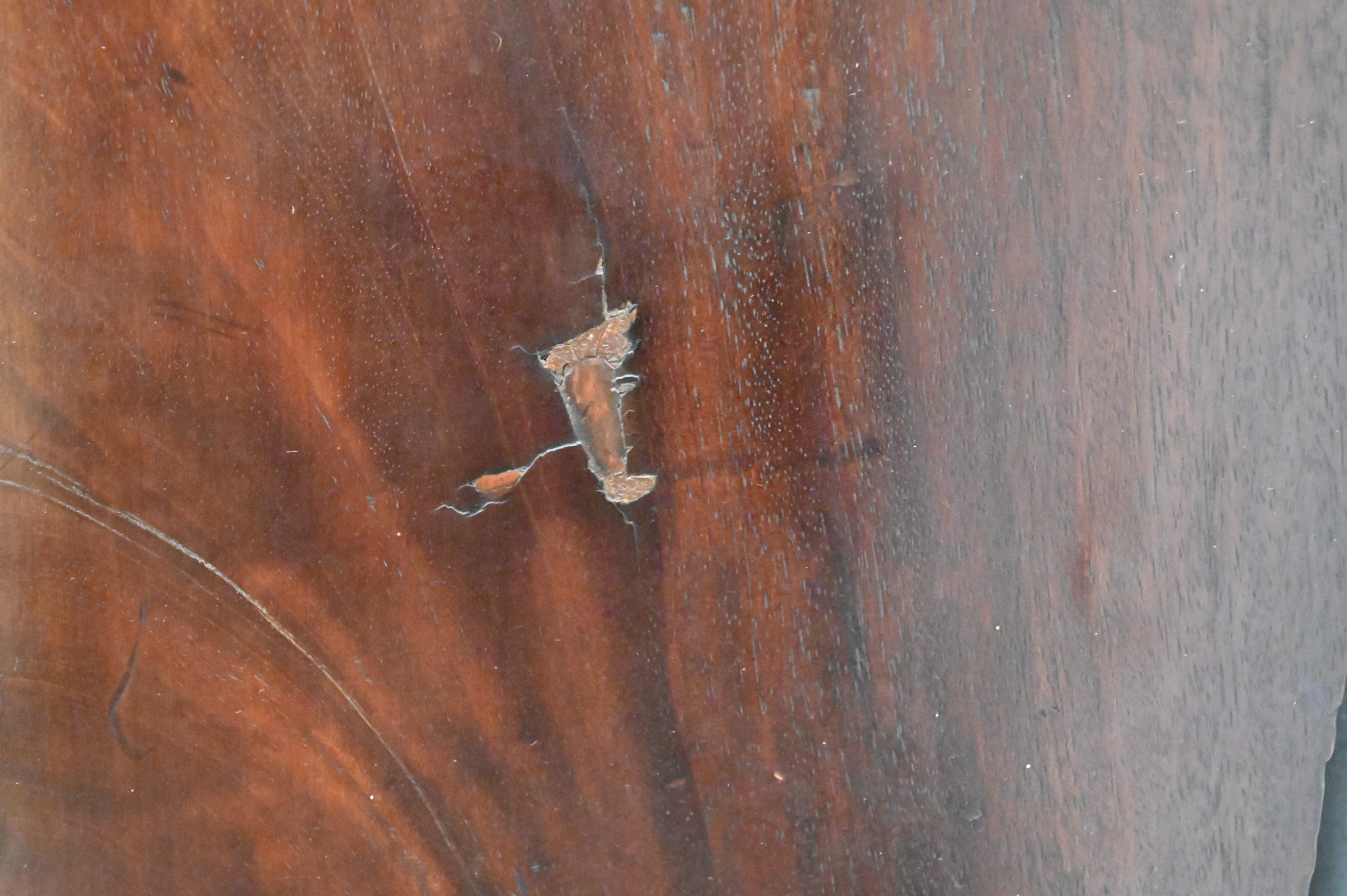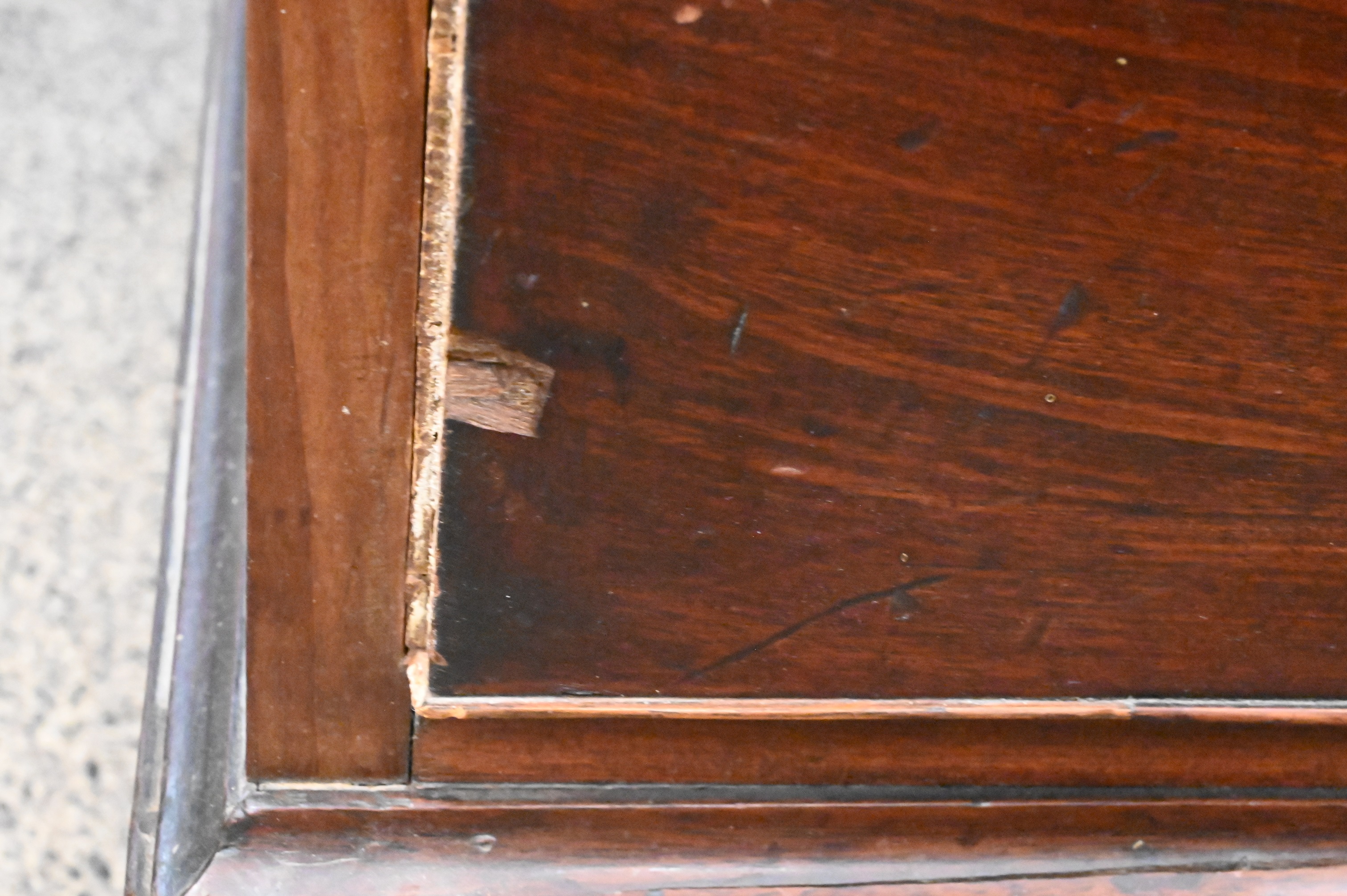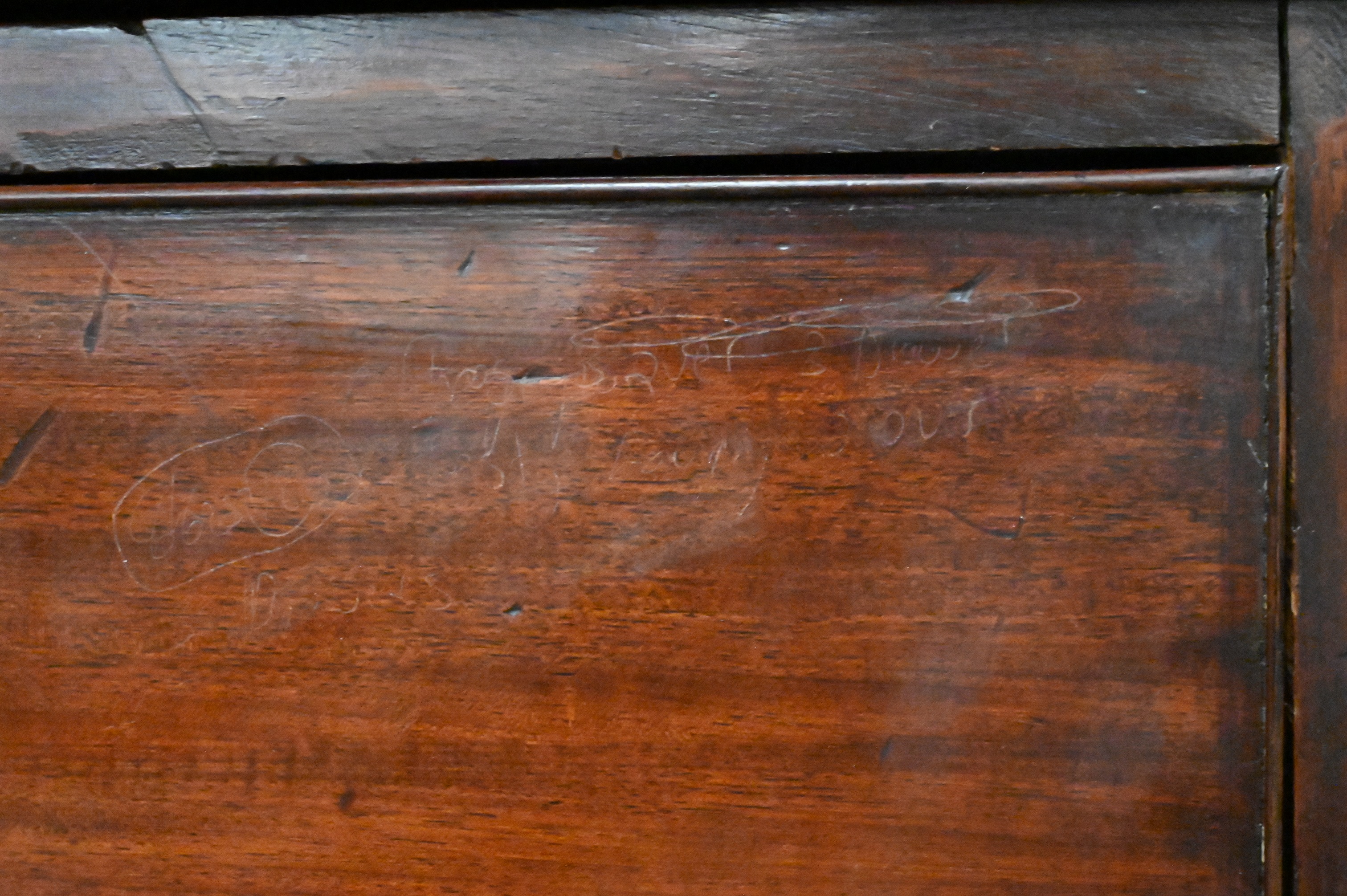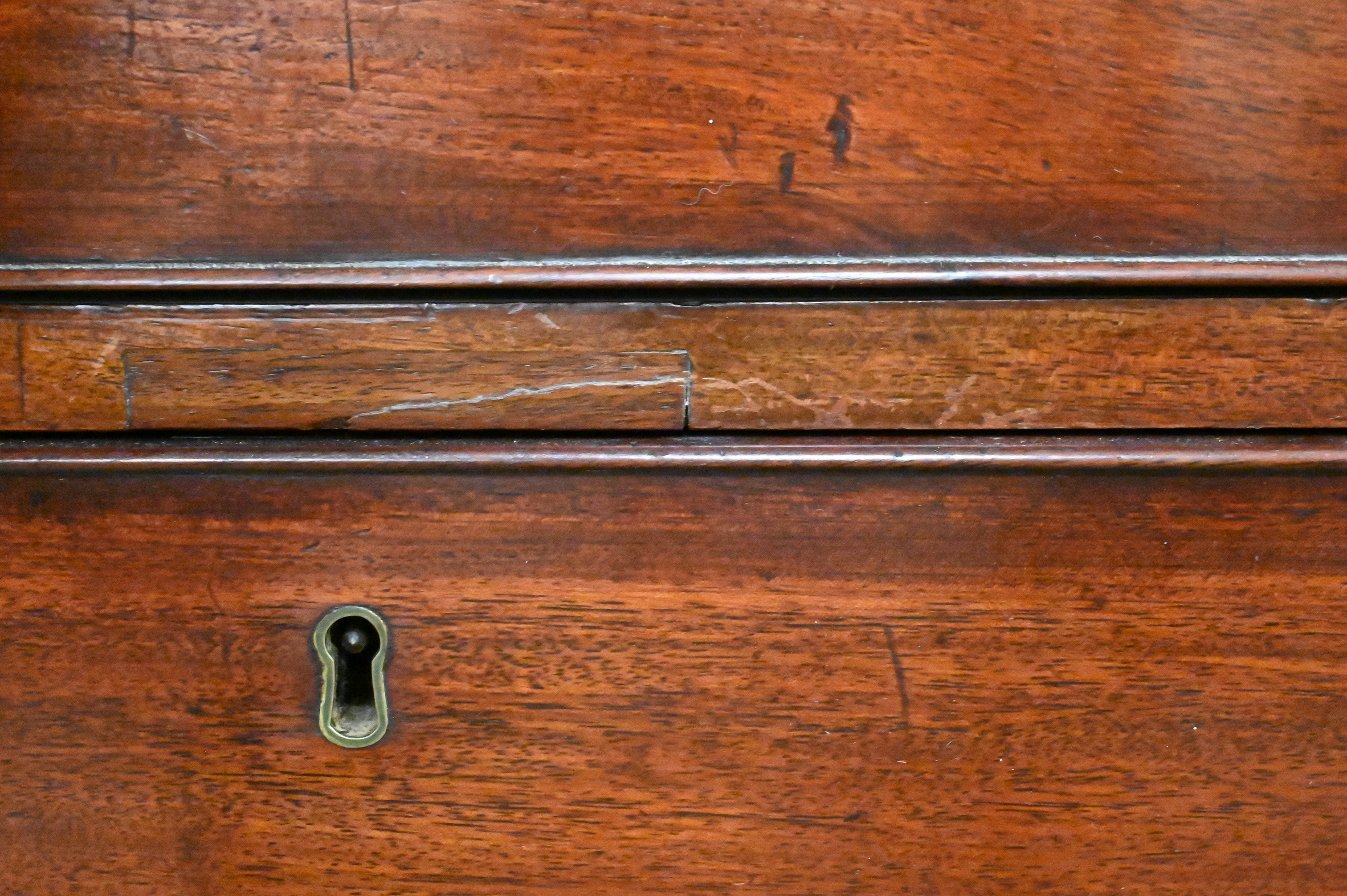 Condition: Presents well, breaks along right side near drop front desk, chipping around drawers.