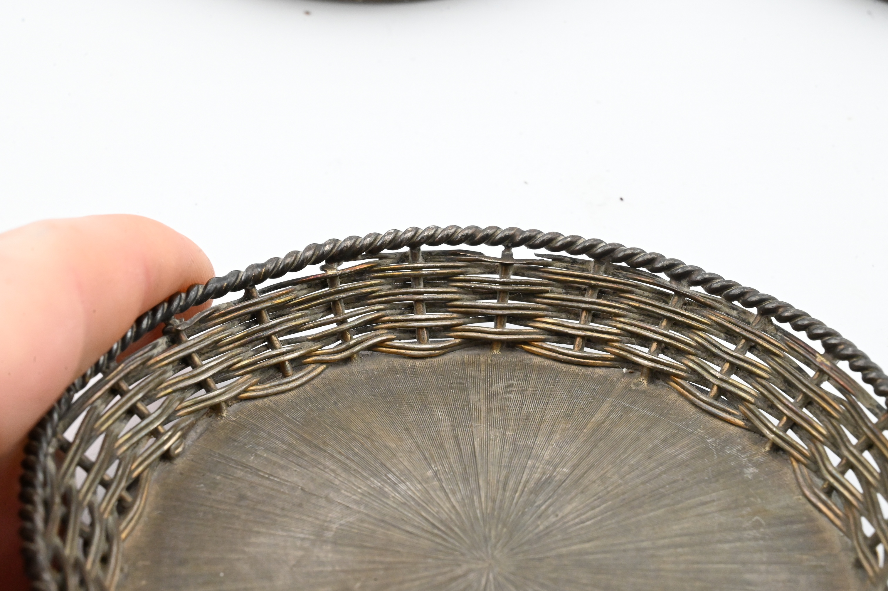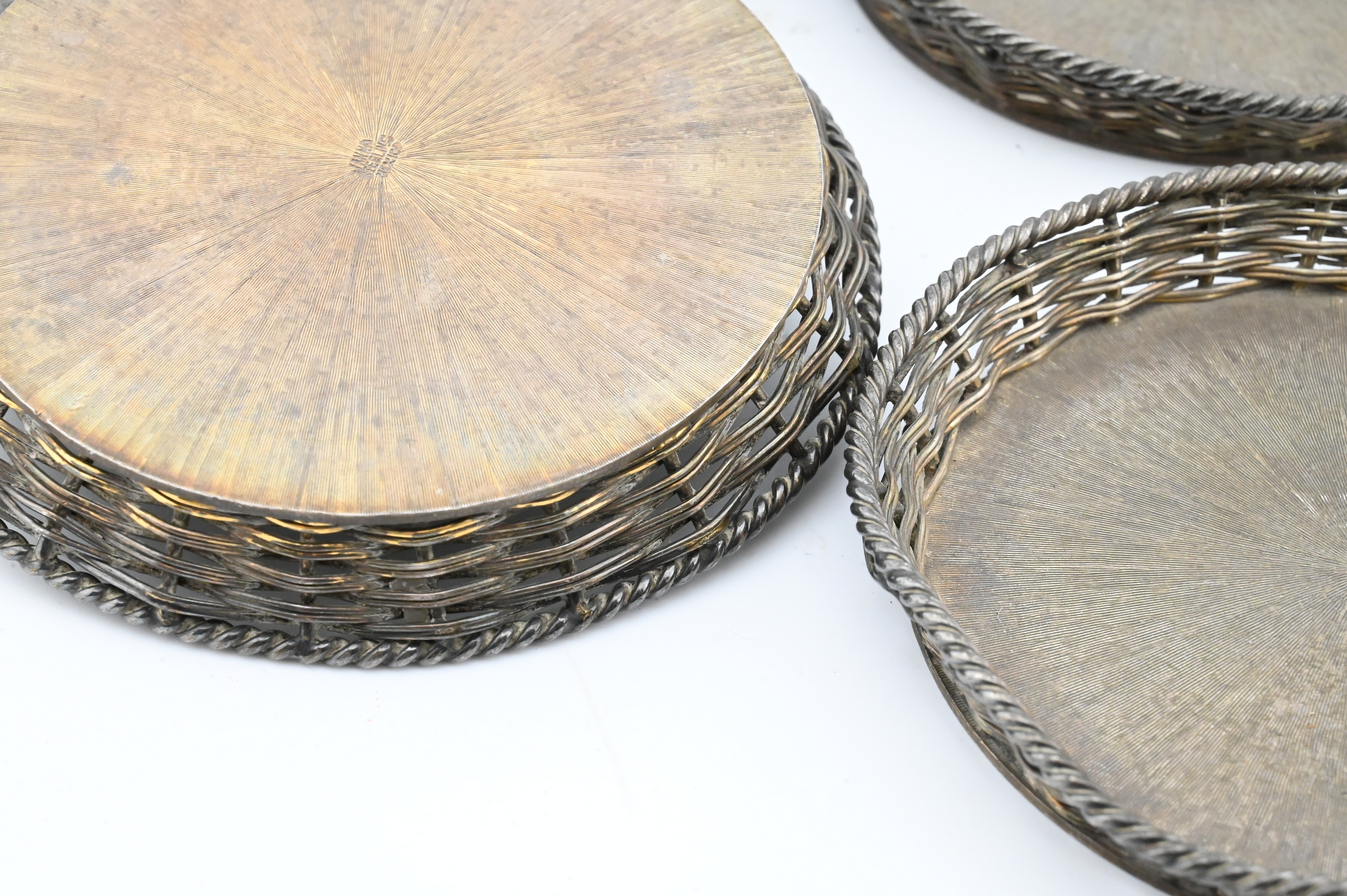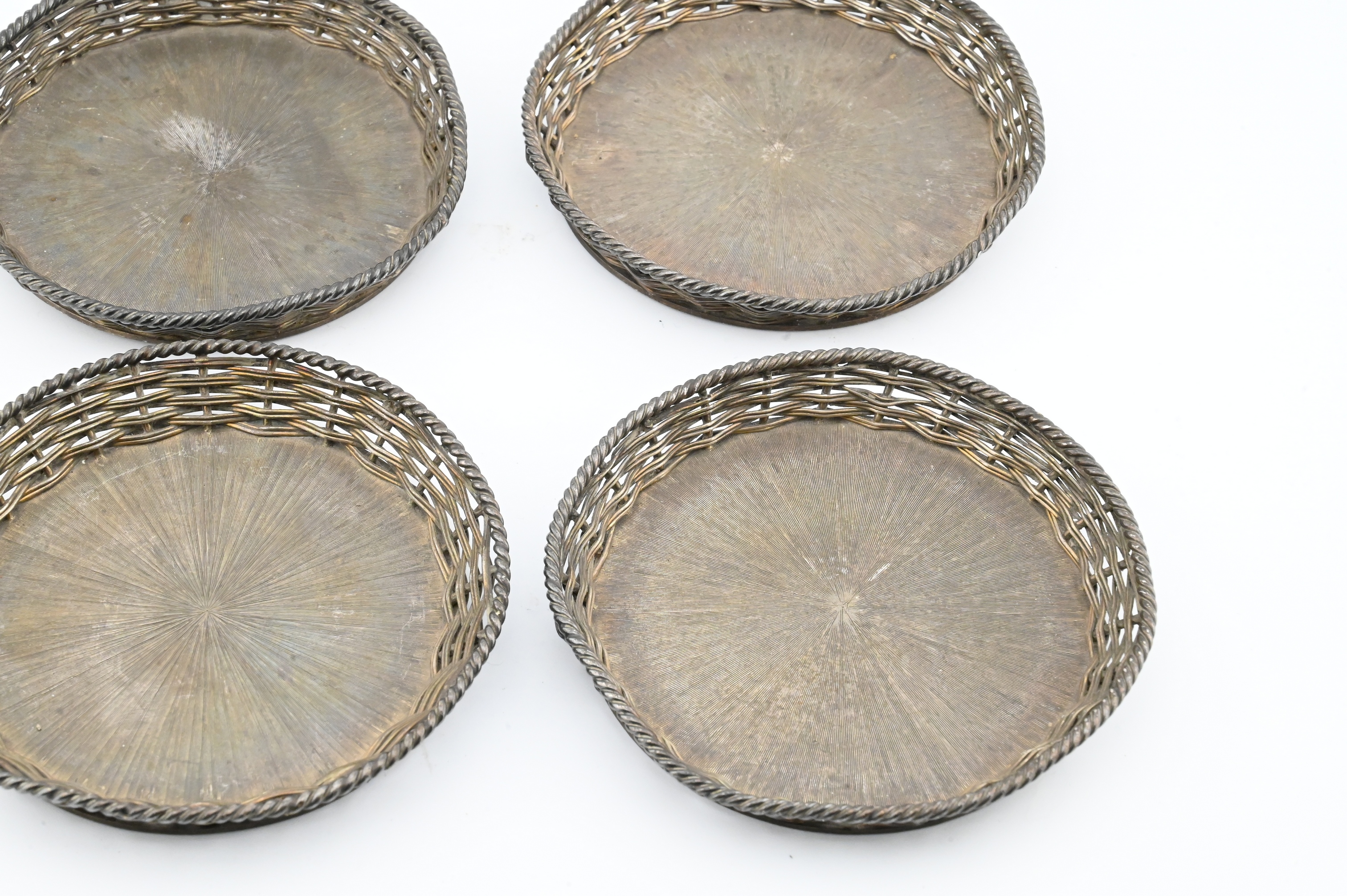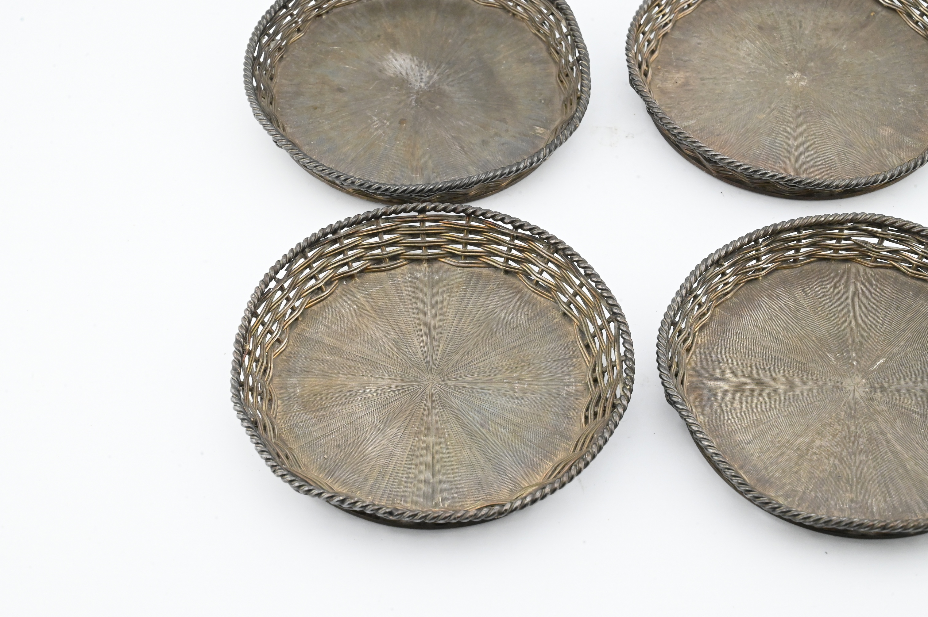 Lot 660: Set of Four Mexican Sterling Silver Woven Coasters, Janna Thomas de Velarde
