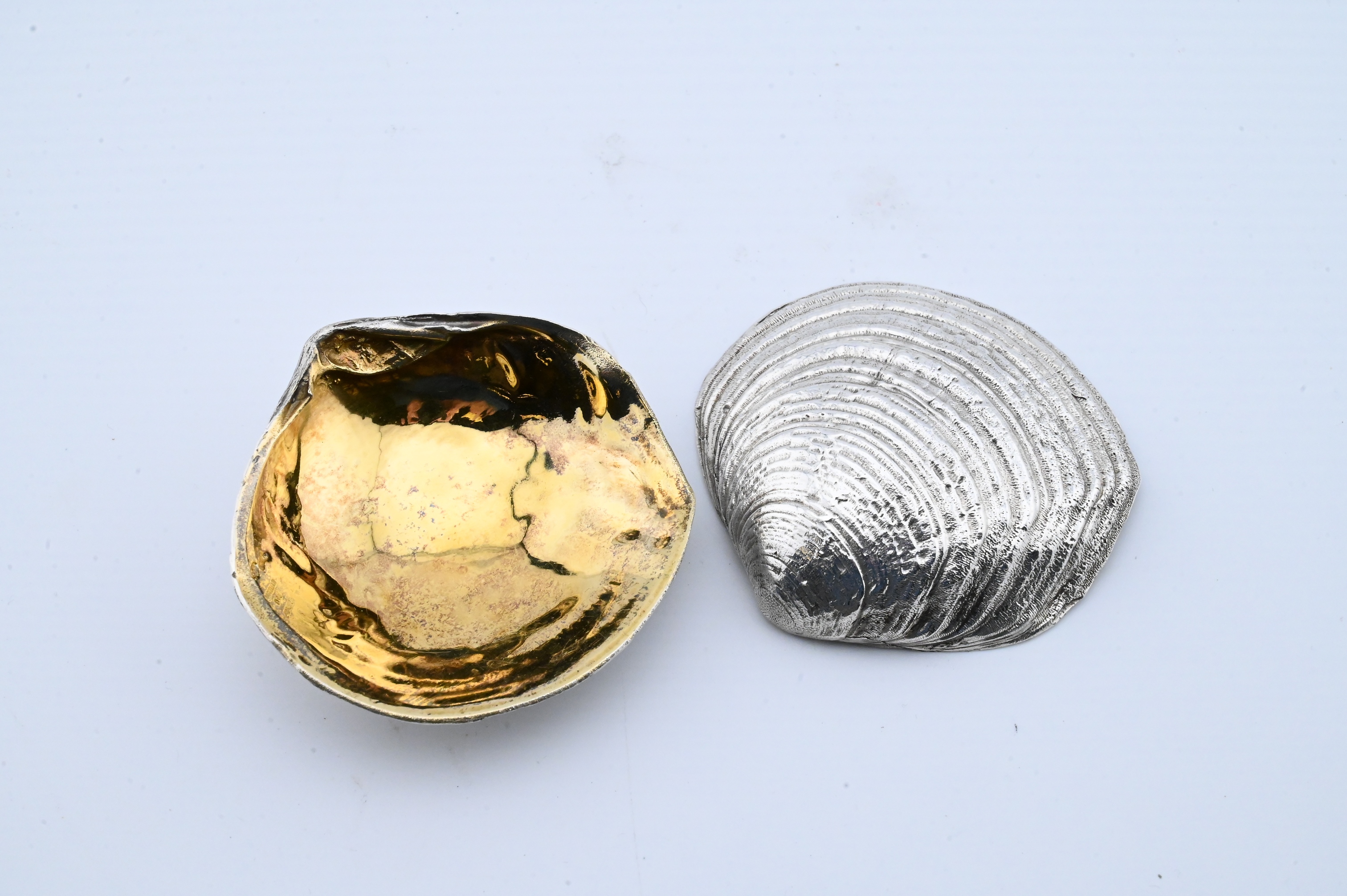 each naturalistic textured clam-form dish, gilt interior, marked Buccellati Italy Sterling