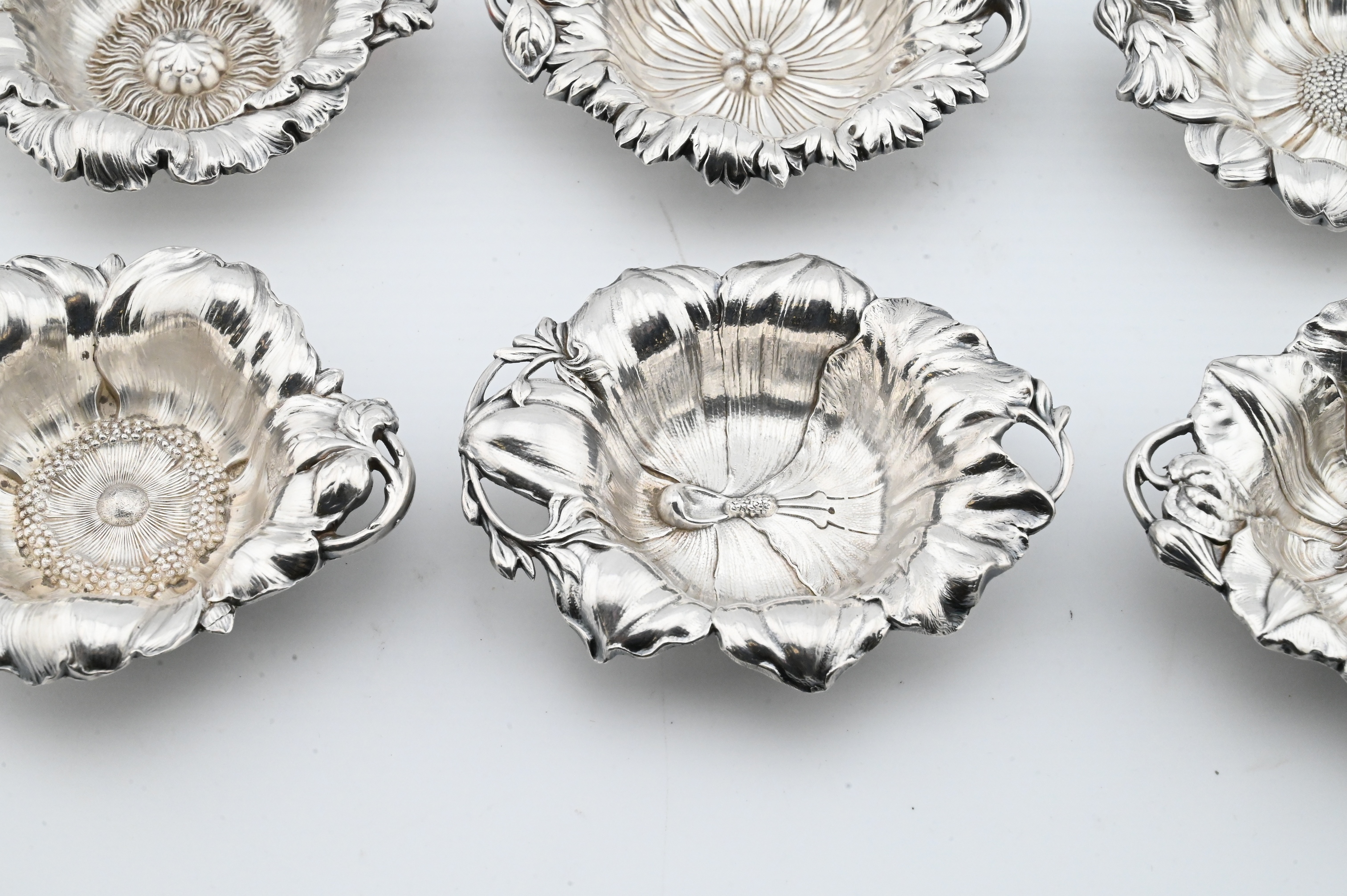 Set of Six Reed and Barton Sterling Silver Floral Nut Dishes