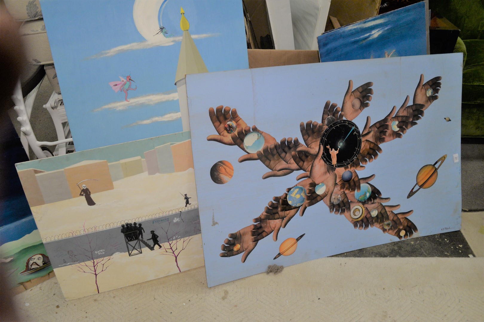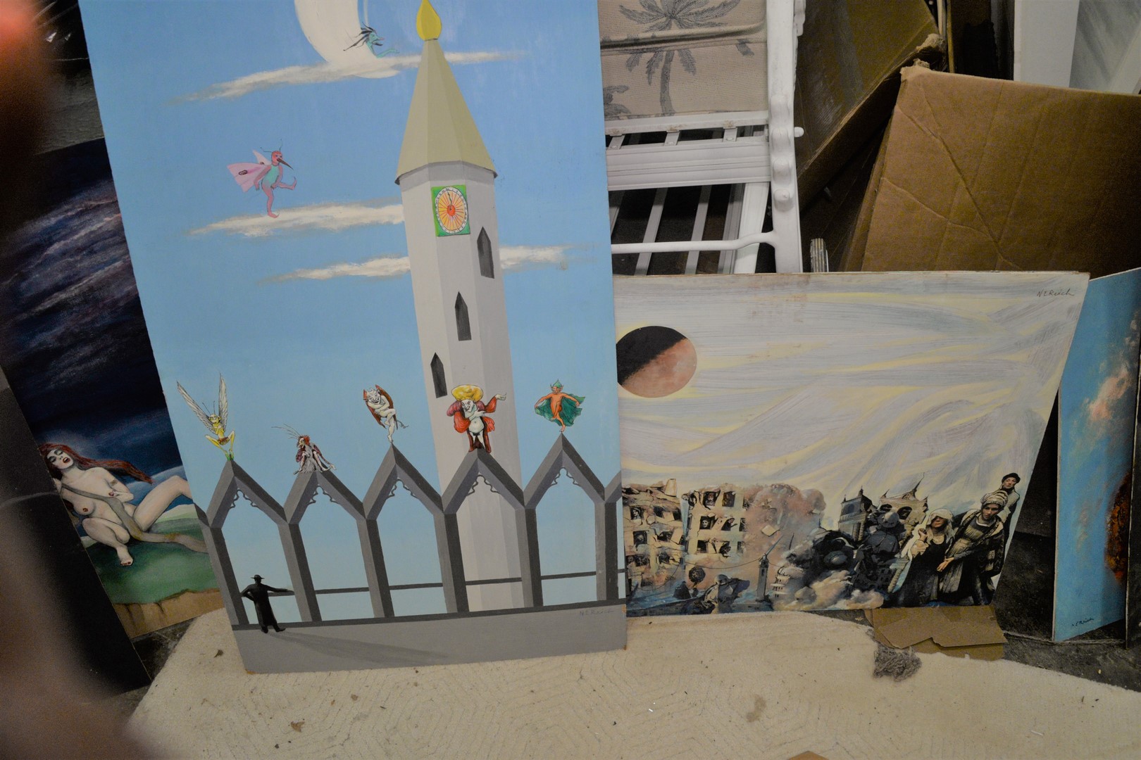 Lot 663: Group of Seven Nathan Reichs each mixed media on masonite or board each signed, all unframed 32 x 48