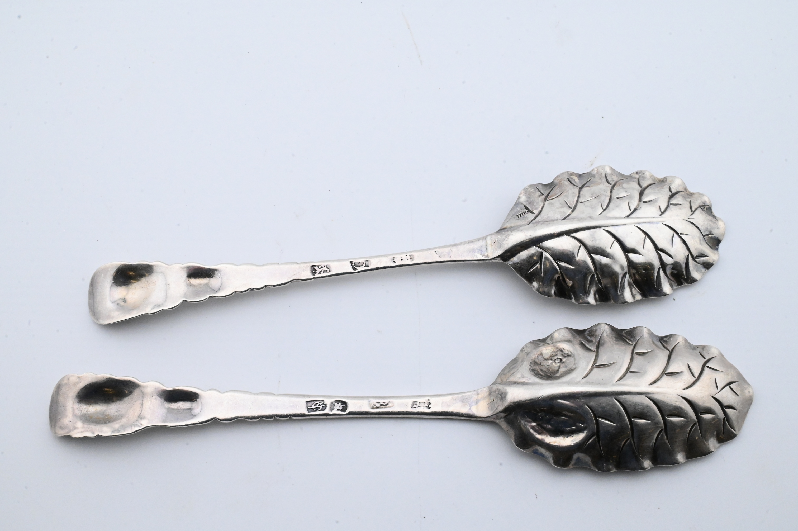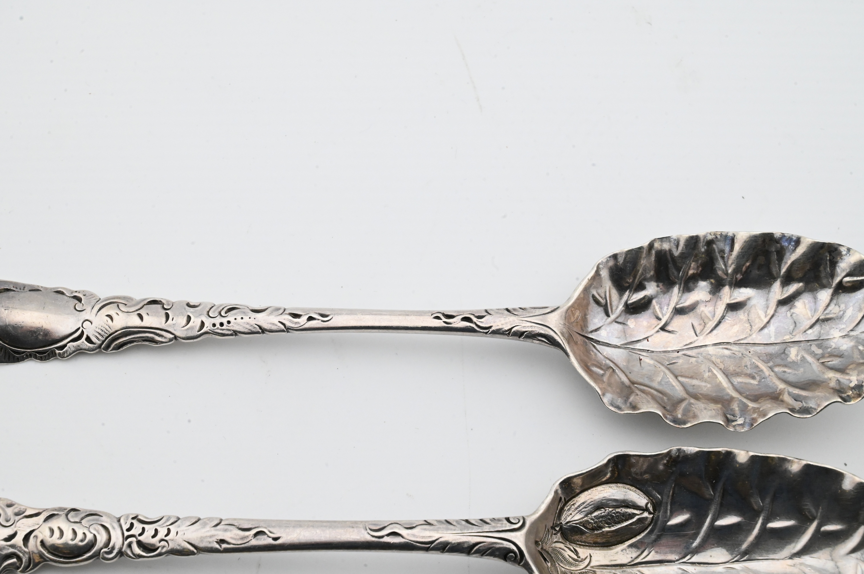 Near Pair of English Sterling Silver Leaf-Form Berry Spoons