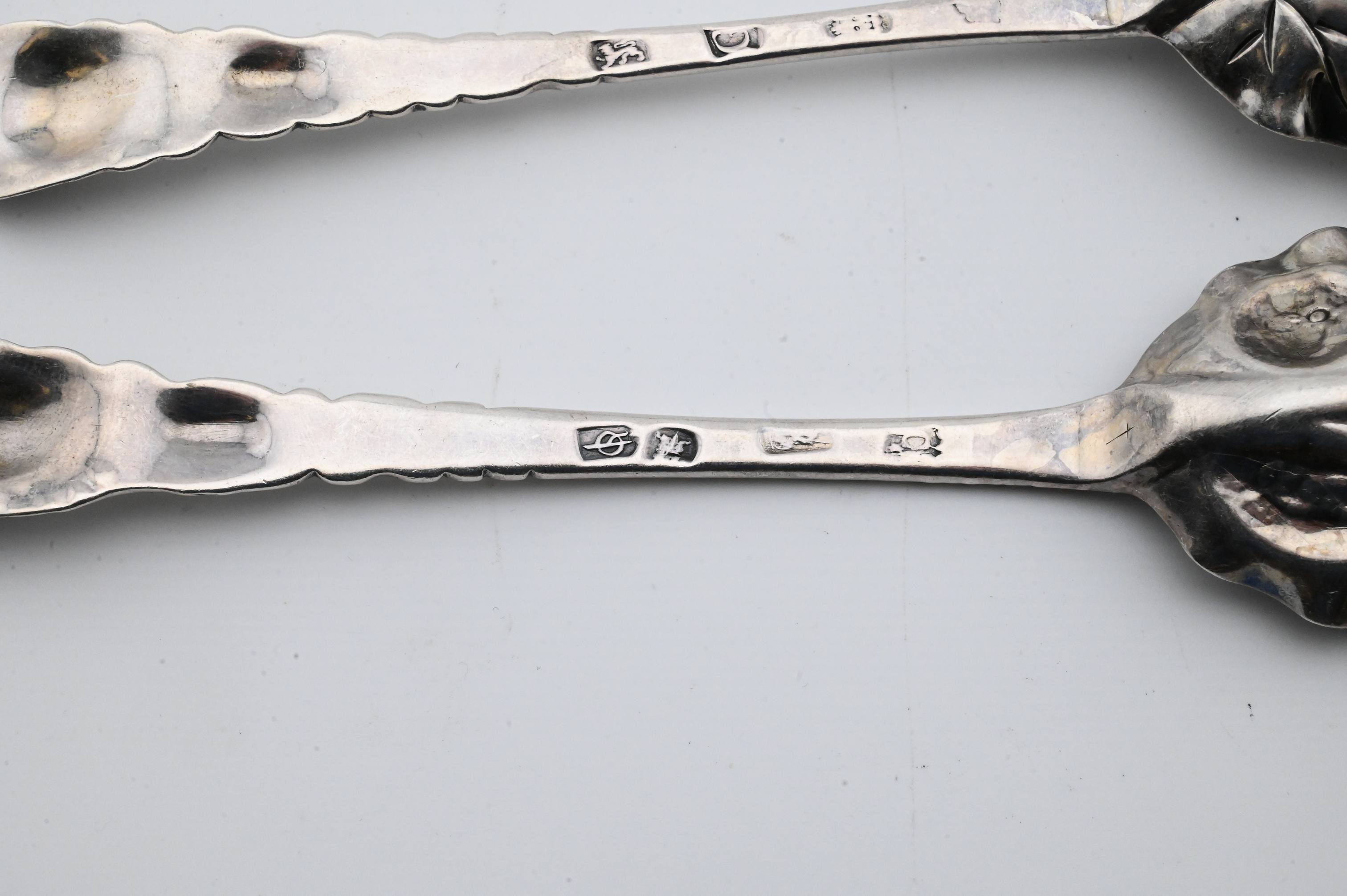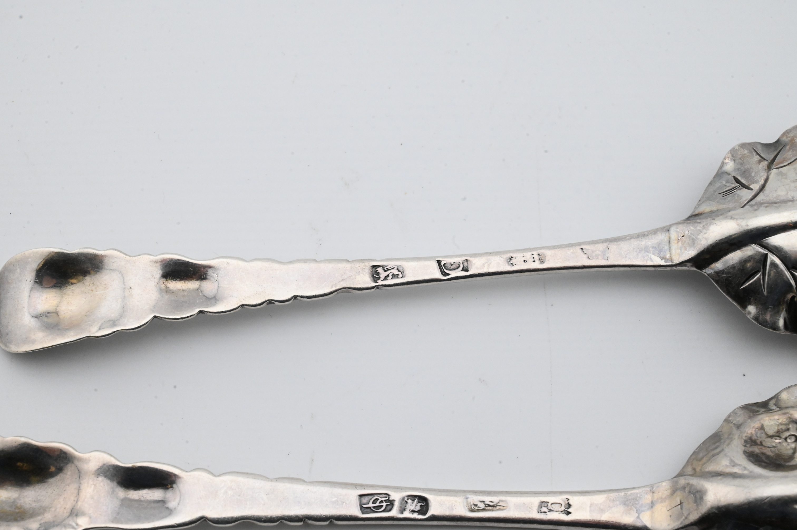 Lot 663: Pair of English Sterling Silver Leaf-Form Berry Spoons