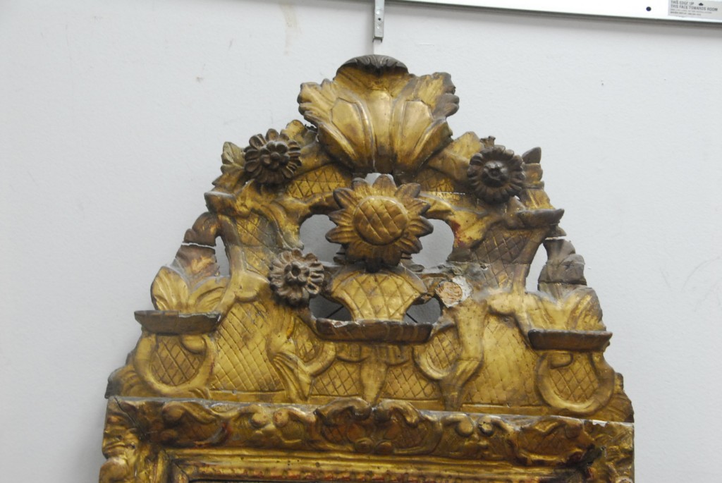 Continental gilt mirror, early 19th century one flower missing. – ht. 34in. wd. 18in.