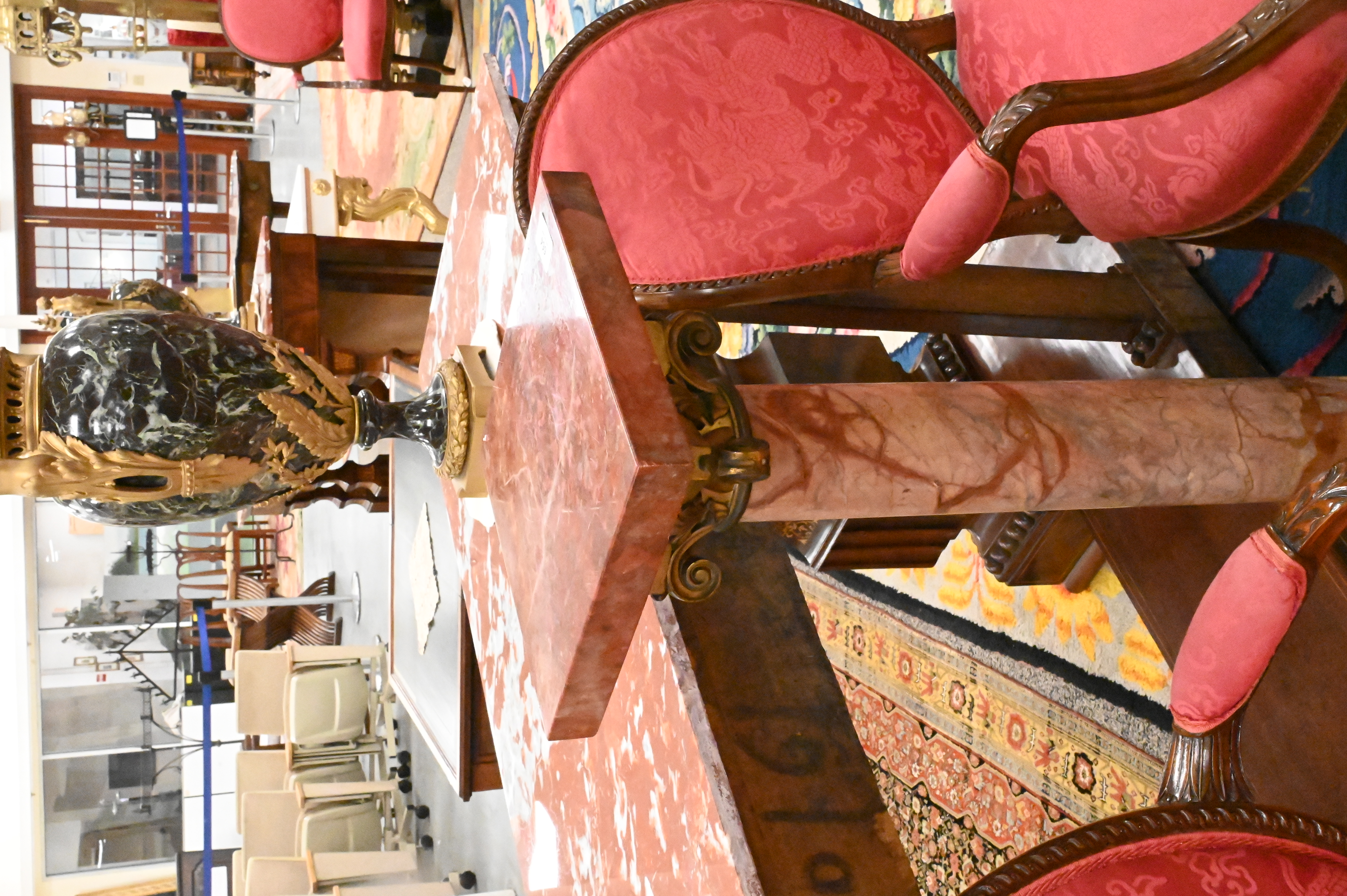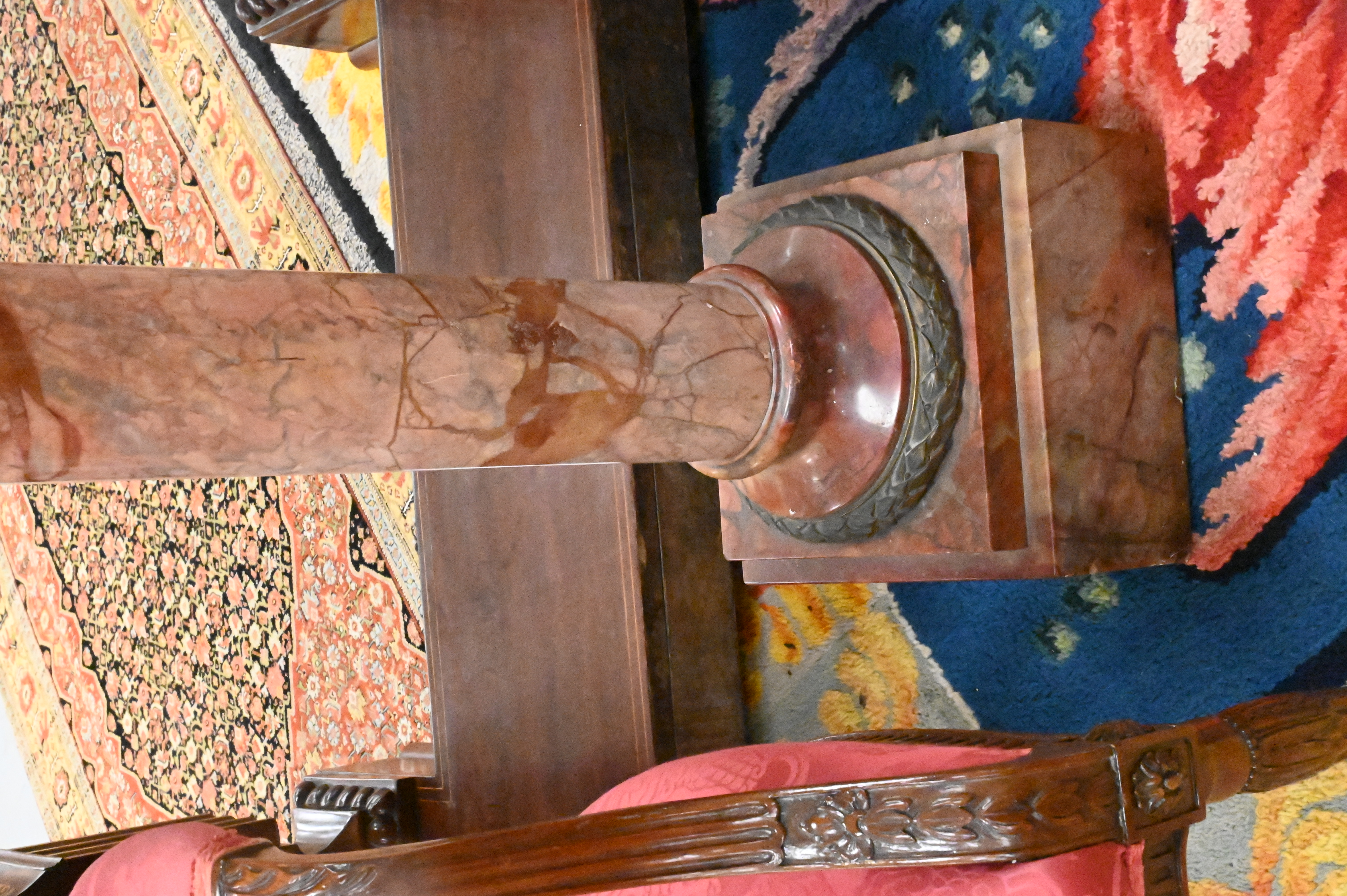 square top over gilt bronze capitol on round shaft with gilt bronze wreath surround, all set on square base