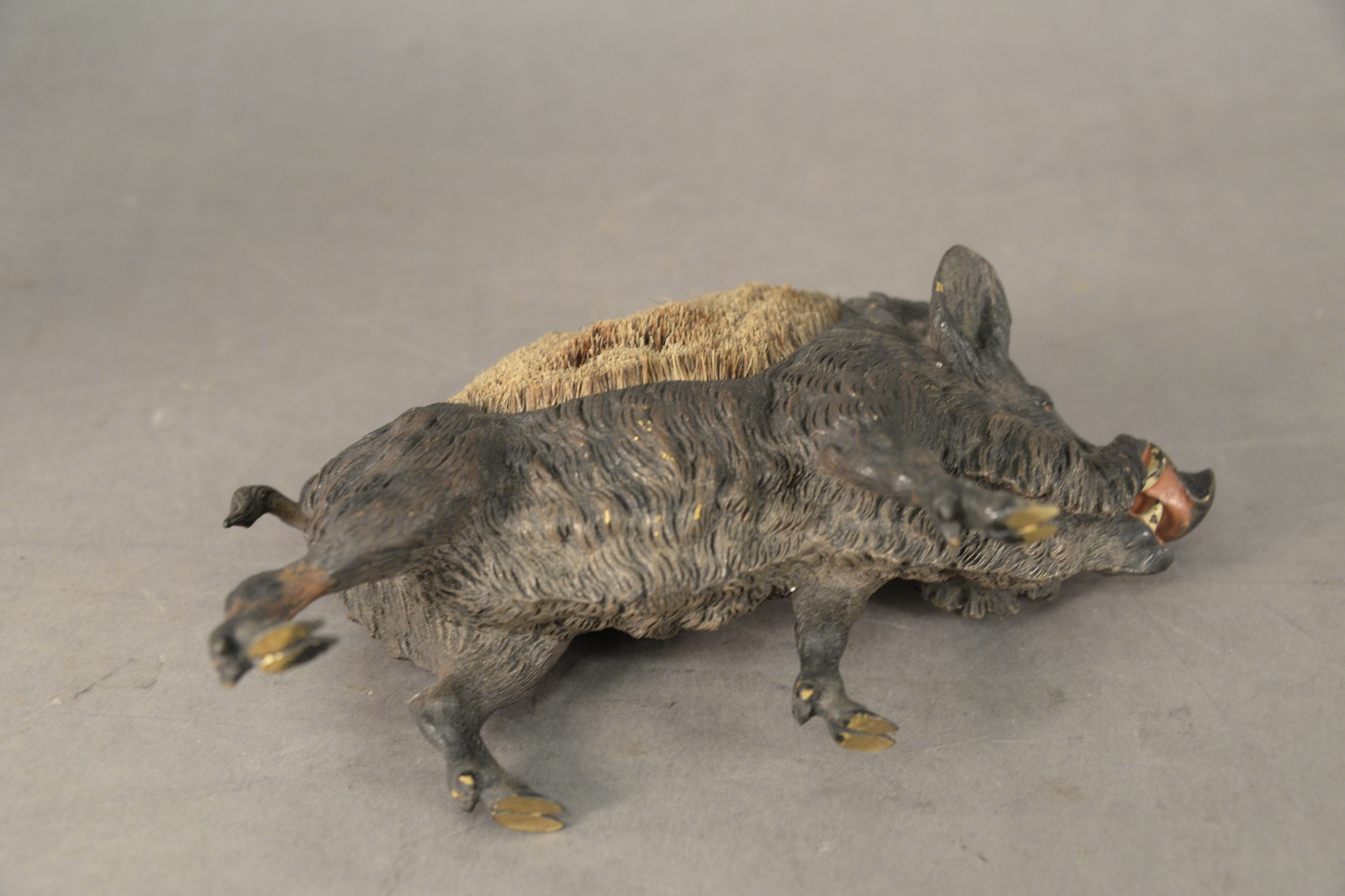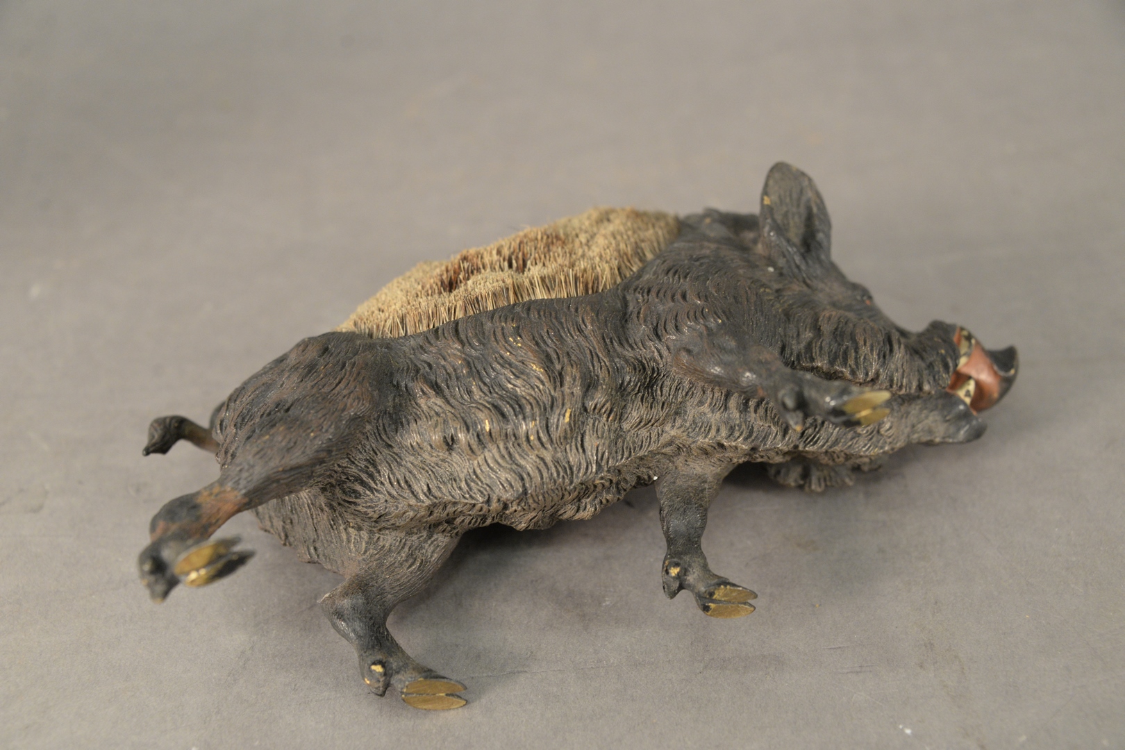Lot 665: Austrian 19th Century Cold Painted Bronze Pen Wipe, in the form of a warthog, height 4 1/2 inches, width 8 1/2 inches.