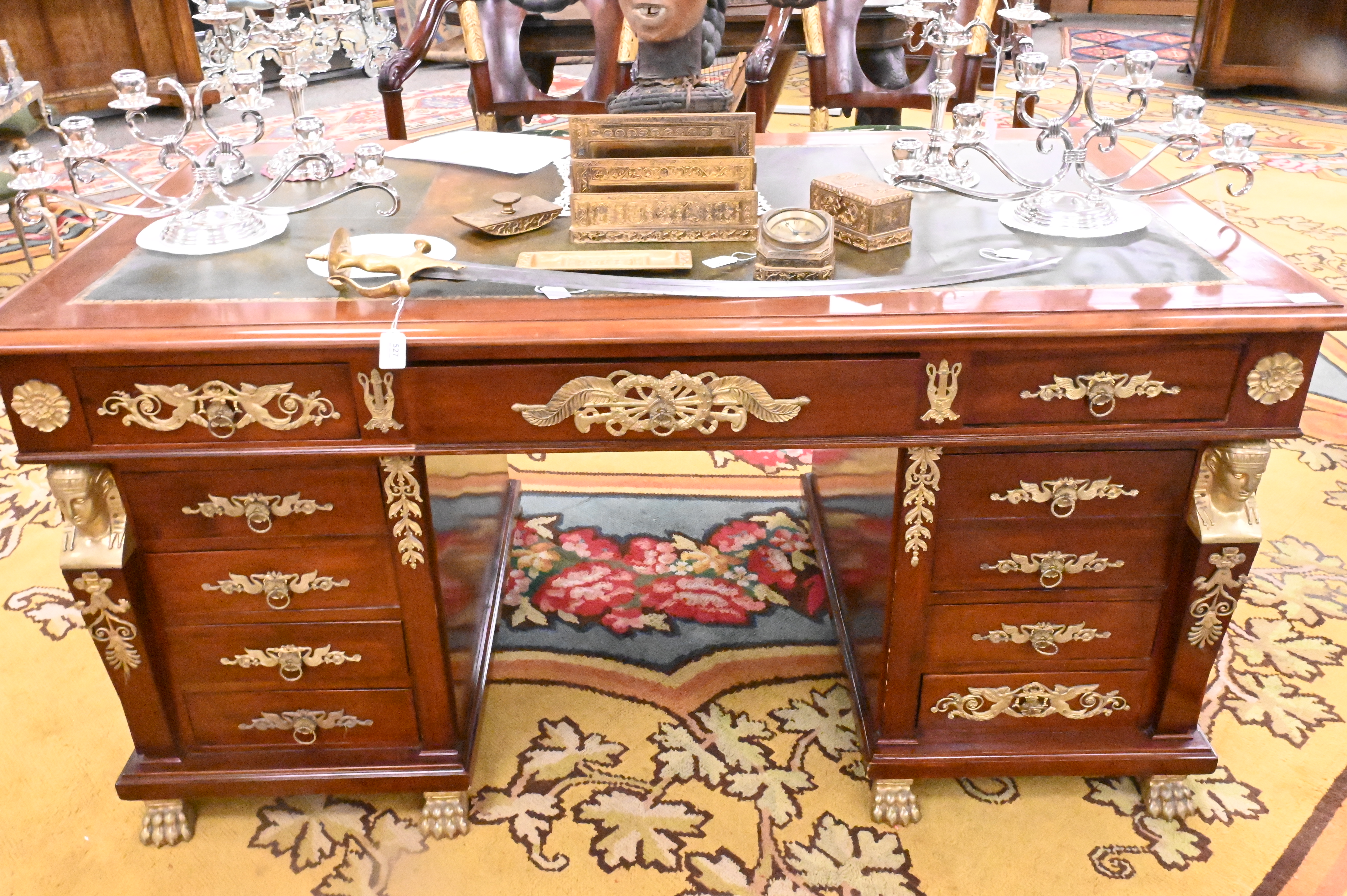 Lot 668: Empire Style Ormolu-Mounted Mahogany Double-Pedestal Desk