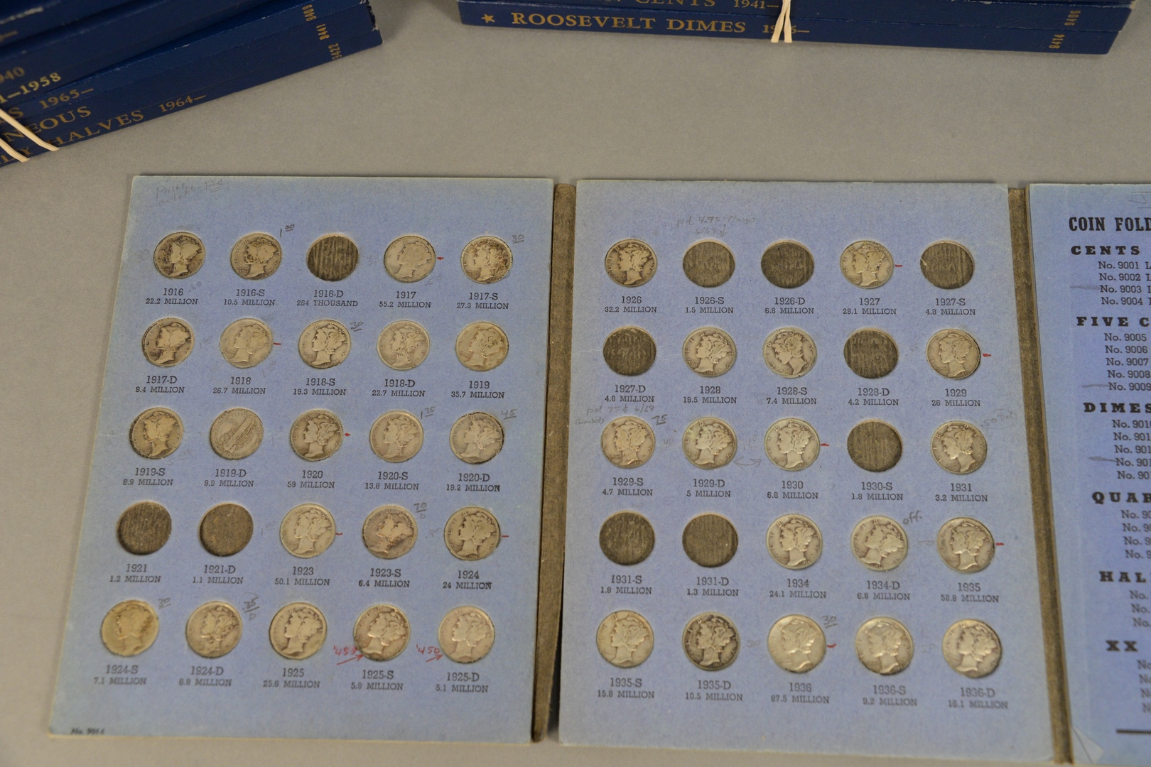 24 Albums Coin Albums, ten assorted coin albums (many are empty) along with 5 assorted albums with some 90% and 9 assorted albums with some 90% Indian, Buffalo, Jefferson, Roosevelt and Washington quarters.