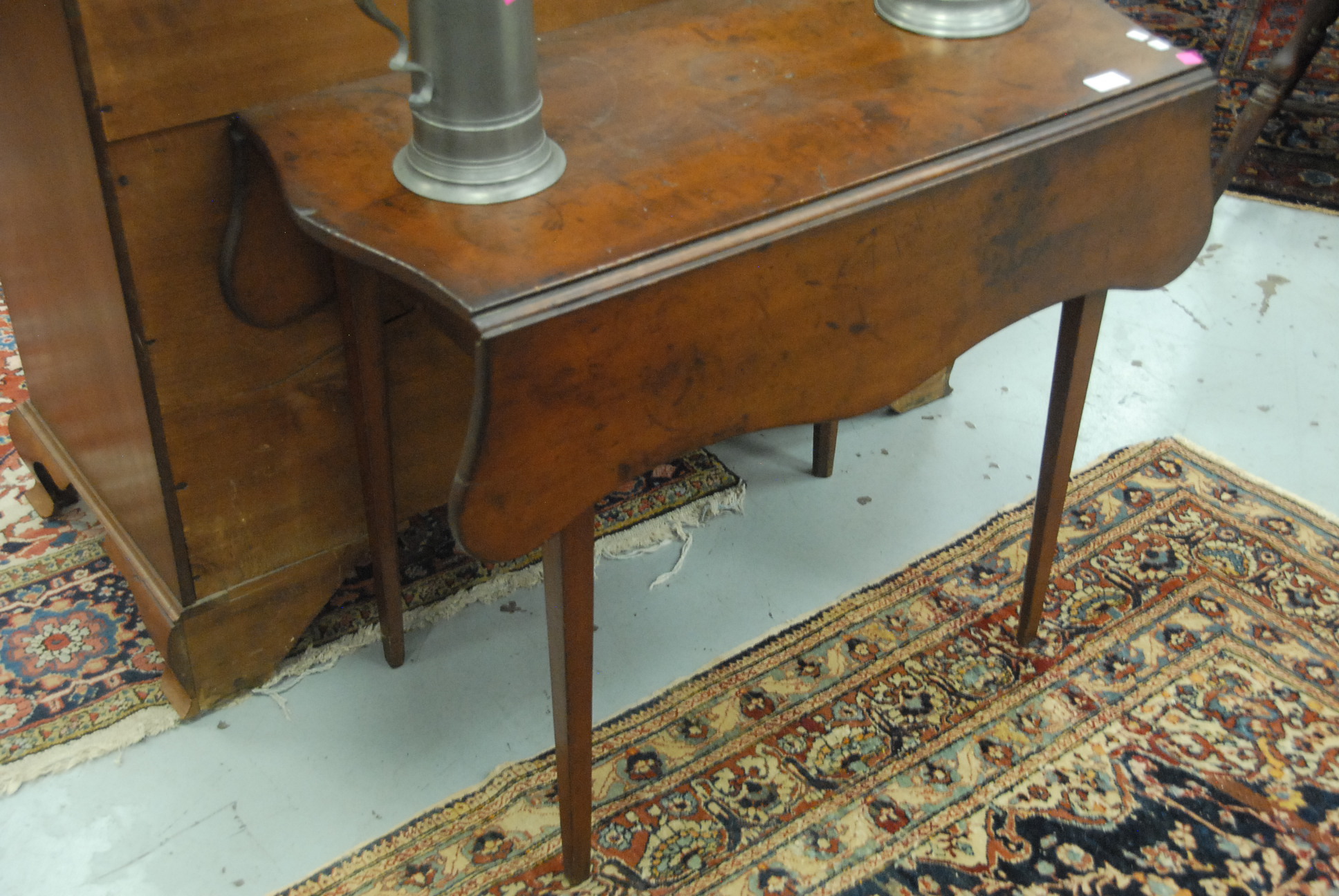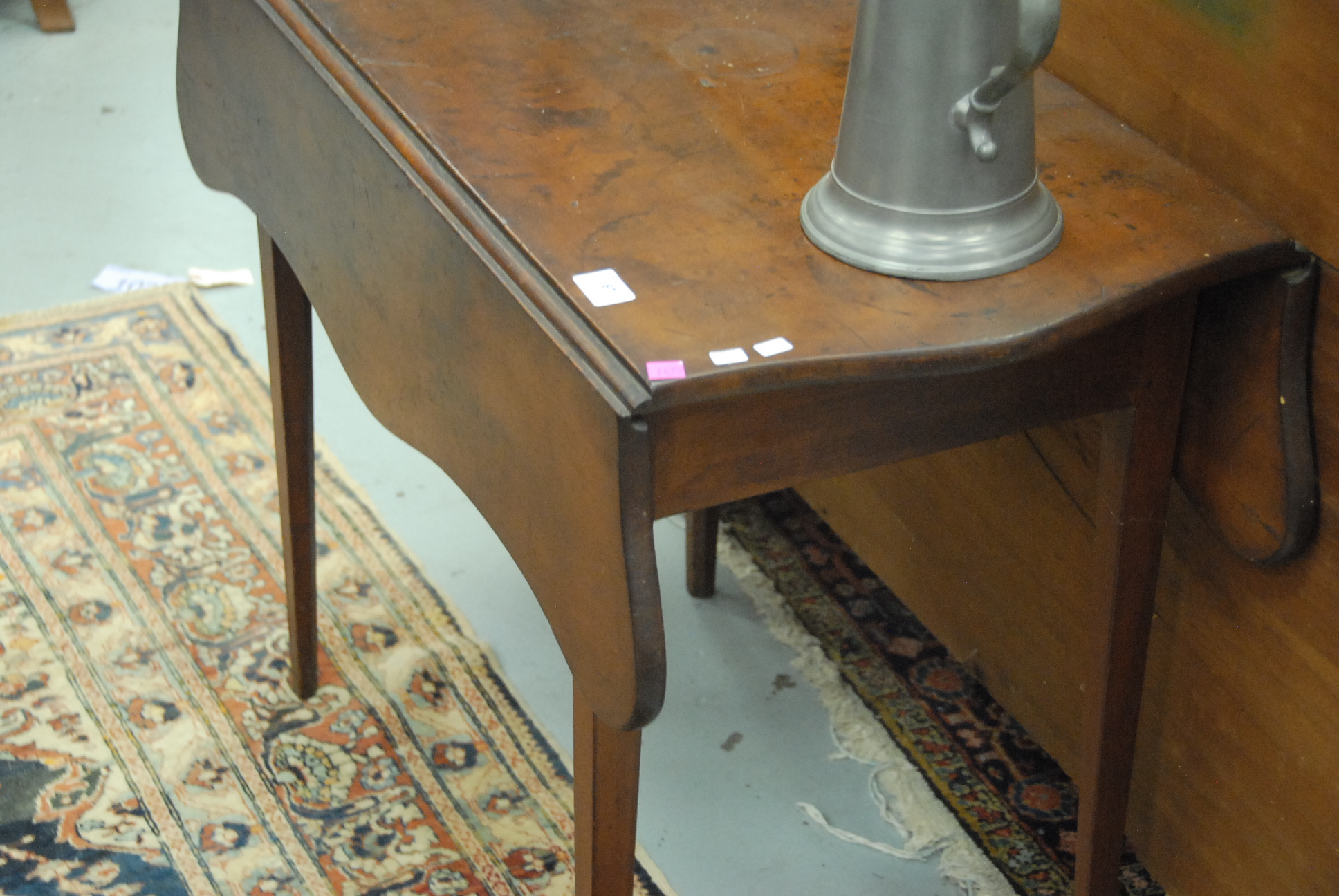 Federal cherry table with shaped drop leaves on square tapered legs, circa 1790-1810. ht. 28 in. opens to 35 in. Provenance: Property from the Estate of Elizabeth and Edward Wallace of The Tracy House in Meriden, Connecticut.